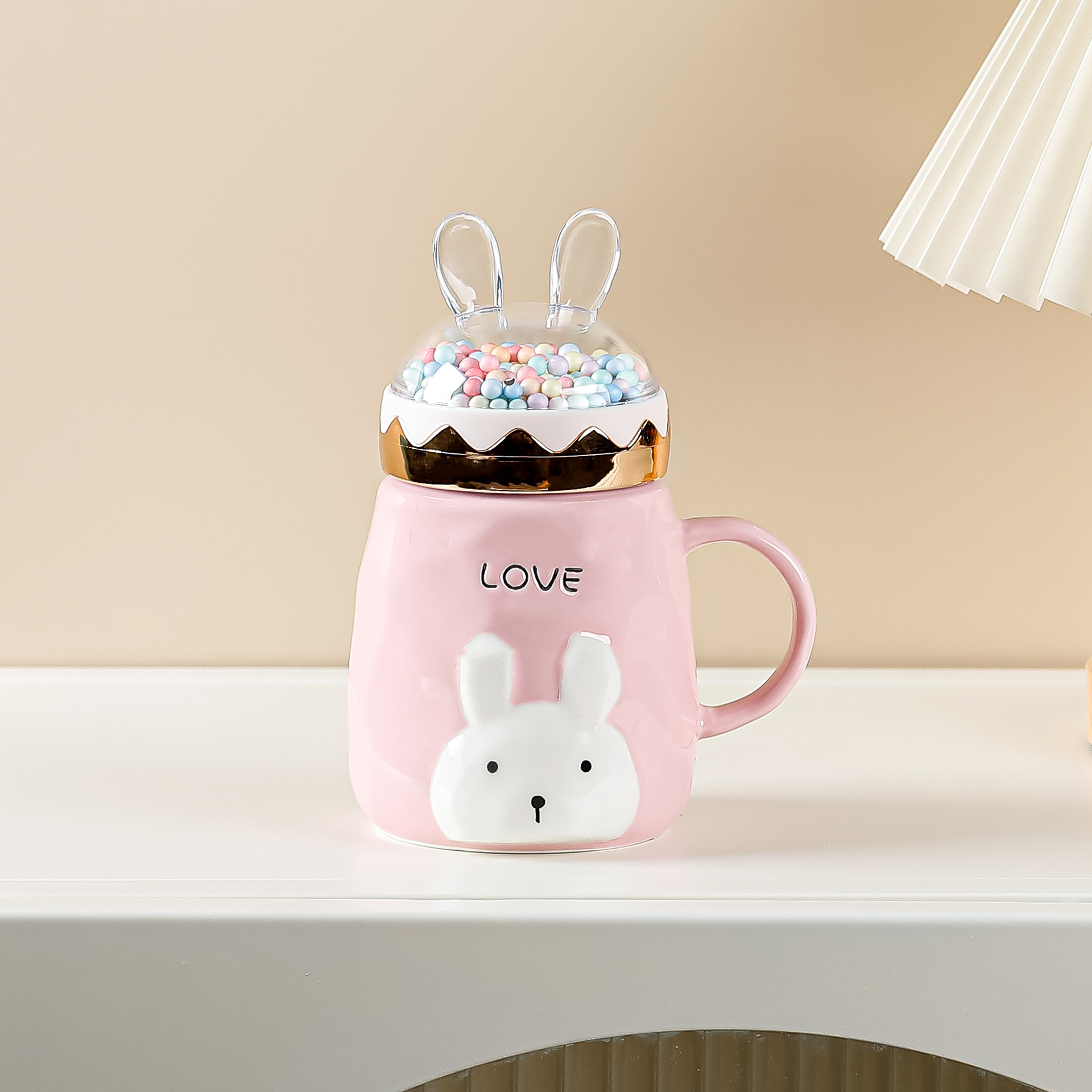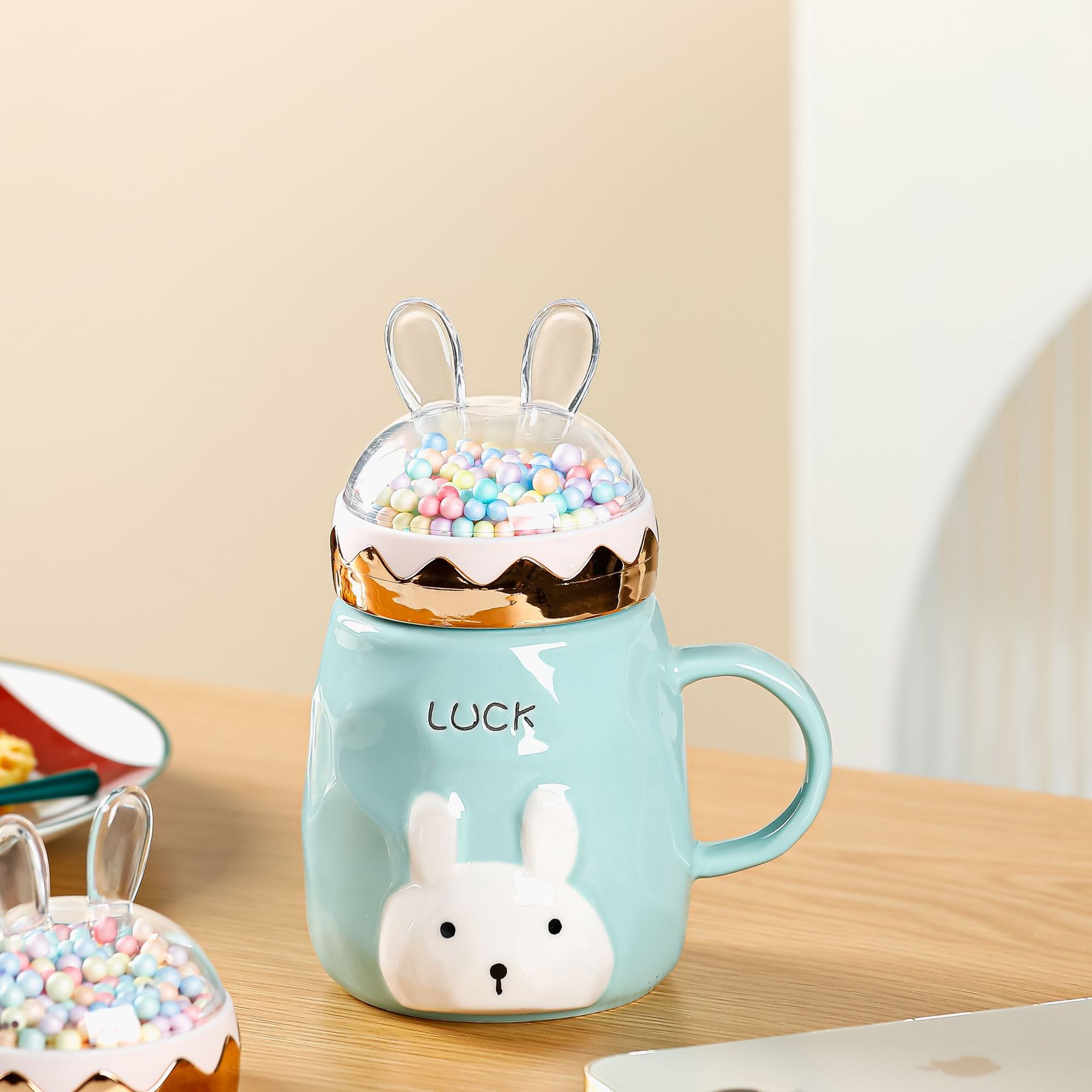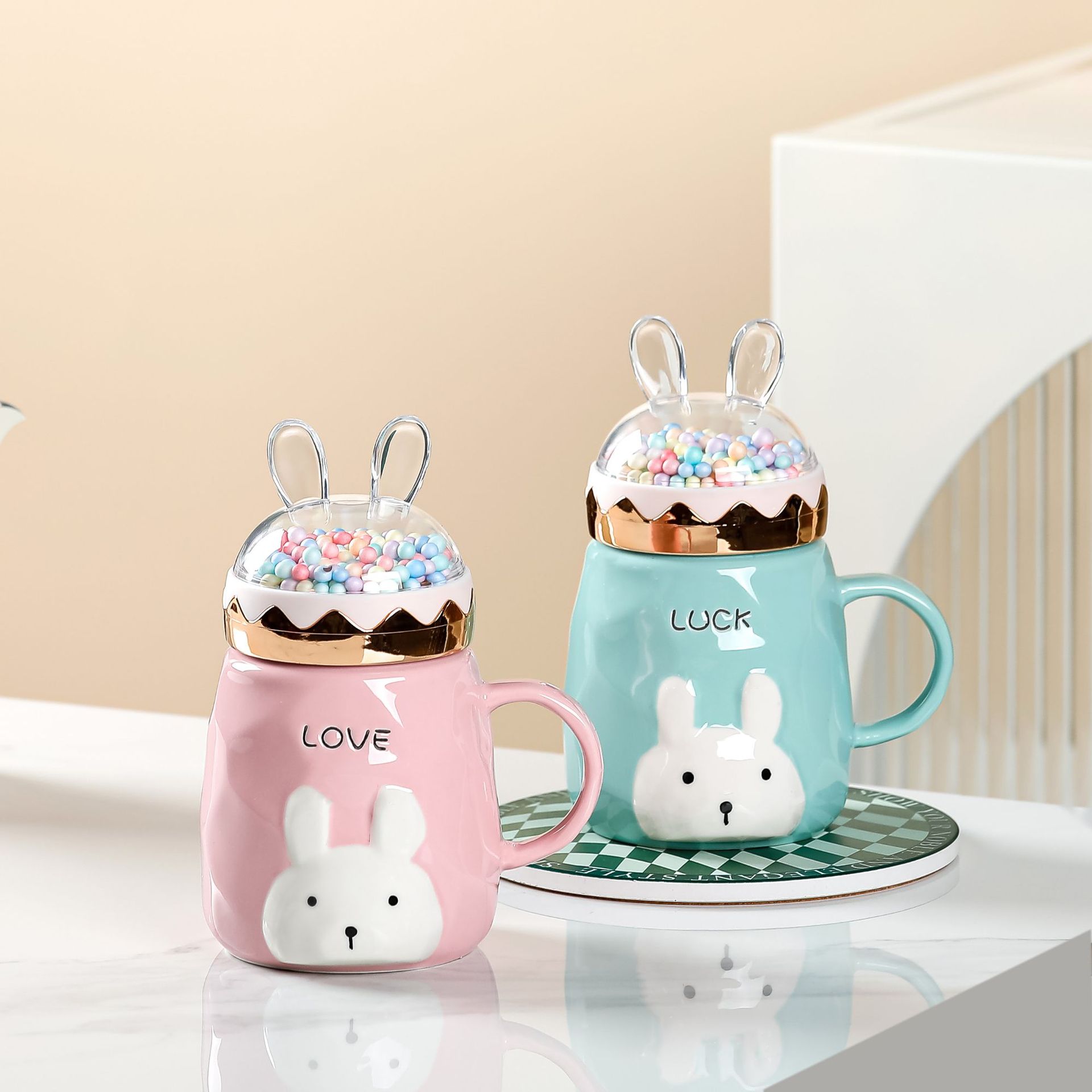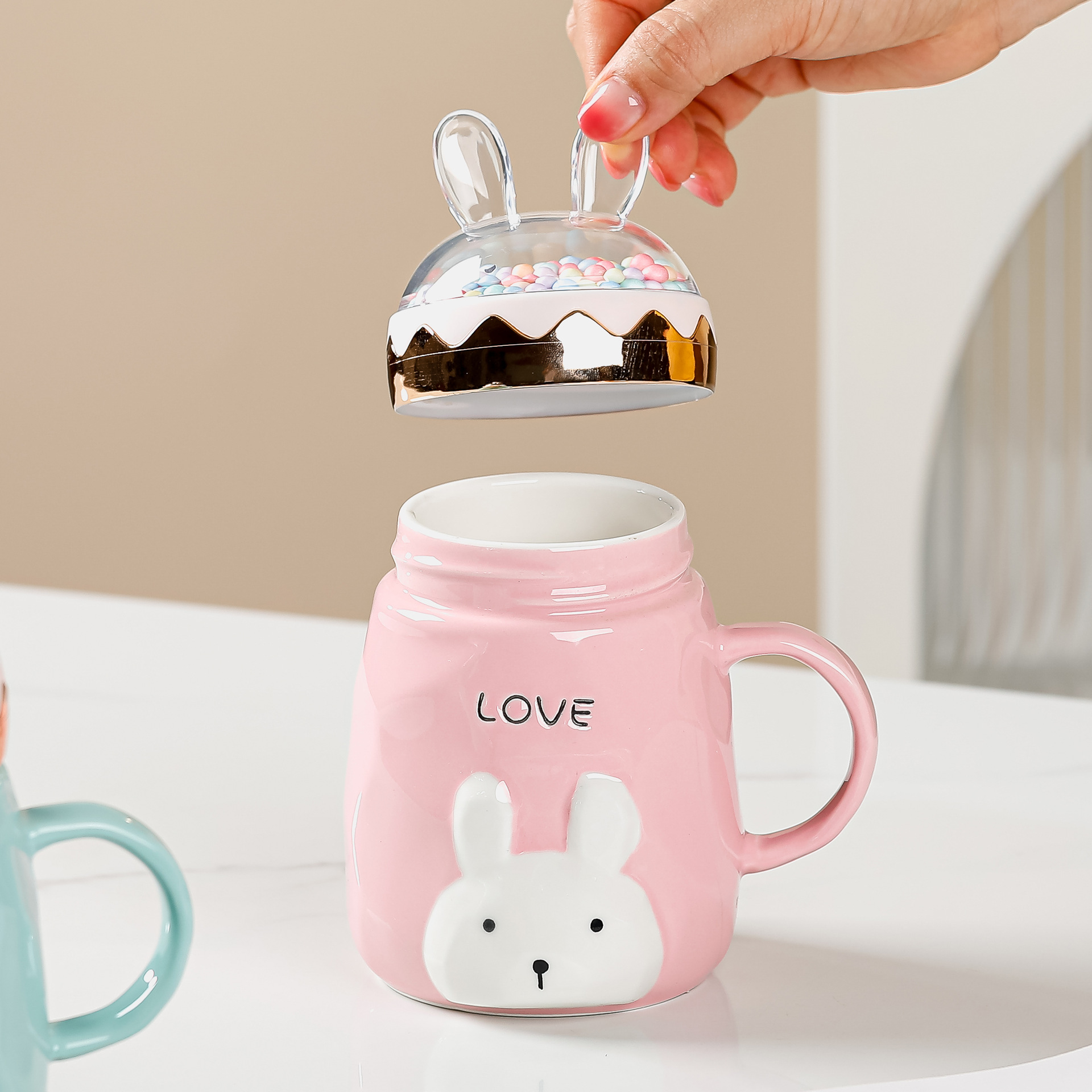 卡通草莓呆萌兔子陶瓷杯带盖马克杯咖啡杯学生儿童水杯创意小礼品