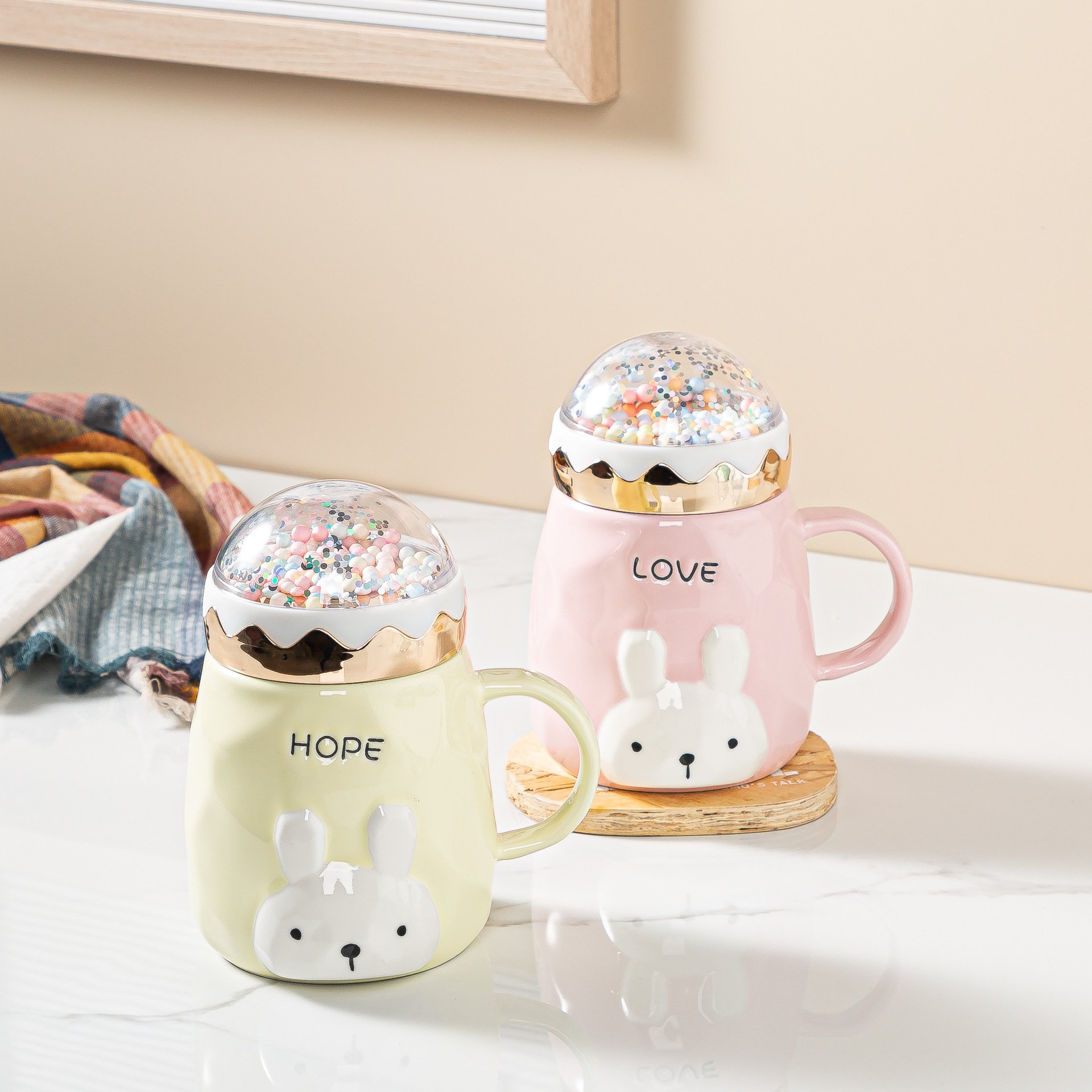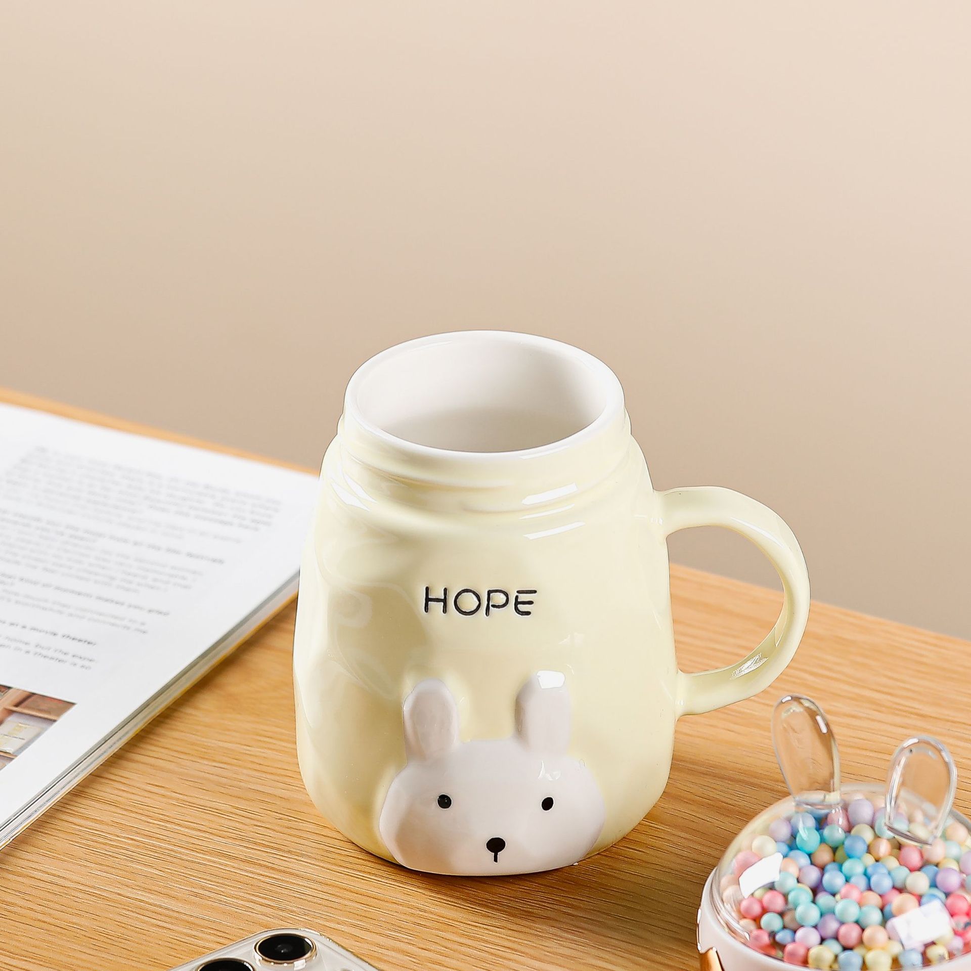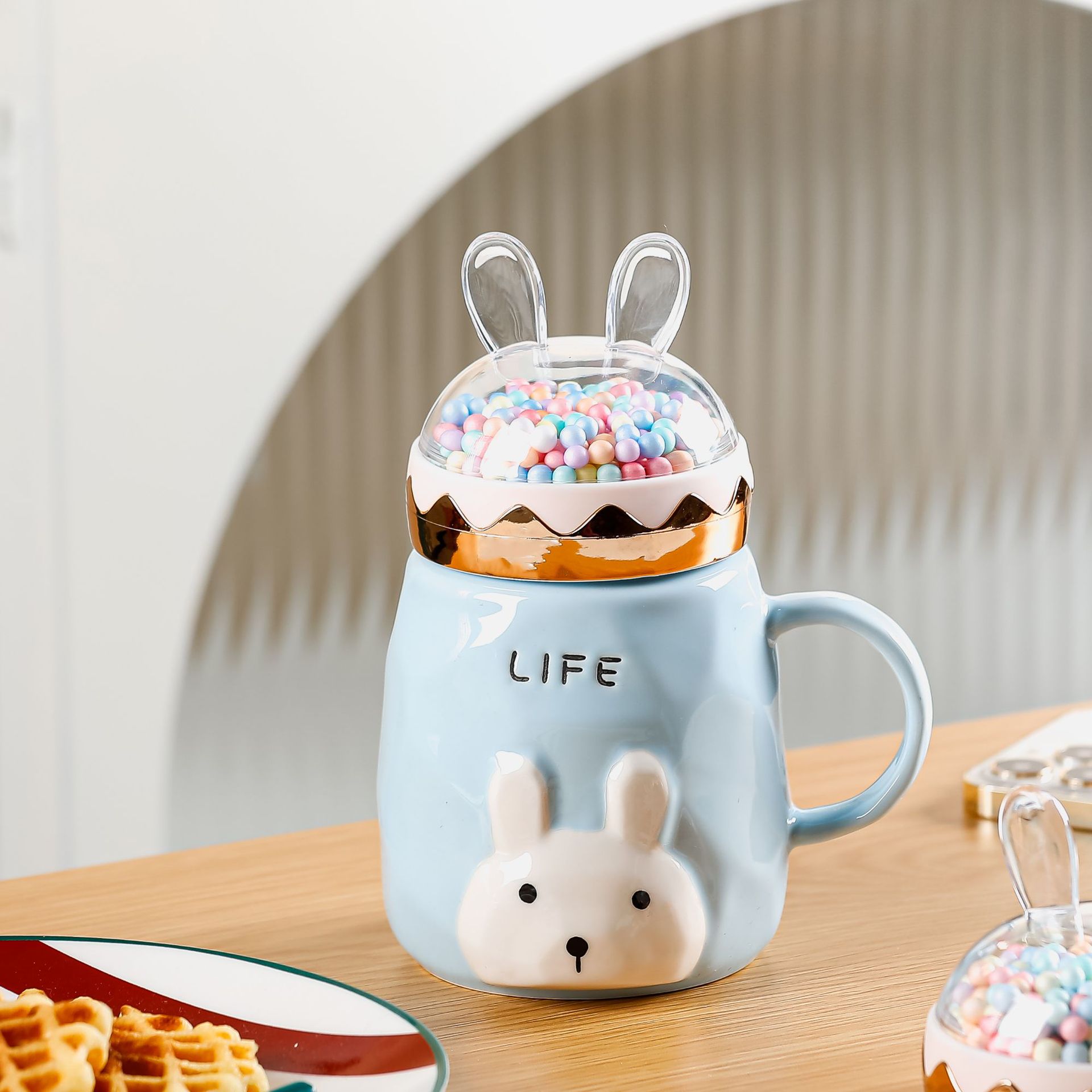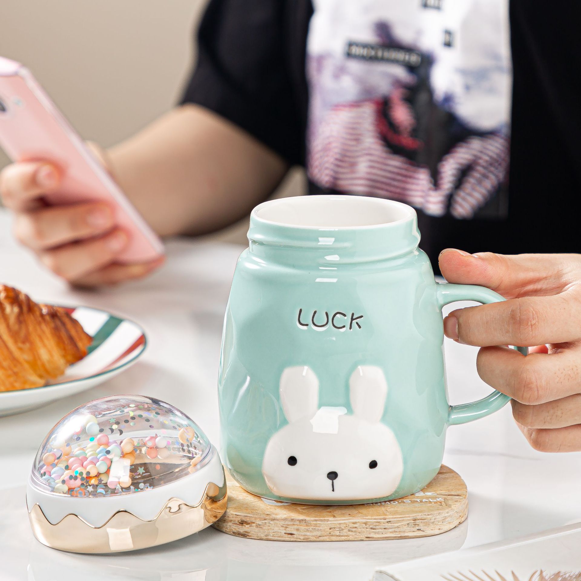 卡通草莓呆萌兔子陶瓷杯带盖马克杯咖啡杯学生儿童水杯创意小礼品