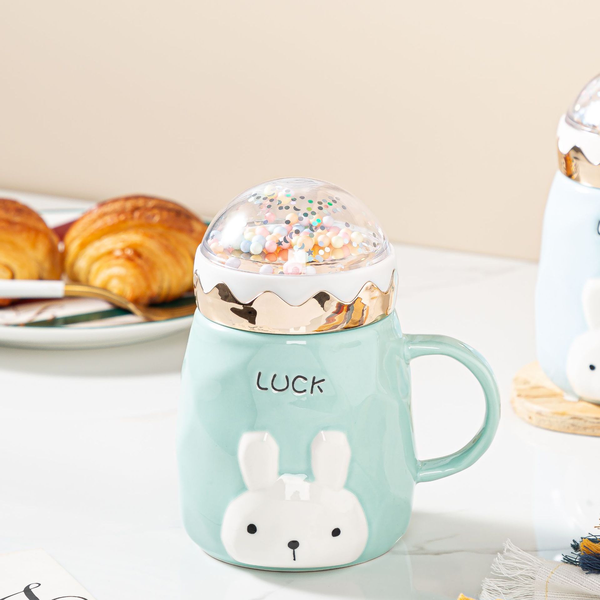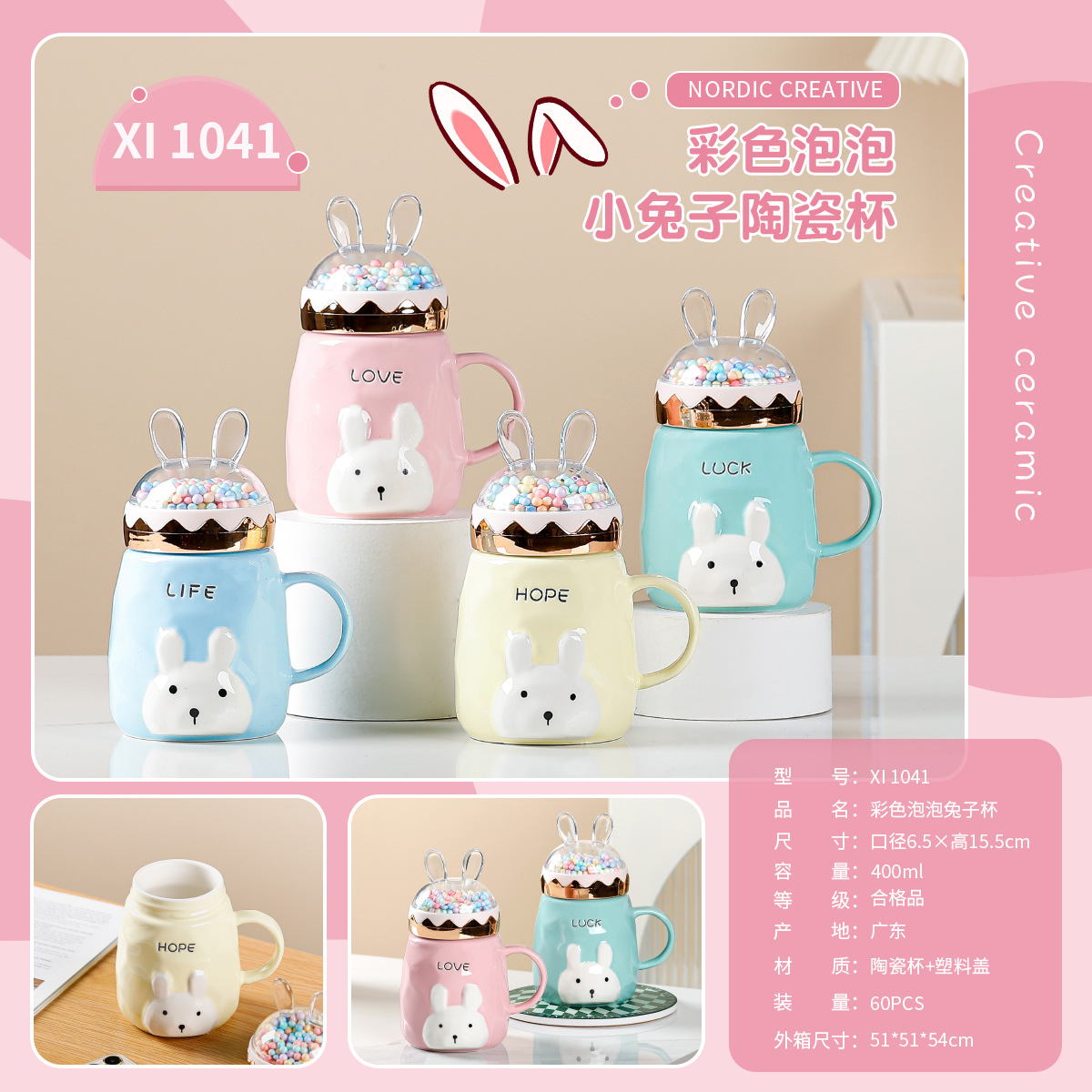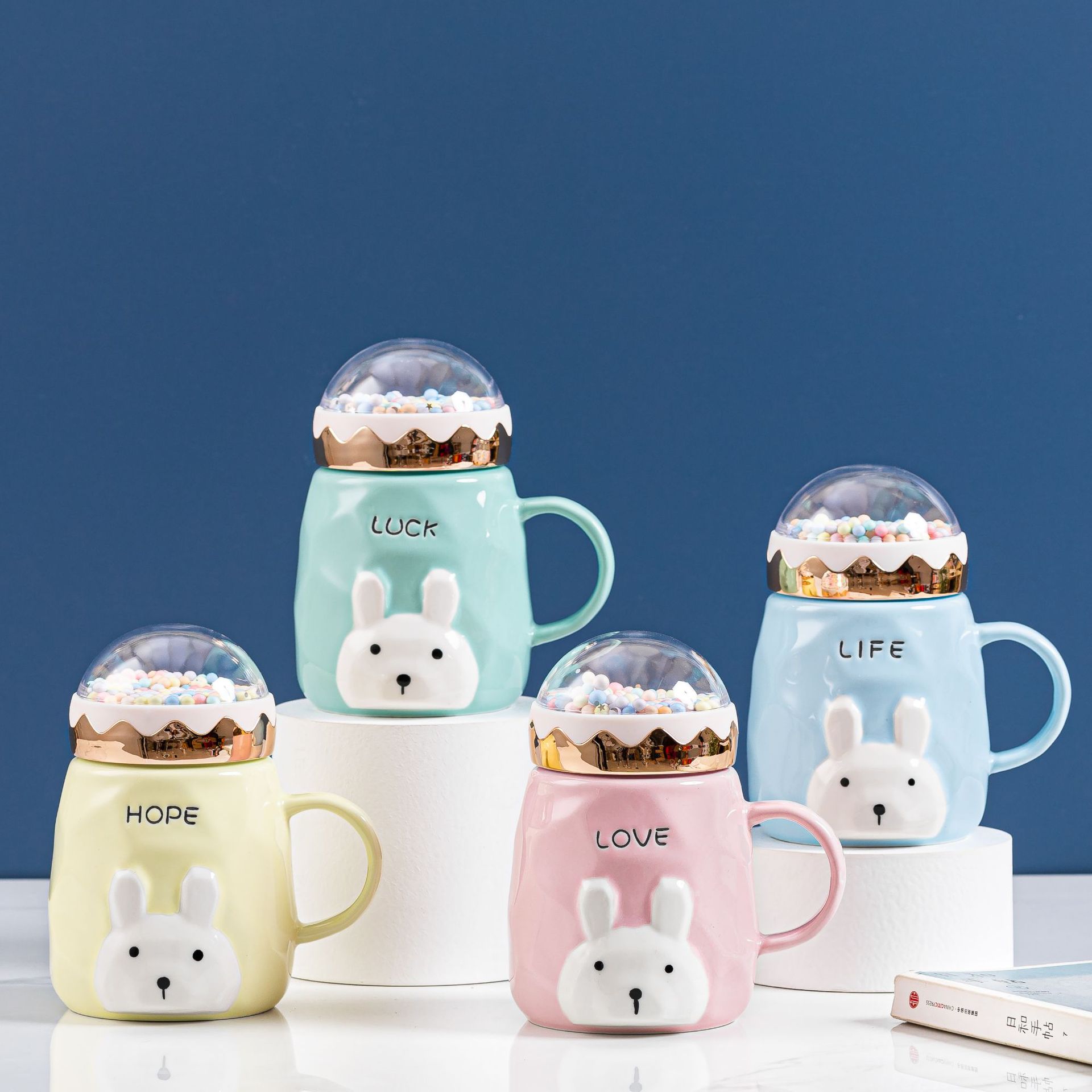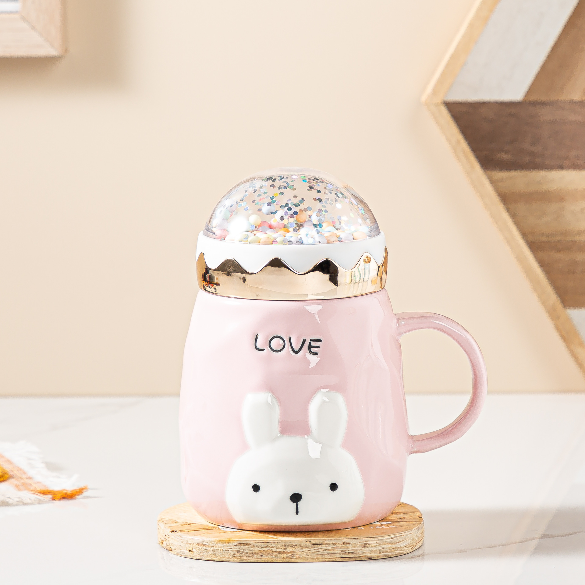卡通草莓呆萌兔子陶瓷杯带盖马克杯咖啡杯学生儿童水杯创意小礼品