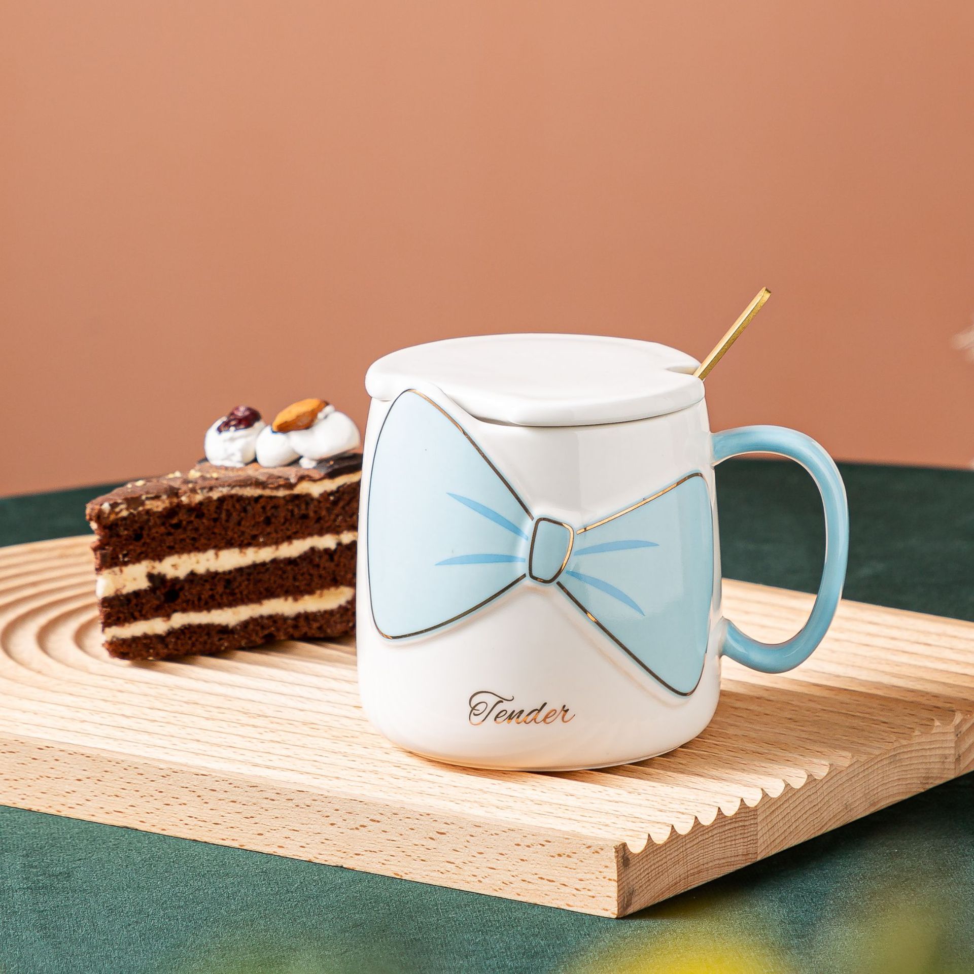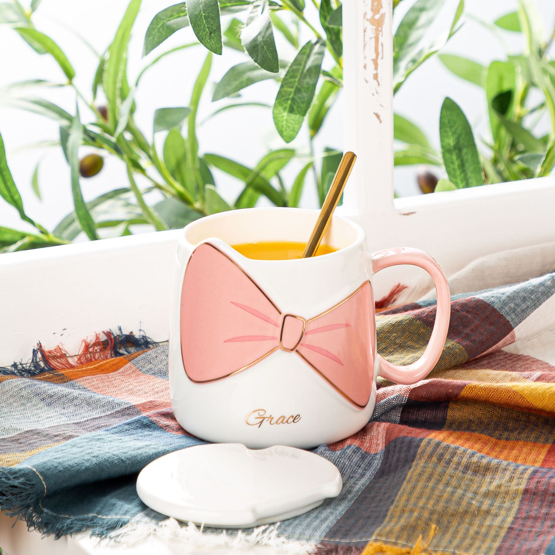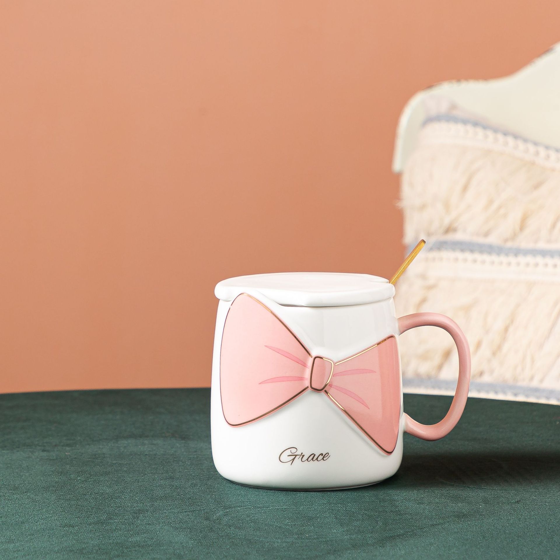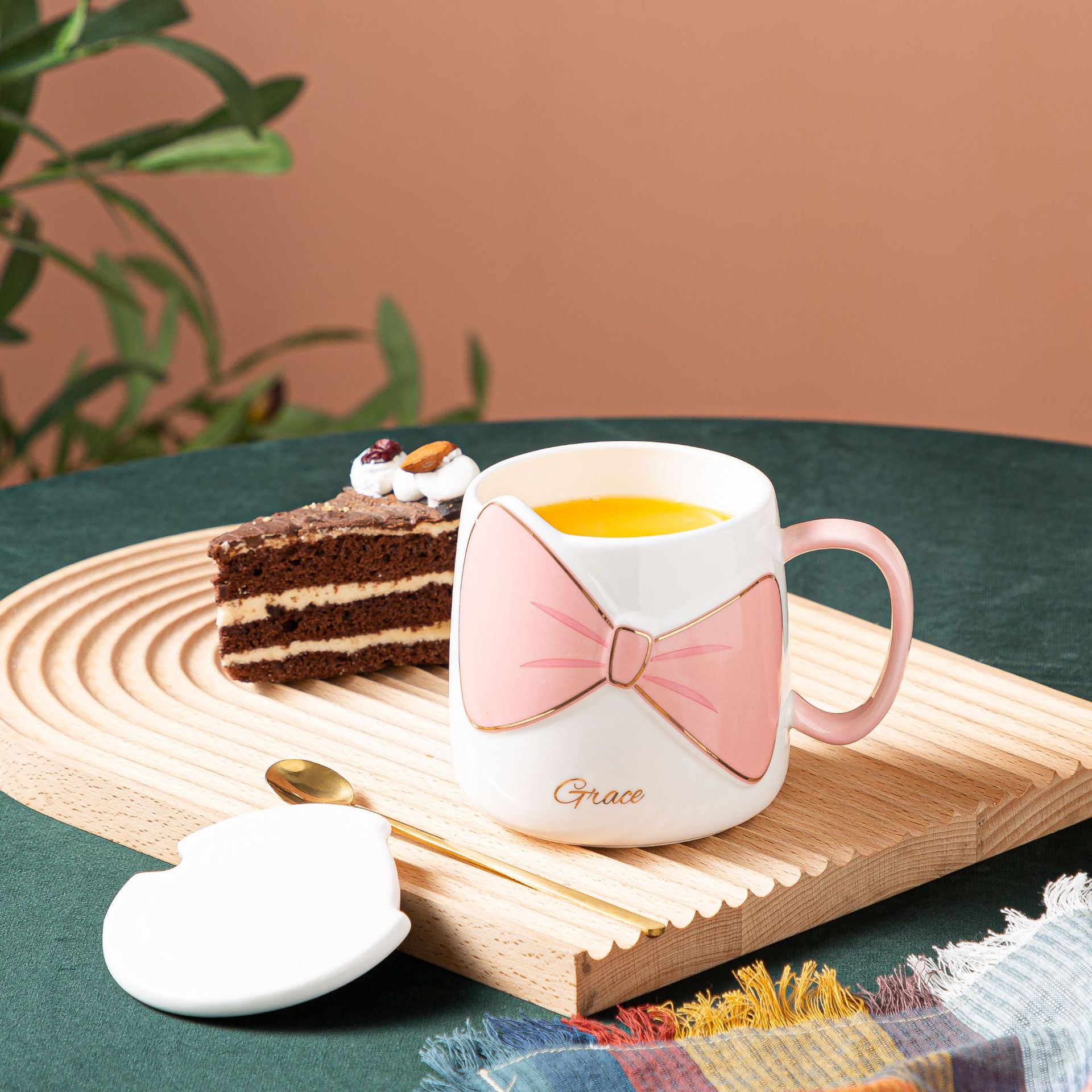 创意卡通且陶瓷杯高颜值马克杯可爱少女水杯配盖子勺子女生礼物