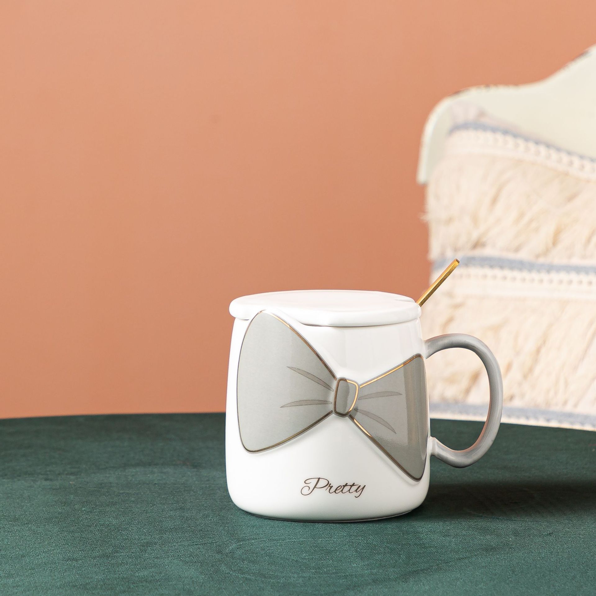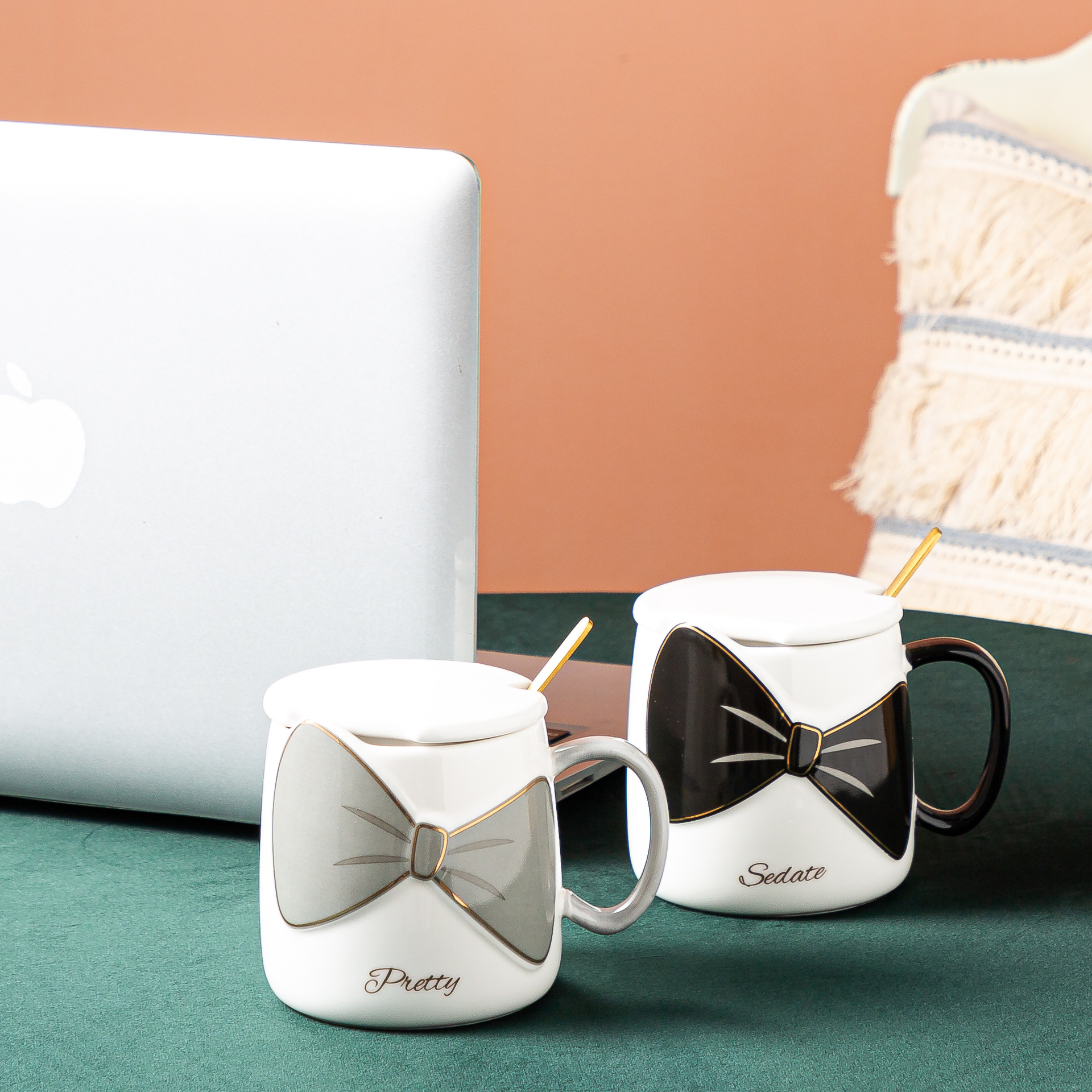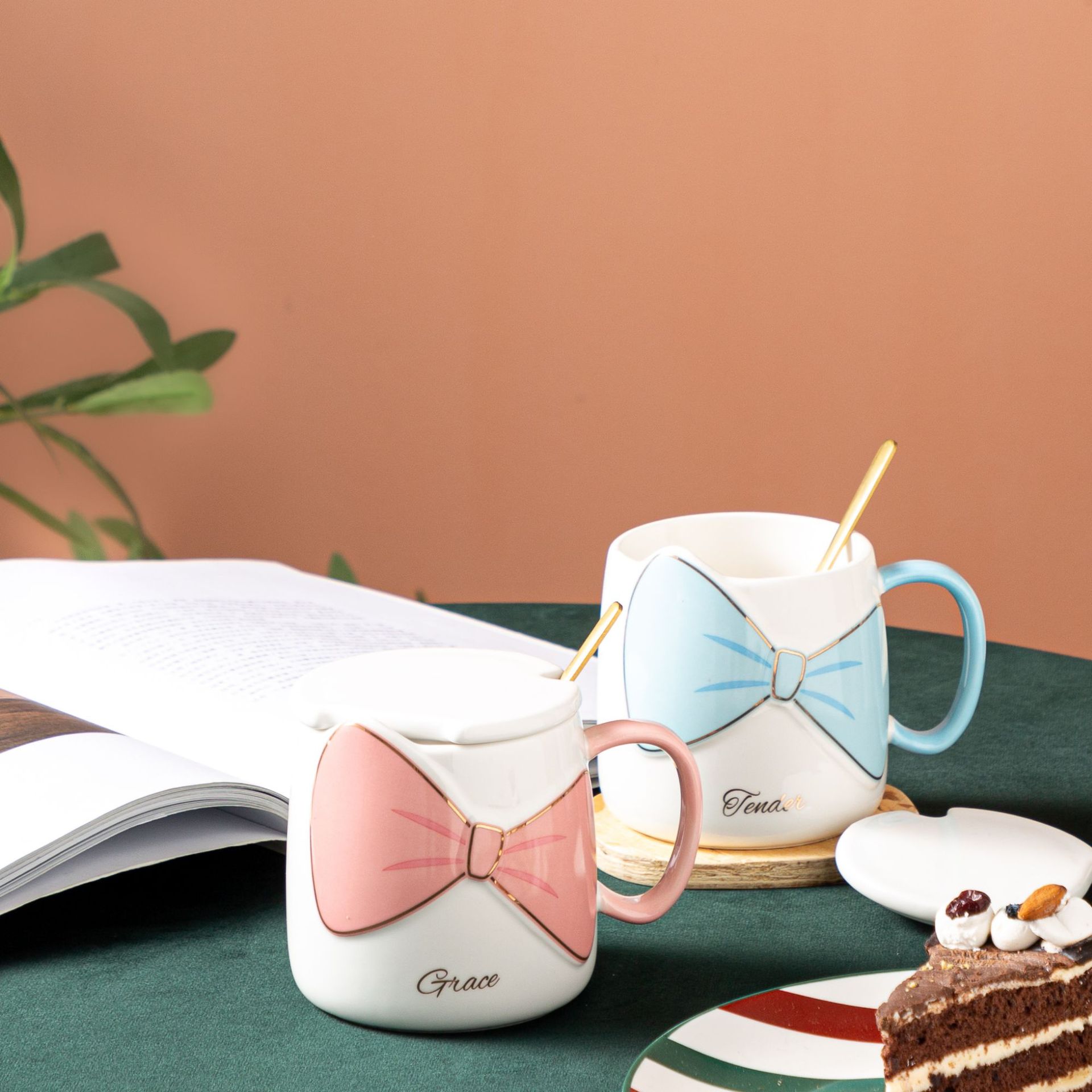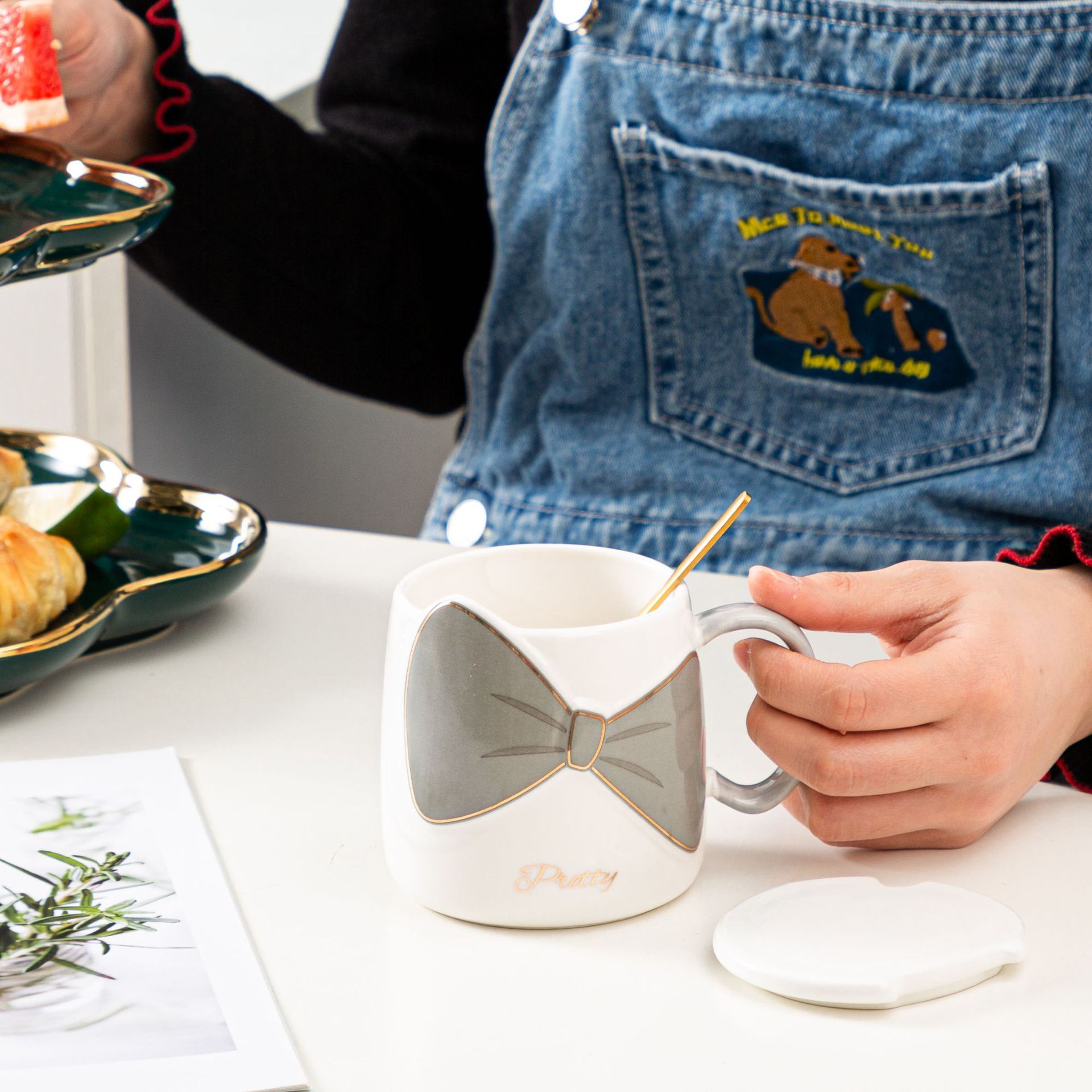 创意卡通且陶瓷杯高颜值马克杯可爱少女水杯配盖子勺子女生礼物