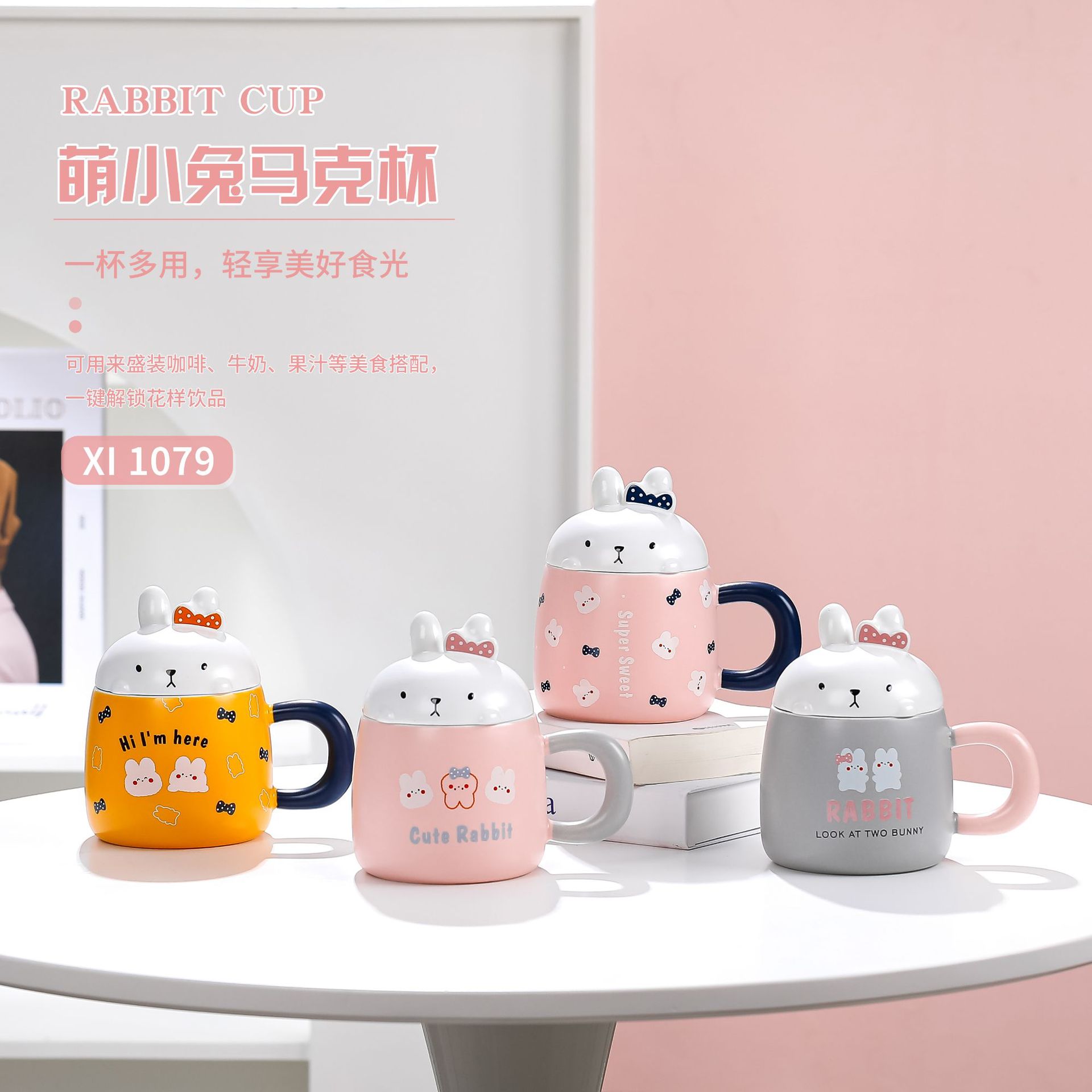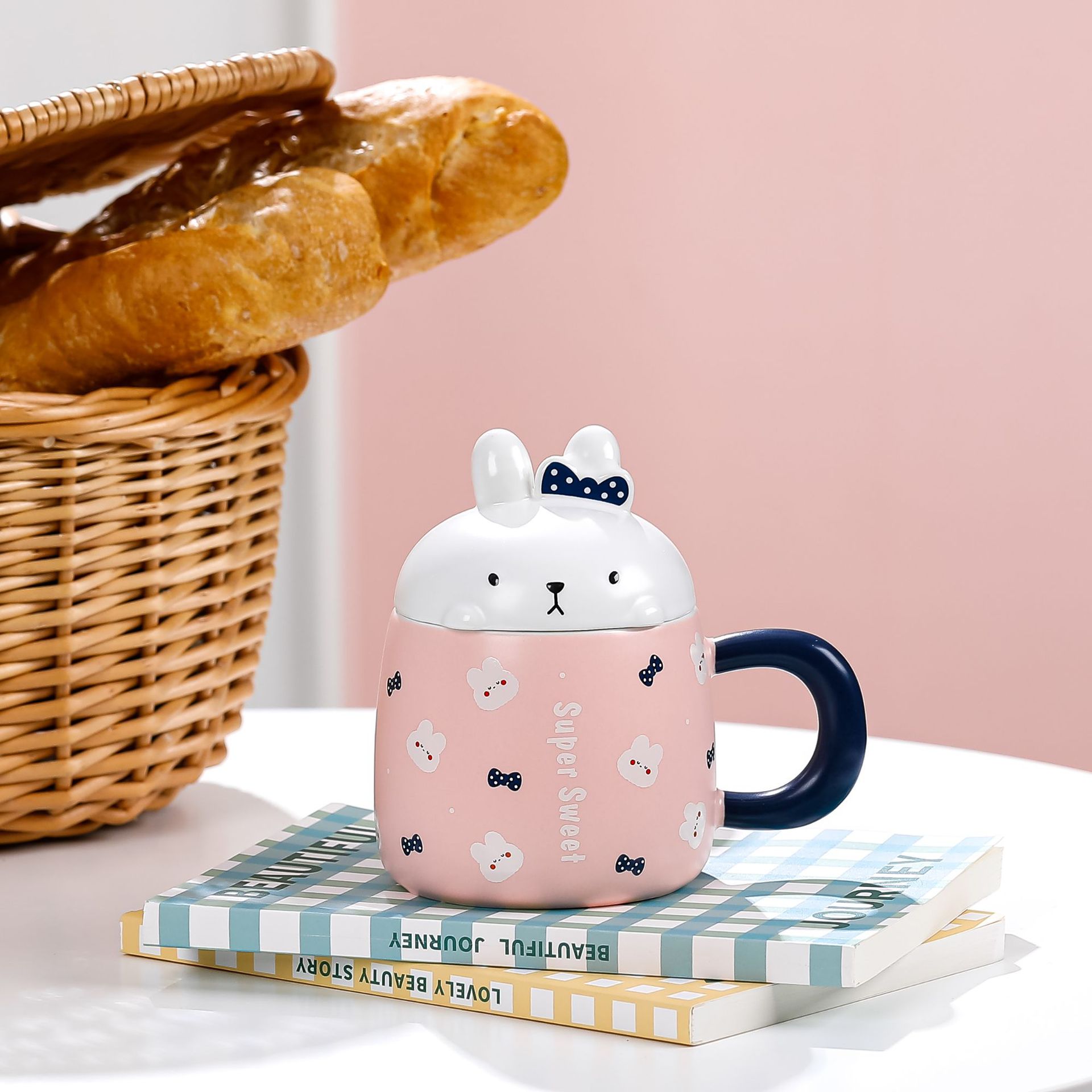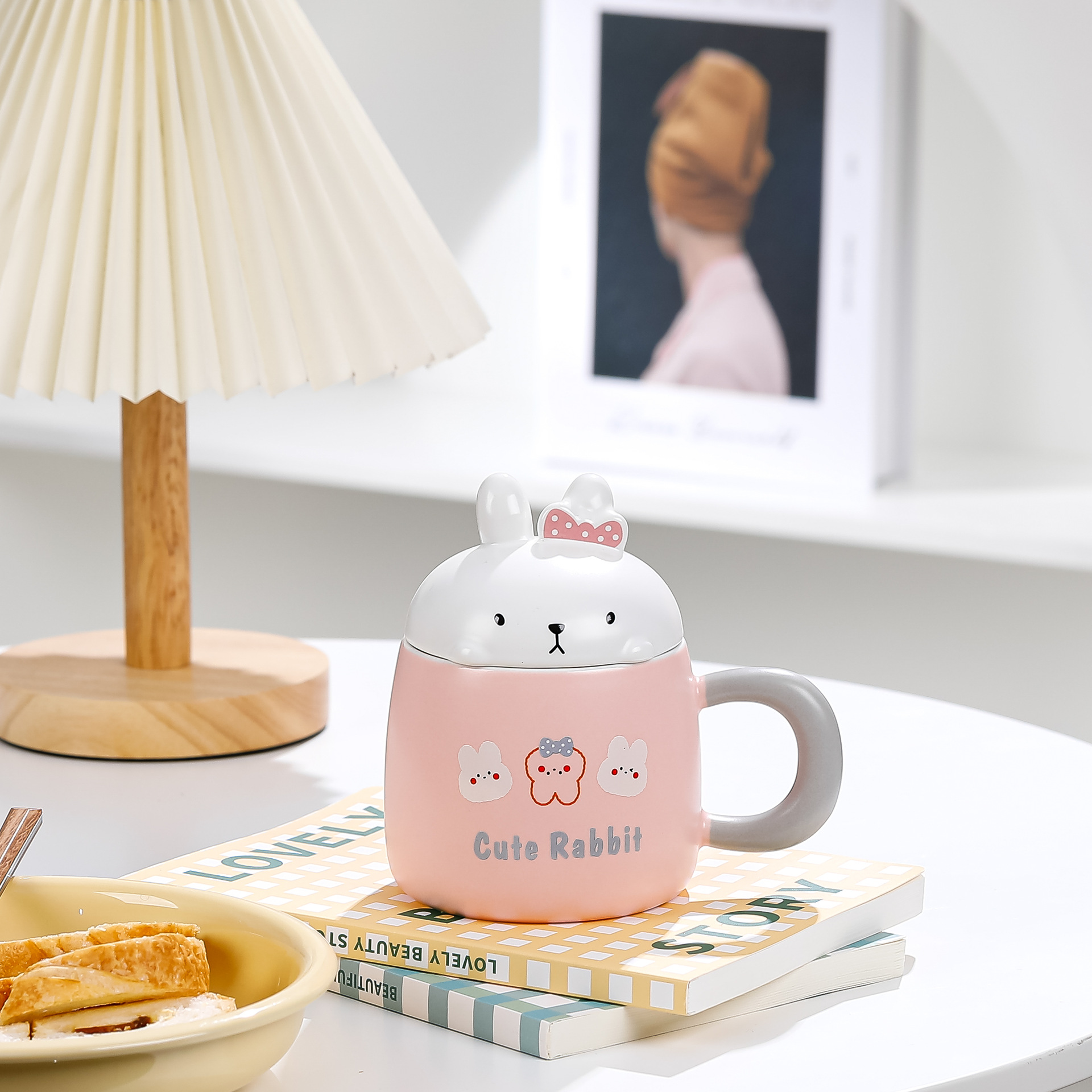 卡通草莓呆萌兔子陶瓷杯带盖马克杯咖啡杯学生儿童水杯创意小礼品