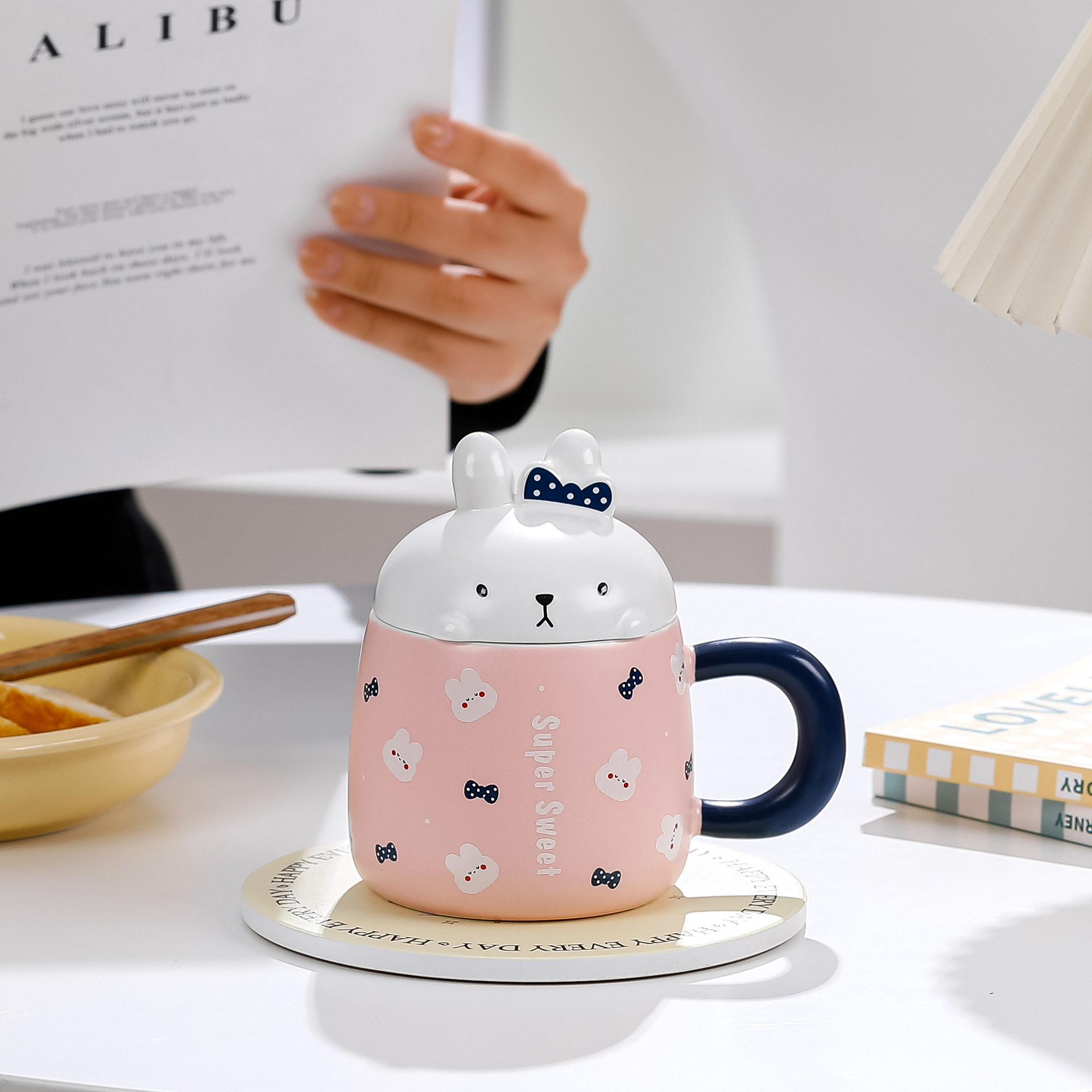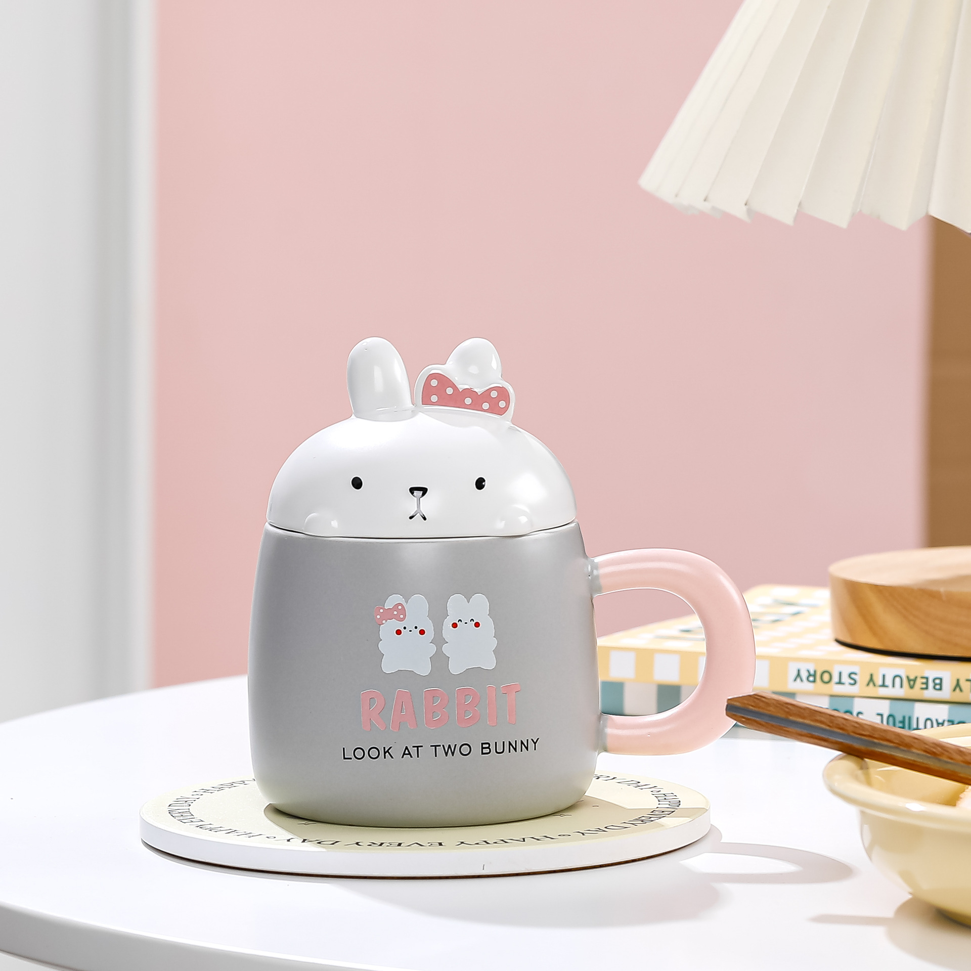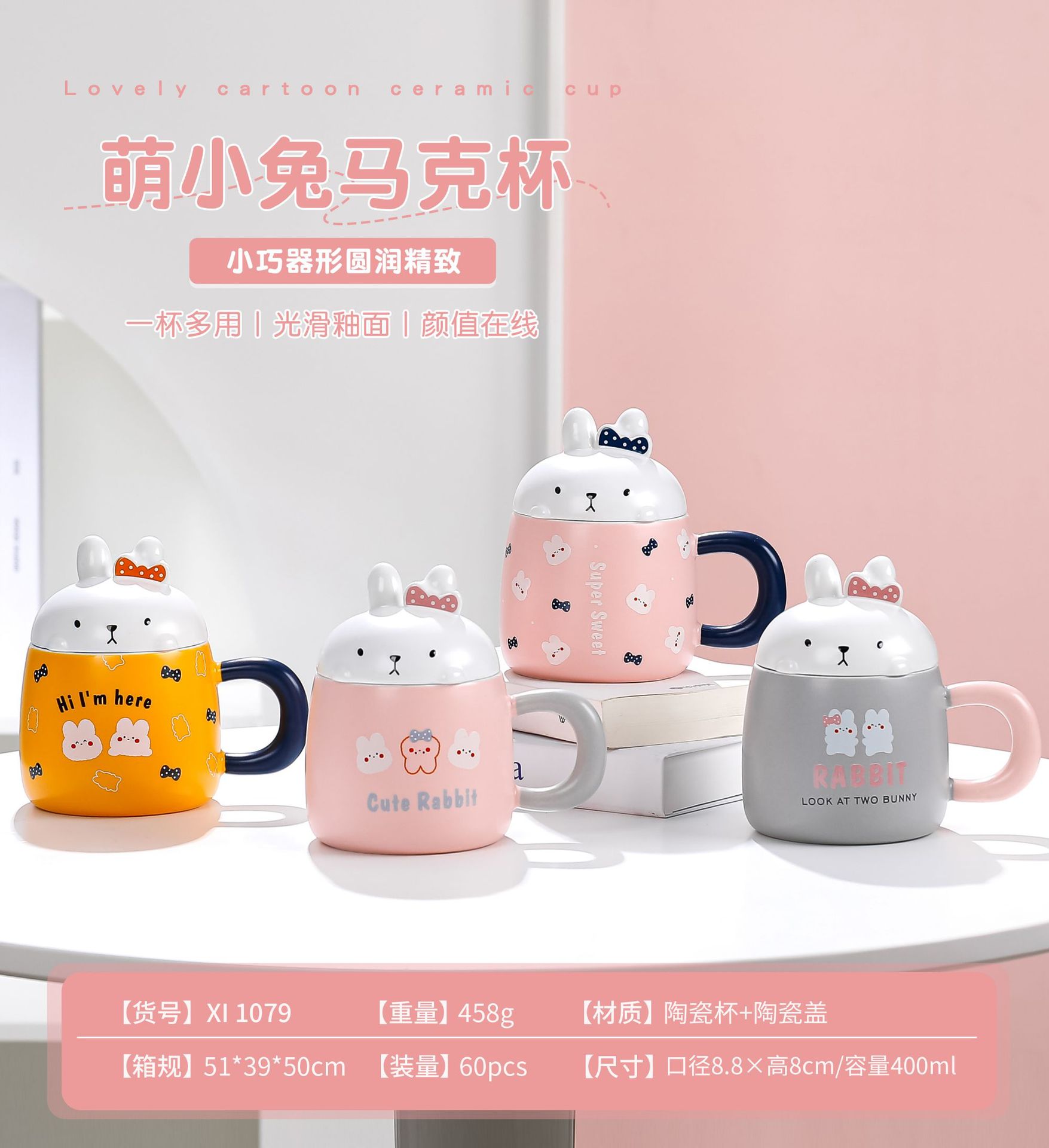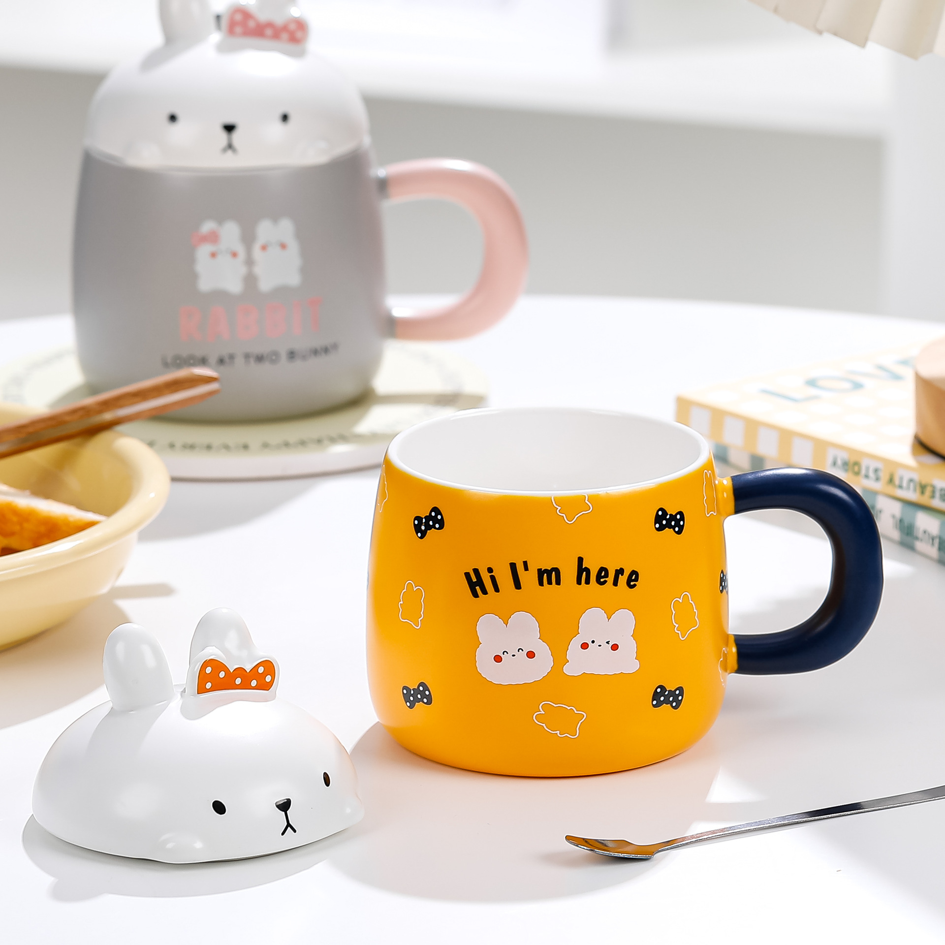 卡通草莓呆萌兔子陶瓷杯带盖马克杯咖啡杯学生儿童水杯创意小礼品