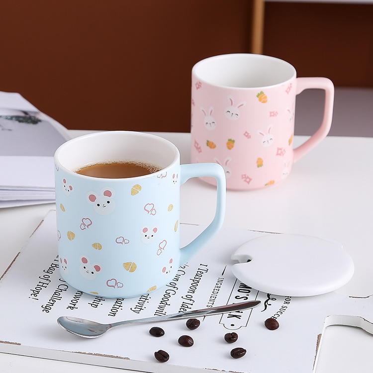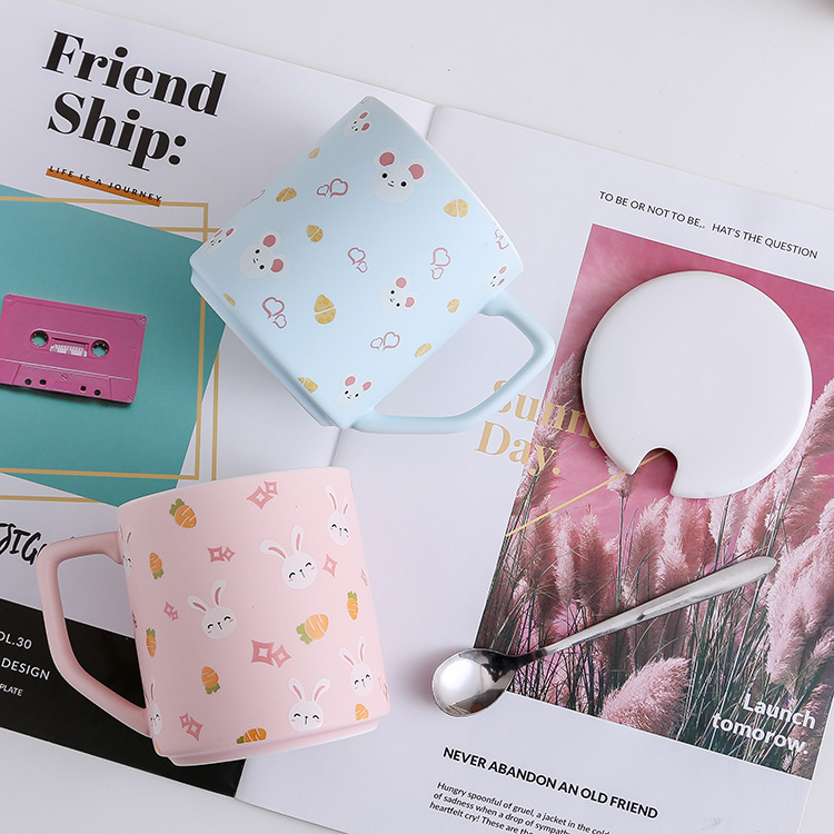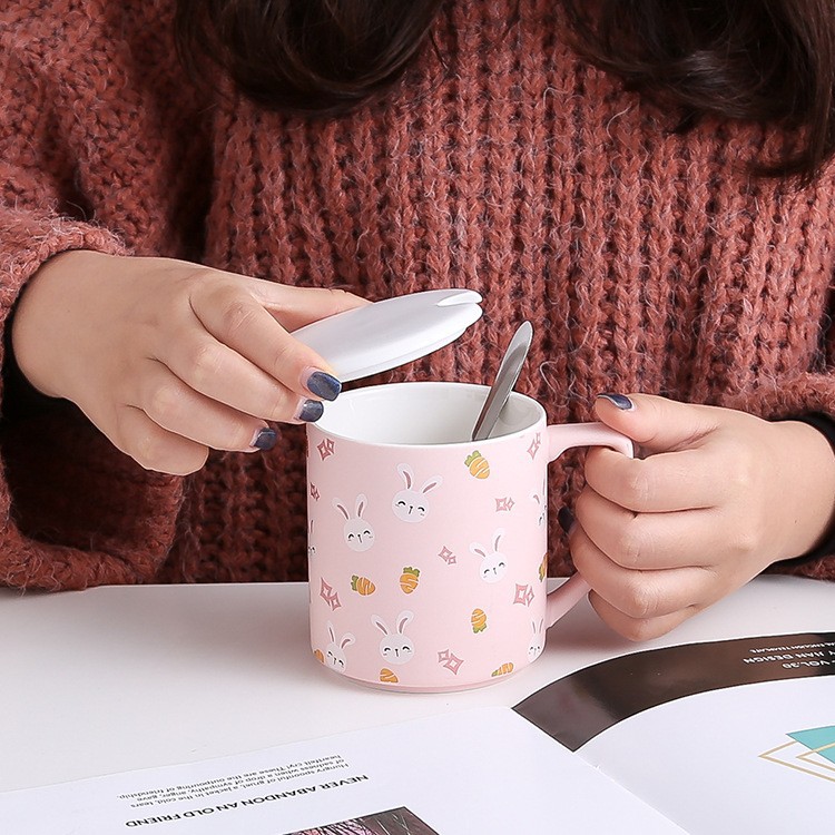 卡通草莓呆萌兔子陶瓷杯带盖马克杯咖啡杯学生儿童水杯创意小礼品