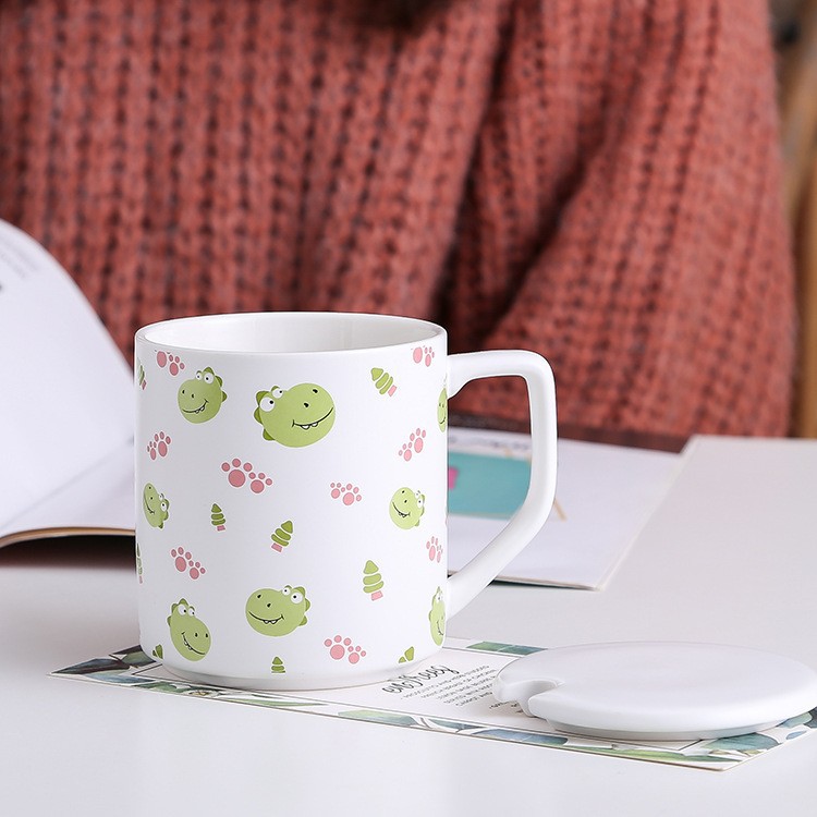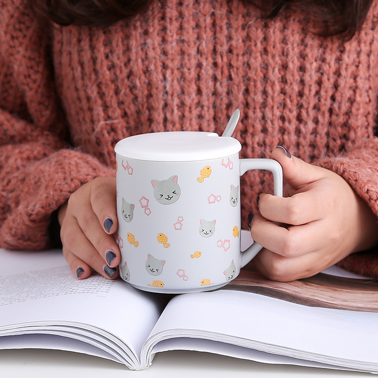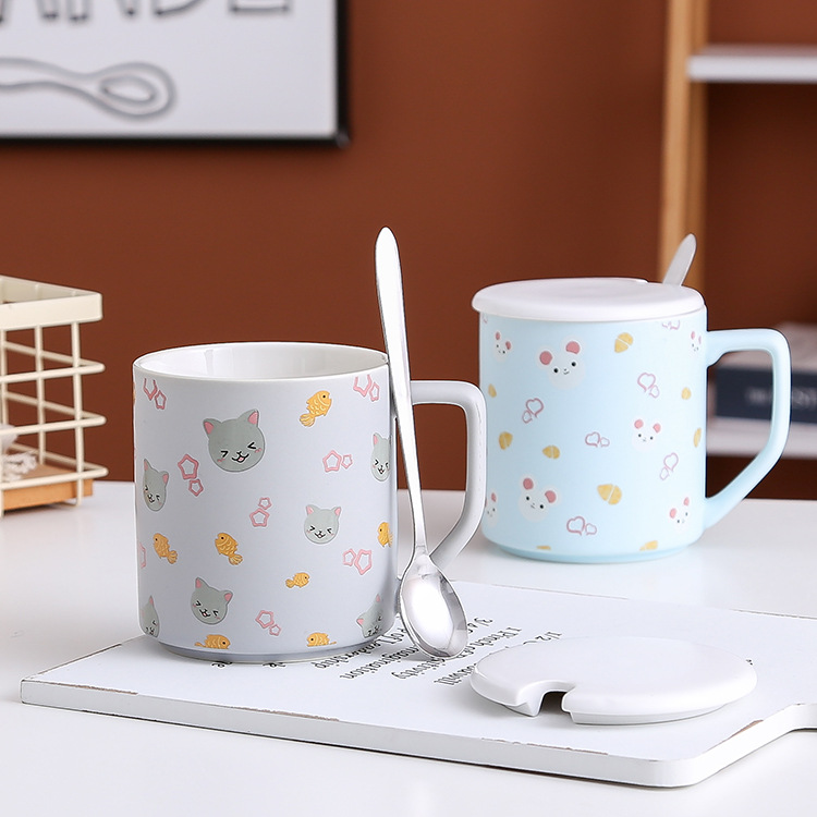 创意卡通陶瓷杯网红马克杯带盖勺实用商务小礼品广告杯子礼品批发