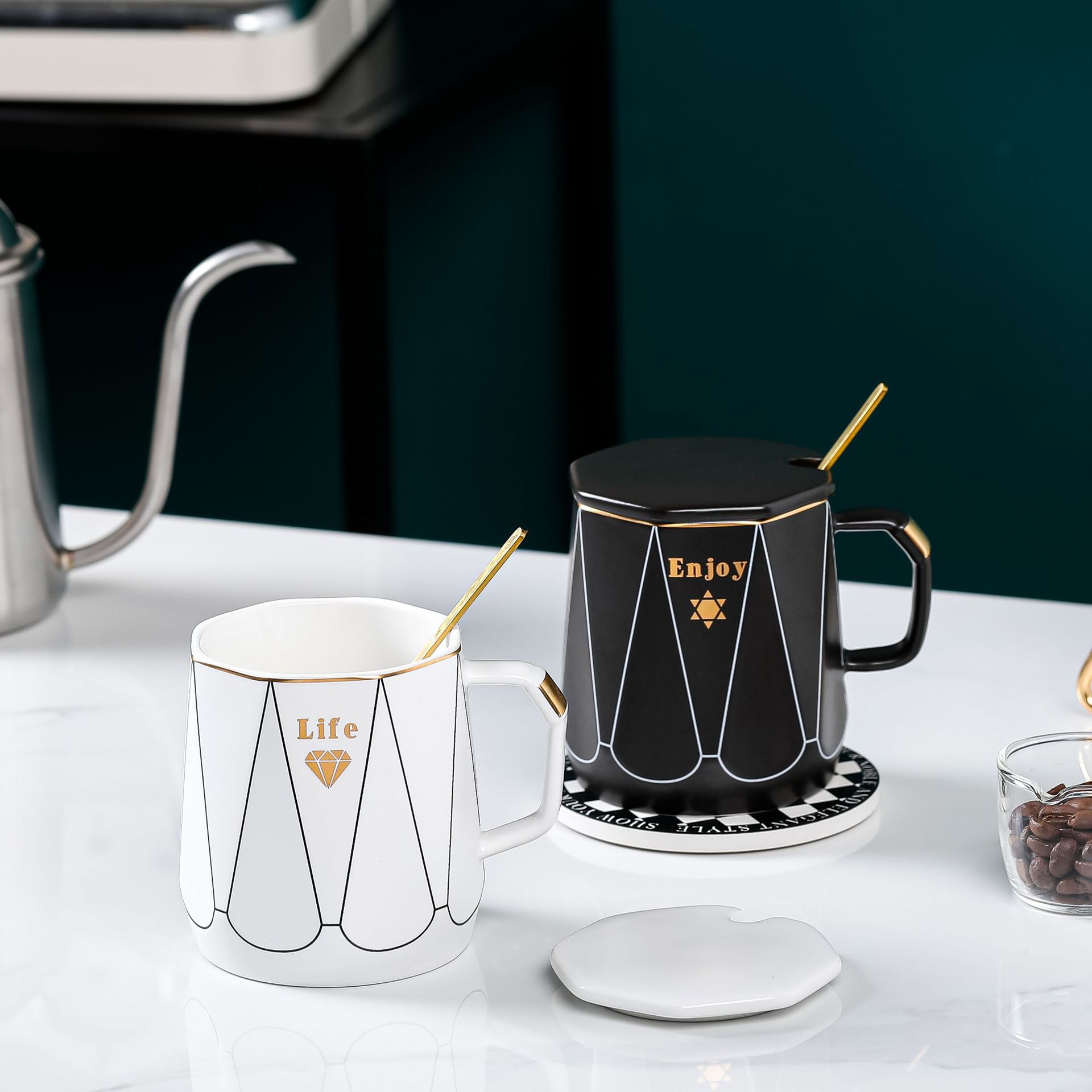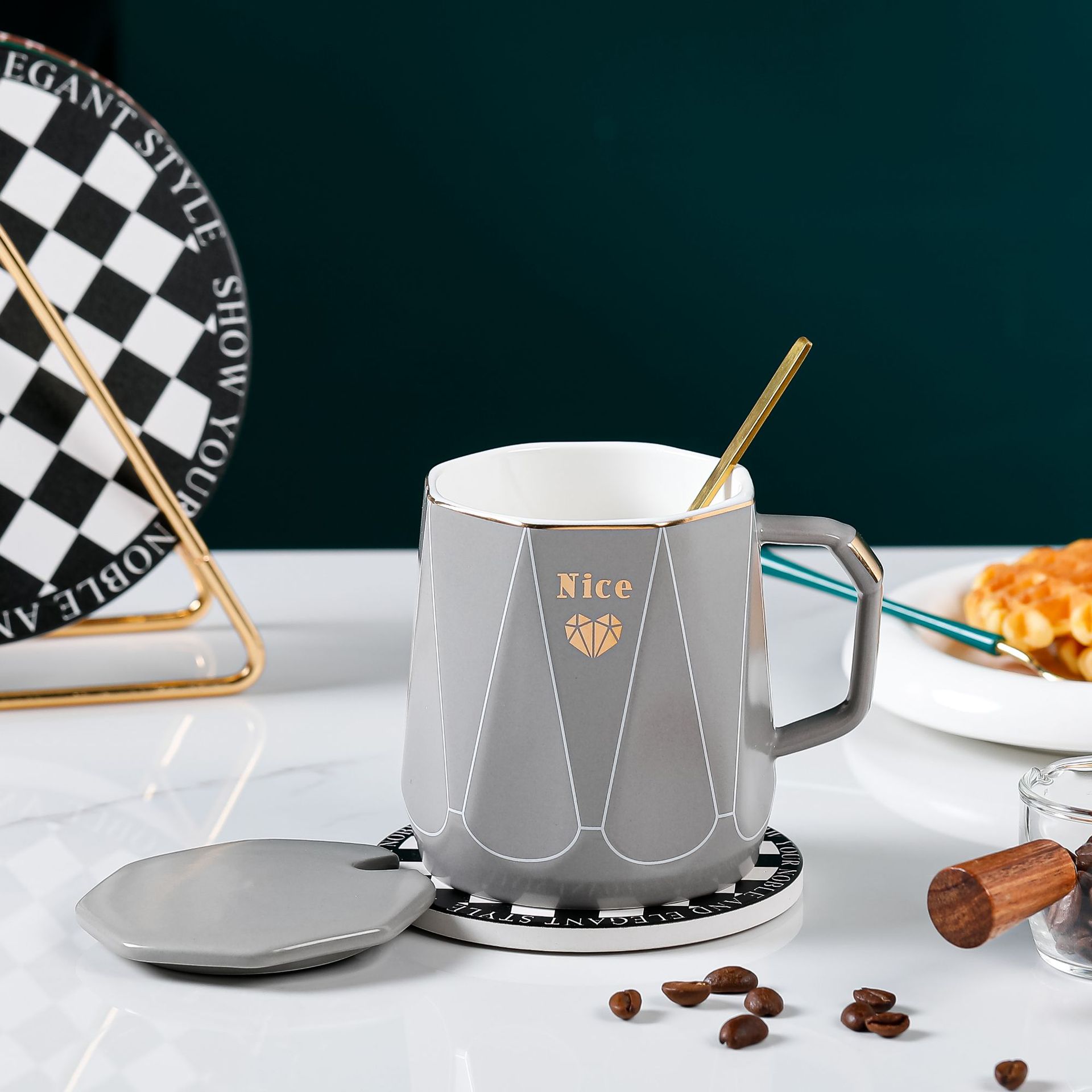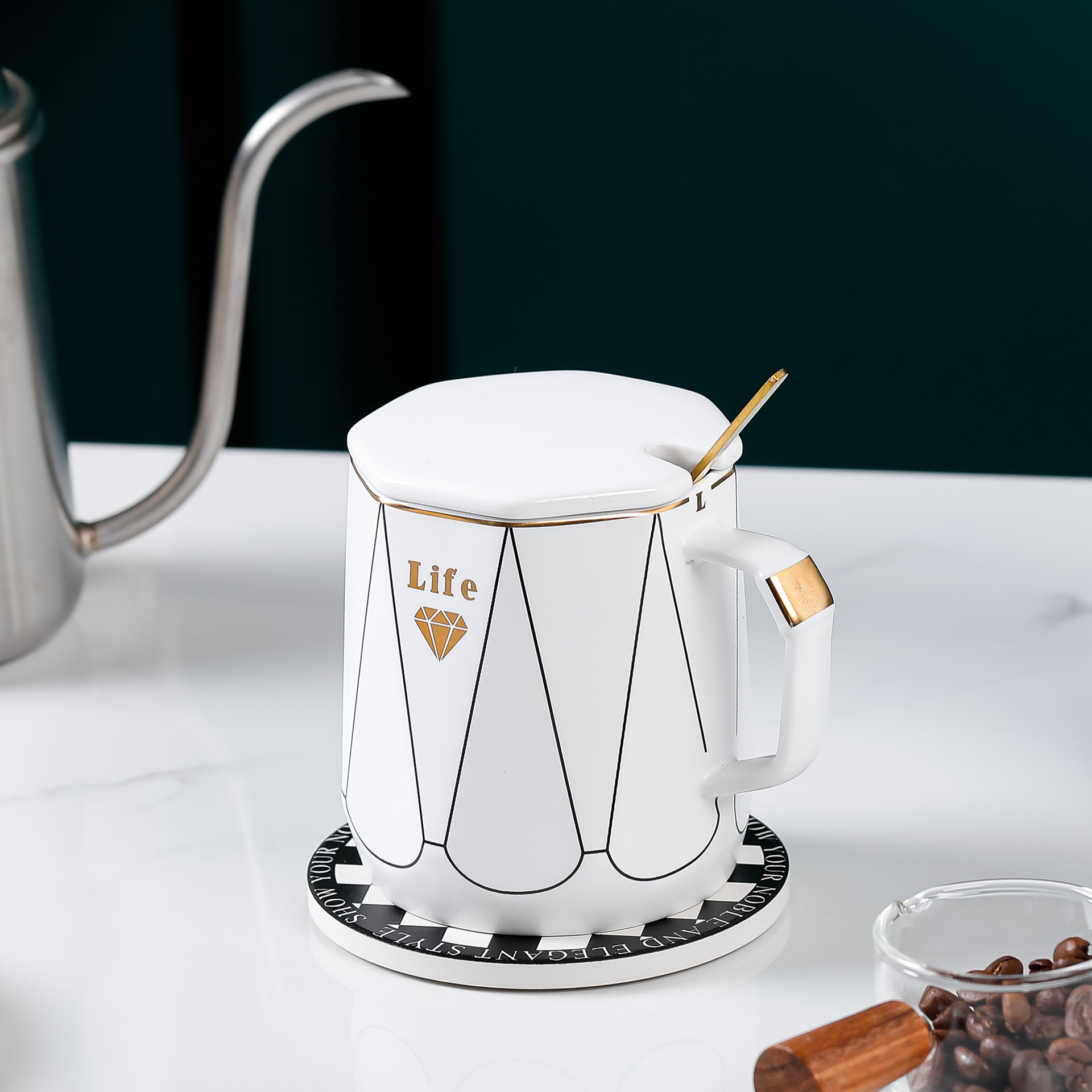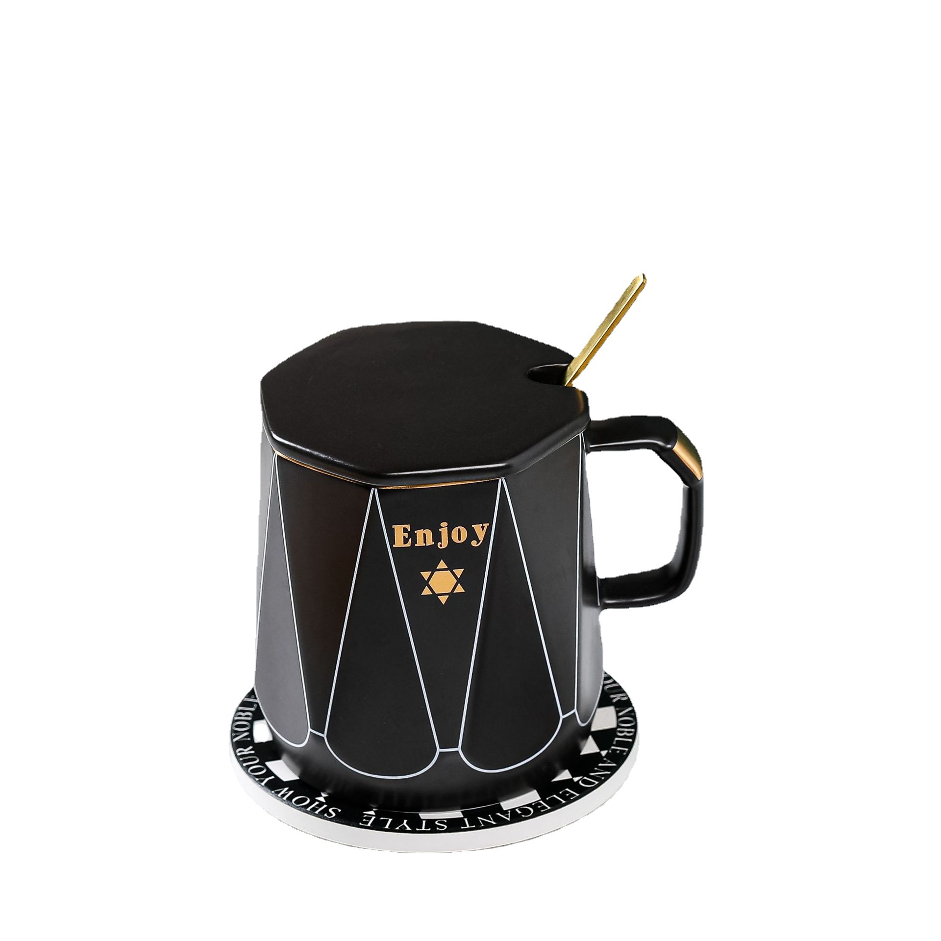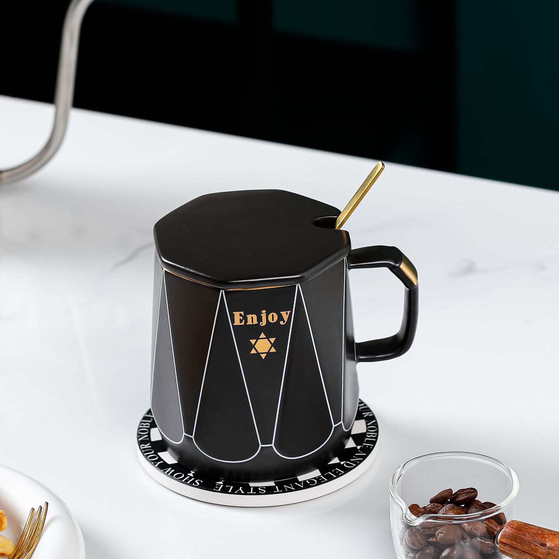 创意简约办公家用马克杯带盖子勺子咖啡杯礼品批发