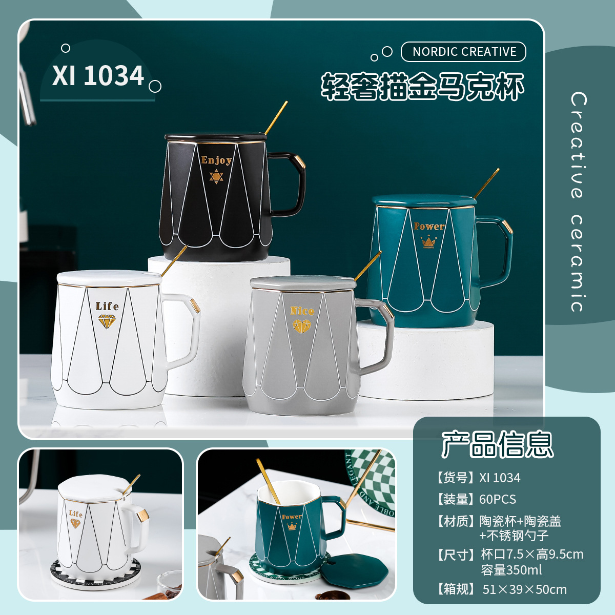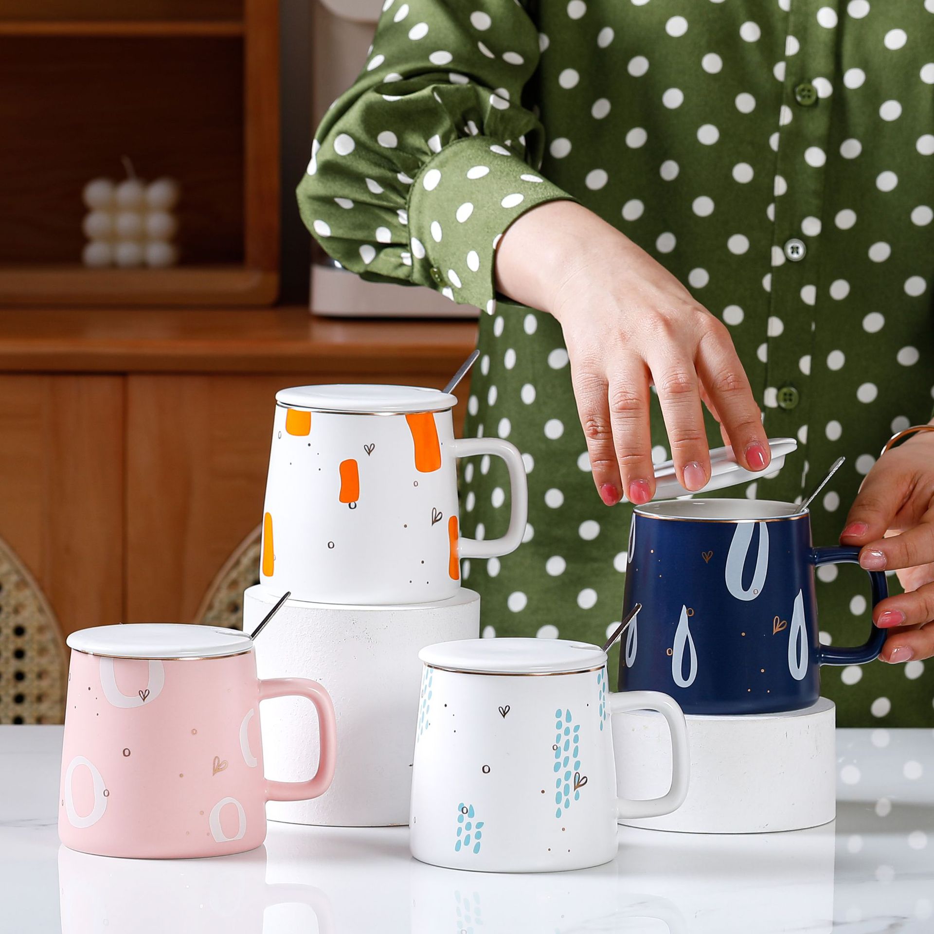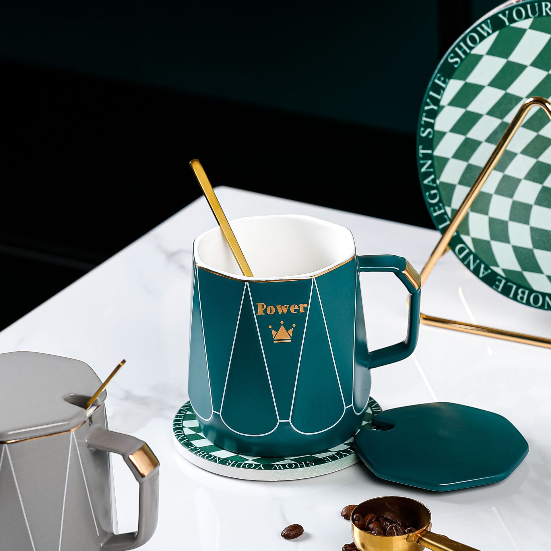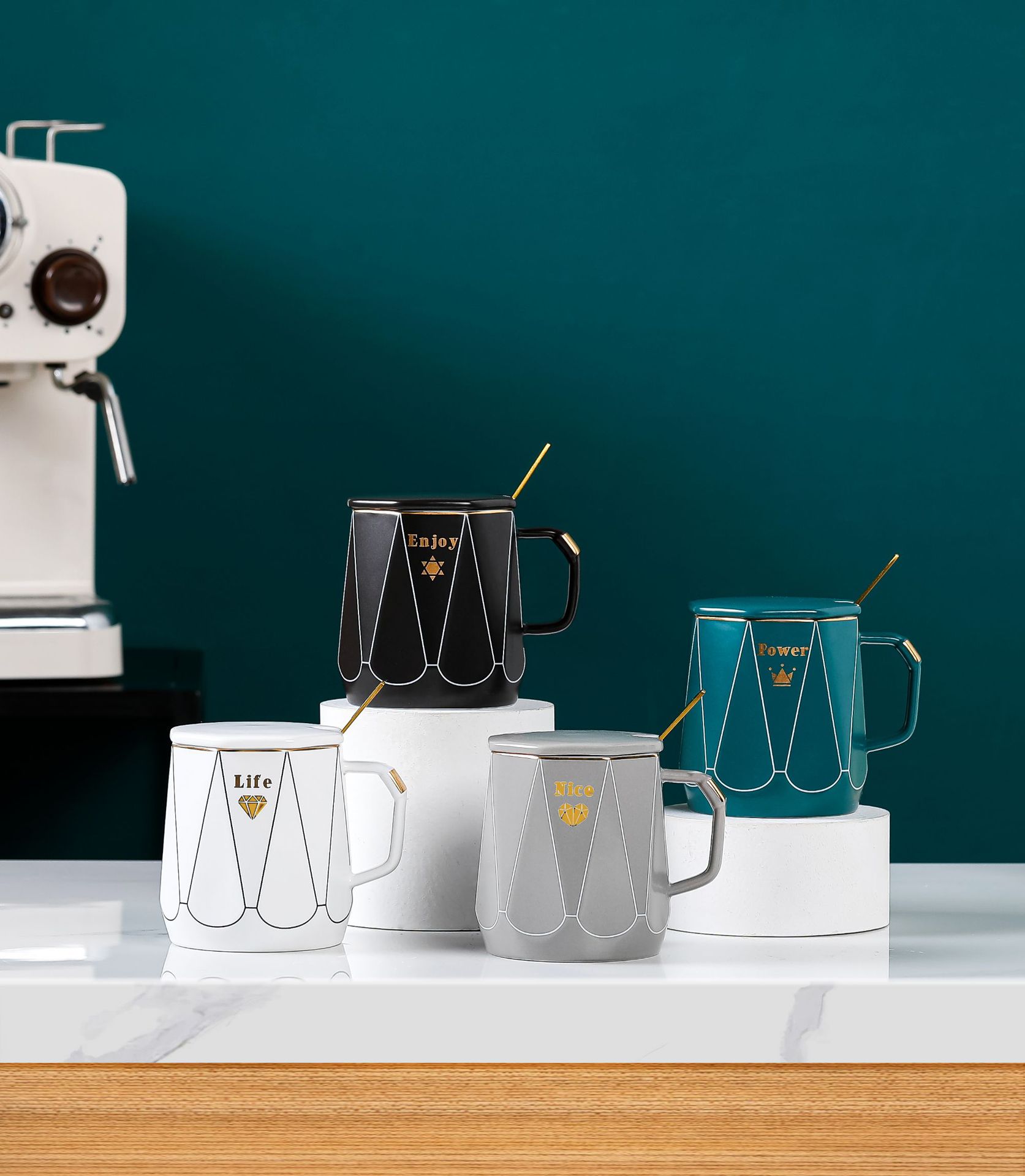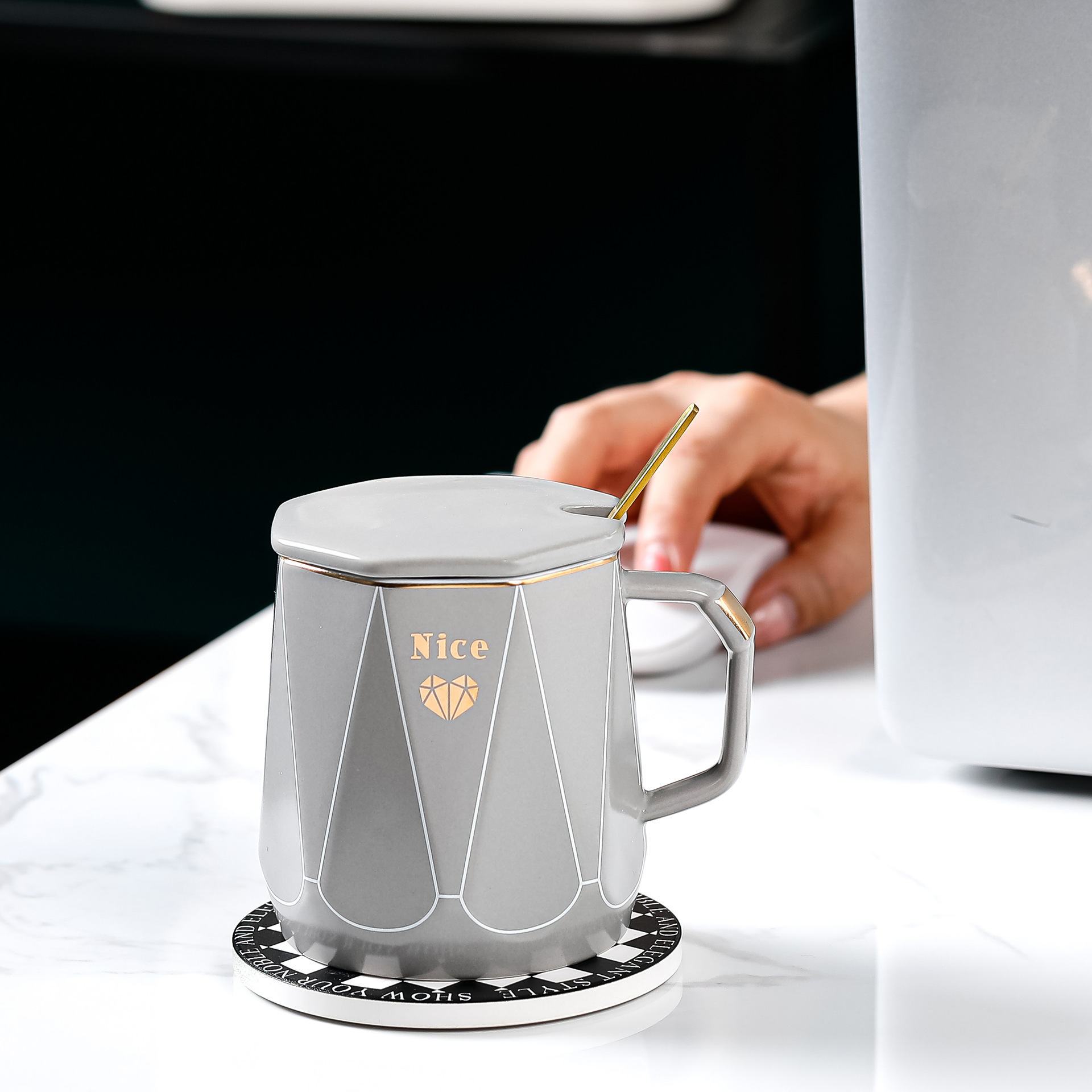 创意简约办公家用马克杯带盖子勺子咖啡杯礼品批发