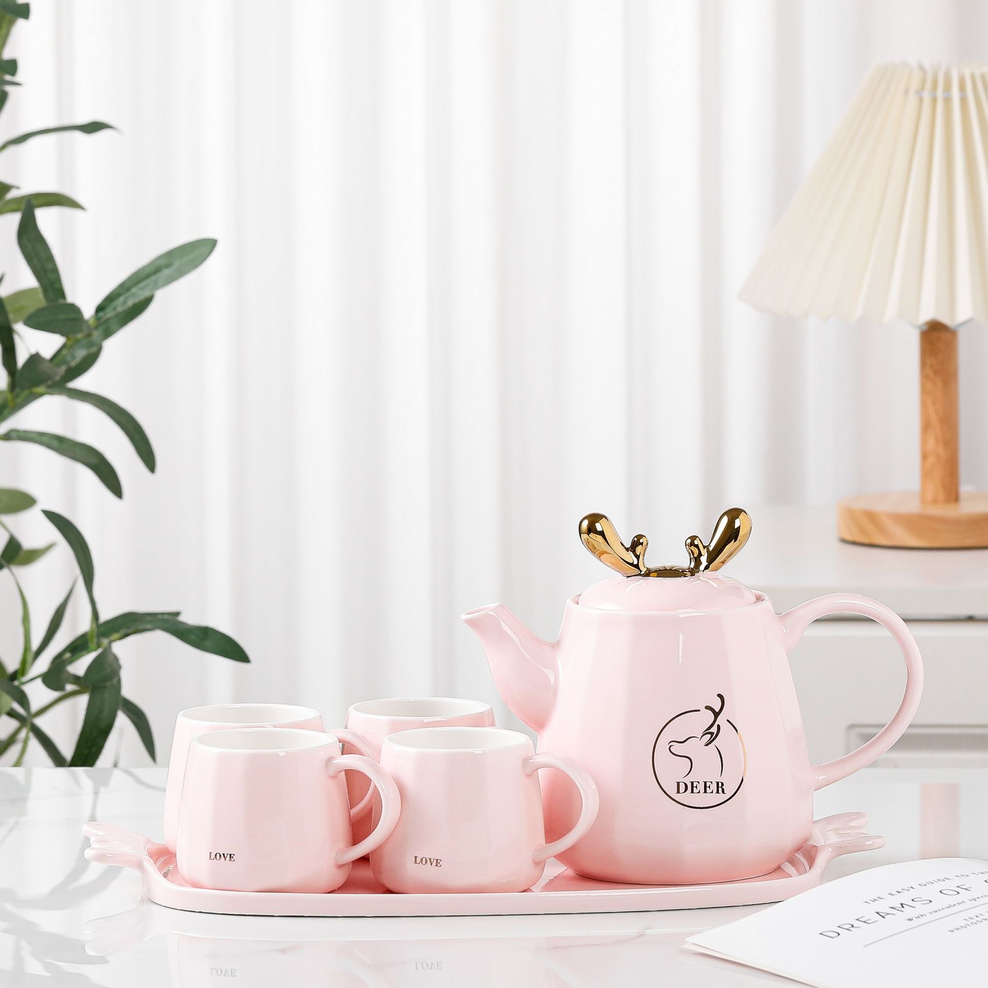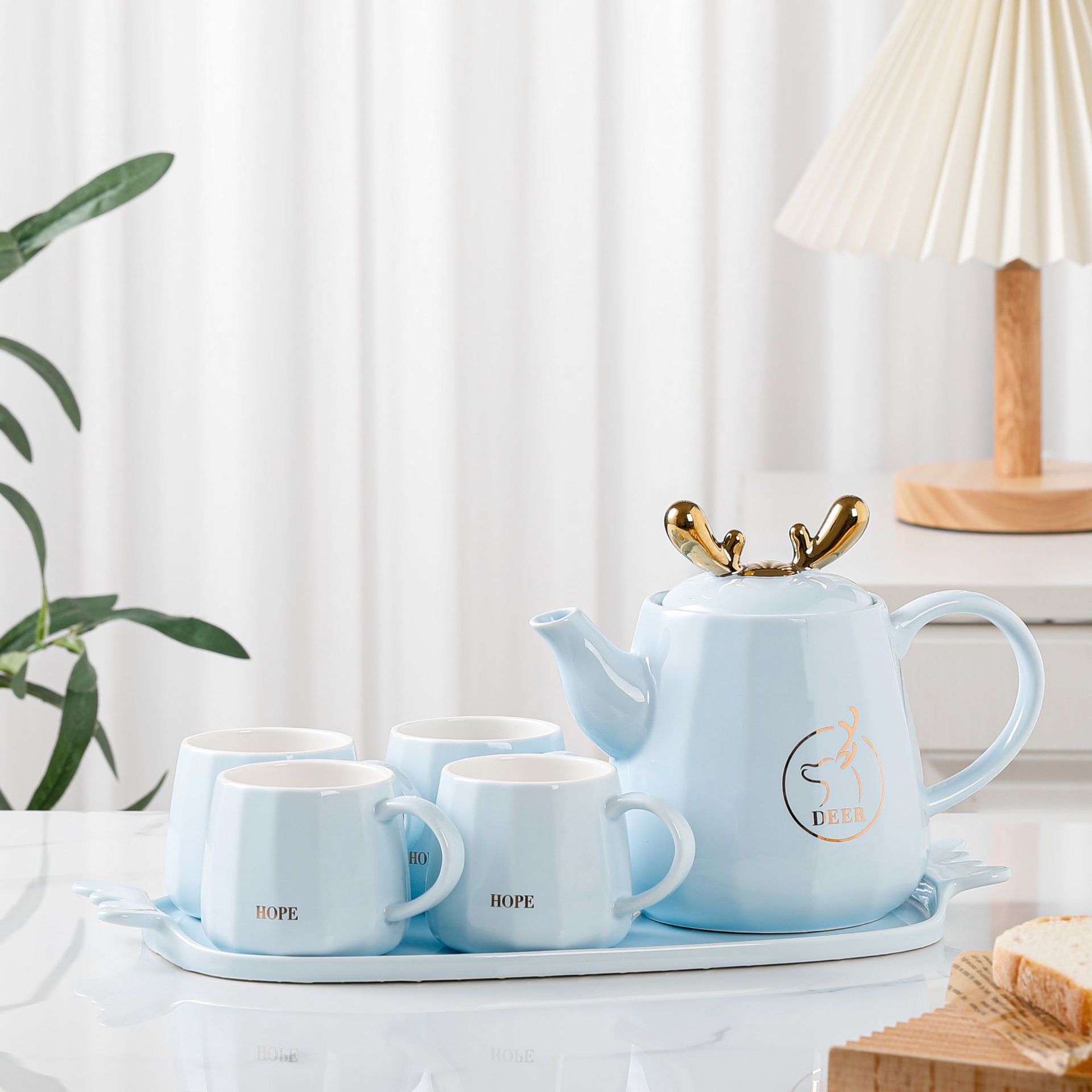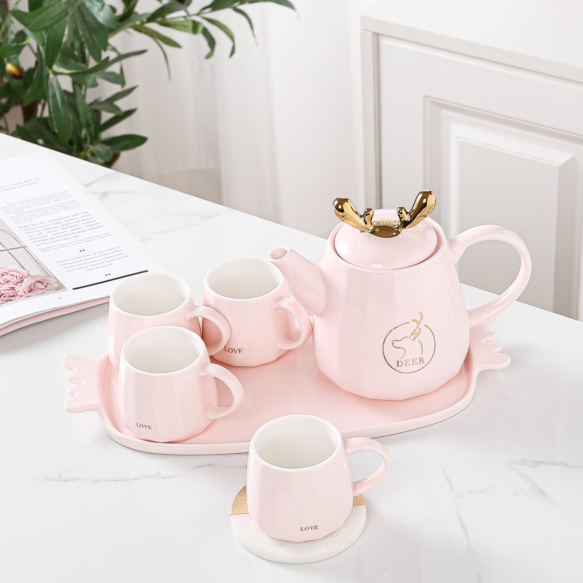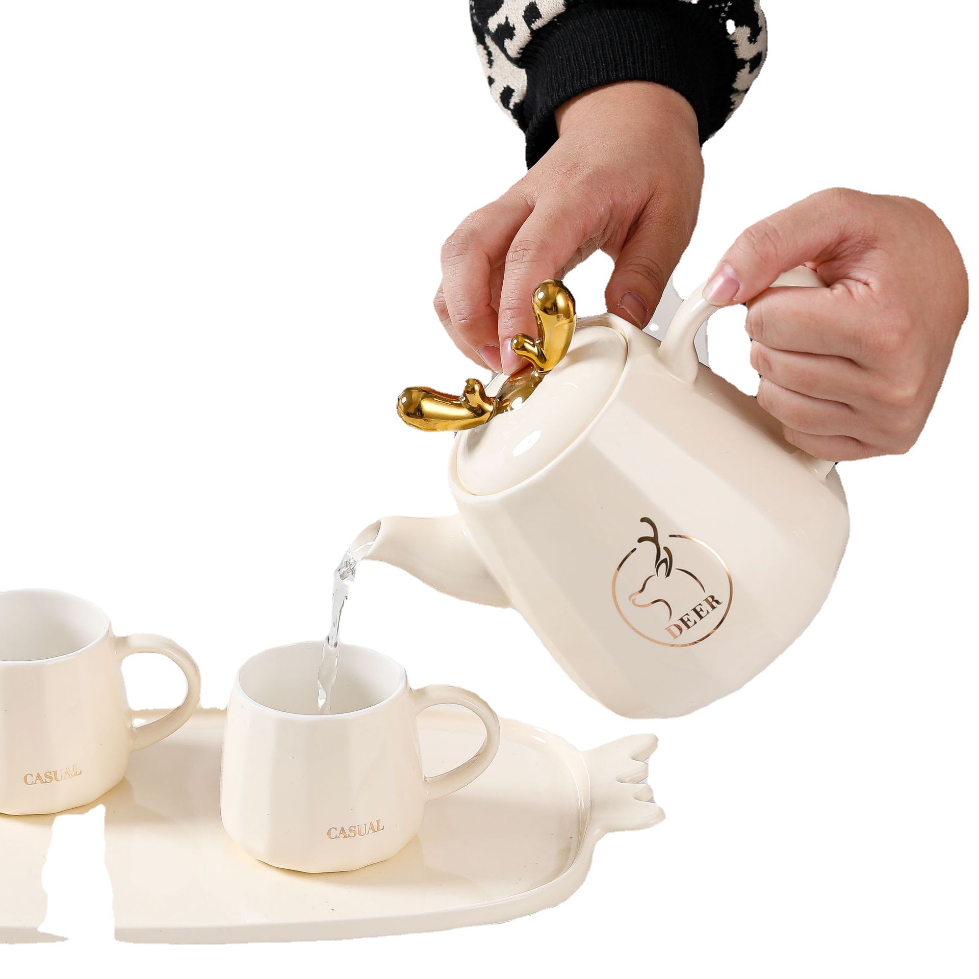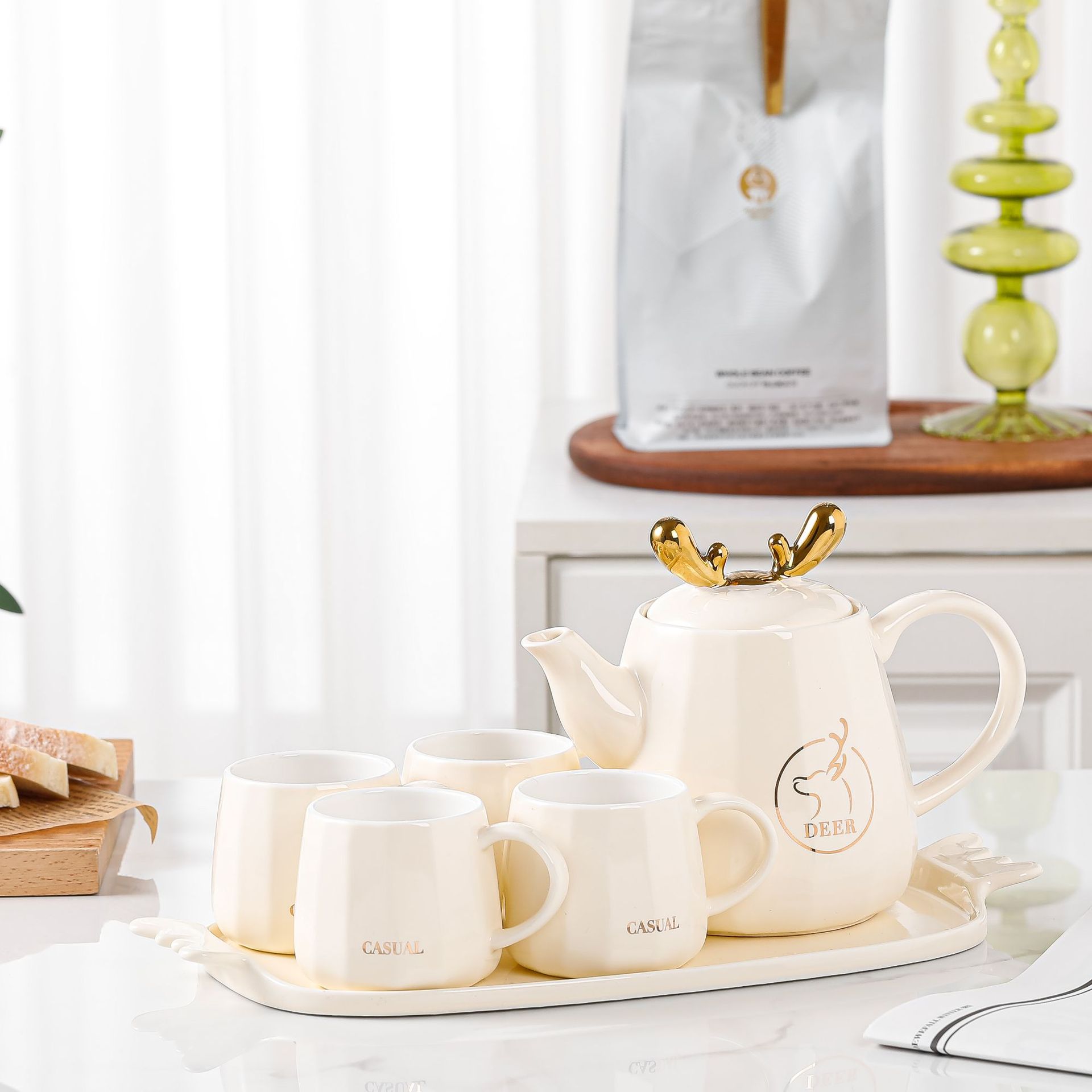 大象水具套装陶瓷泡茶具泡咖啡家用下午茶具耐高温水壶水杯带托盘