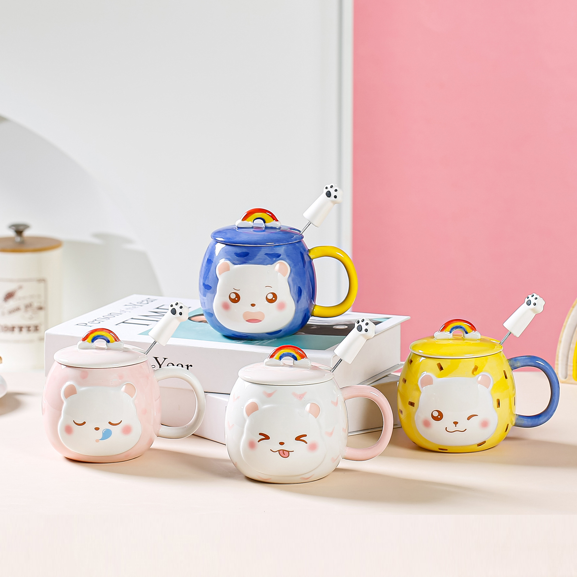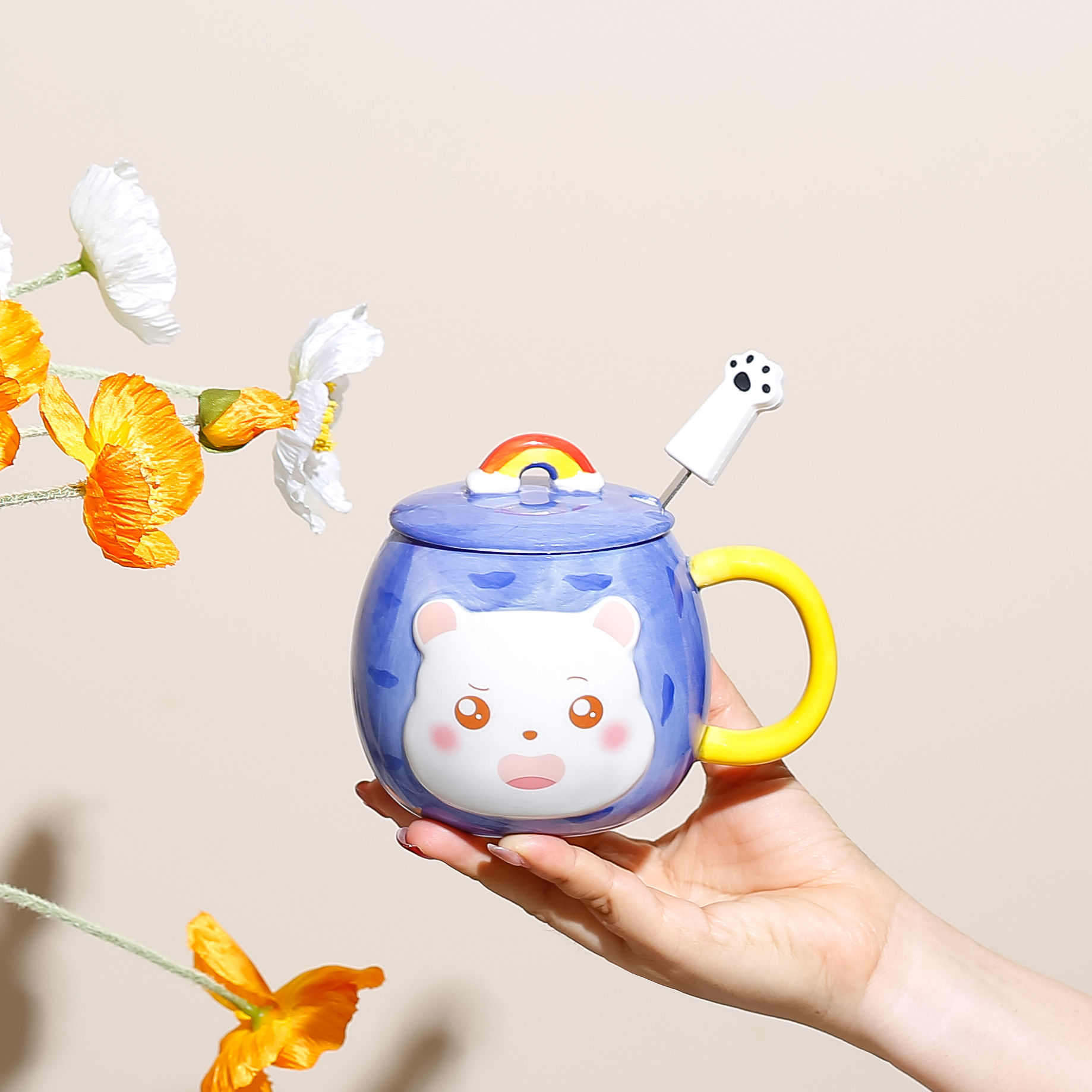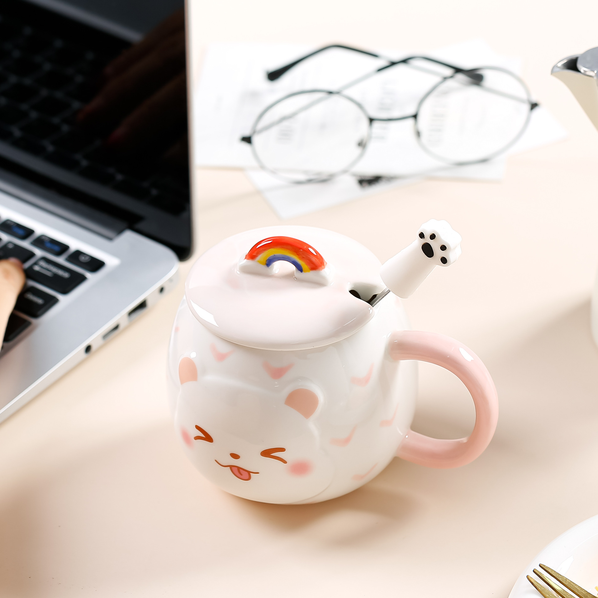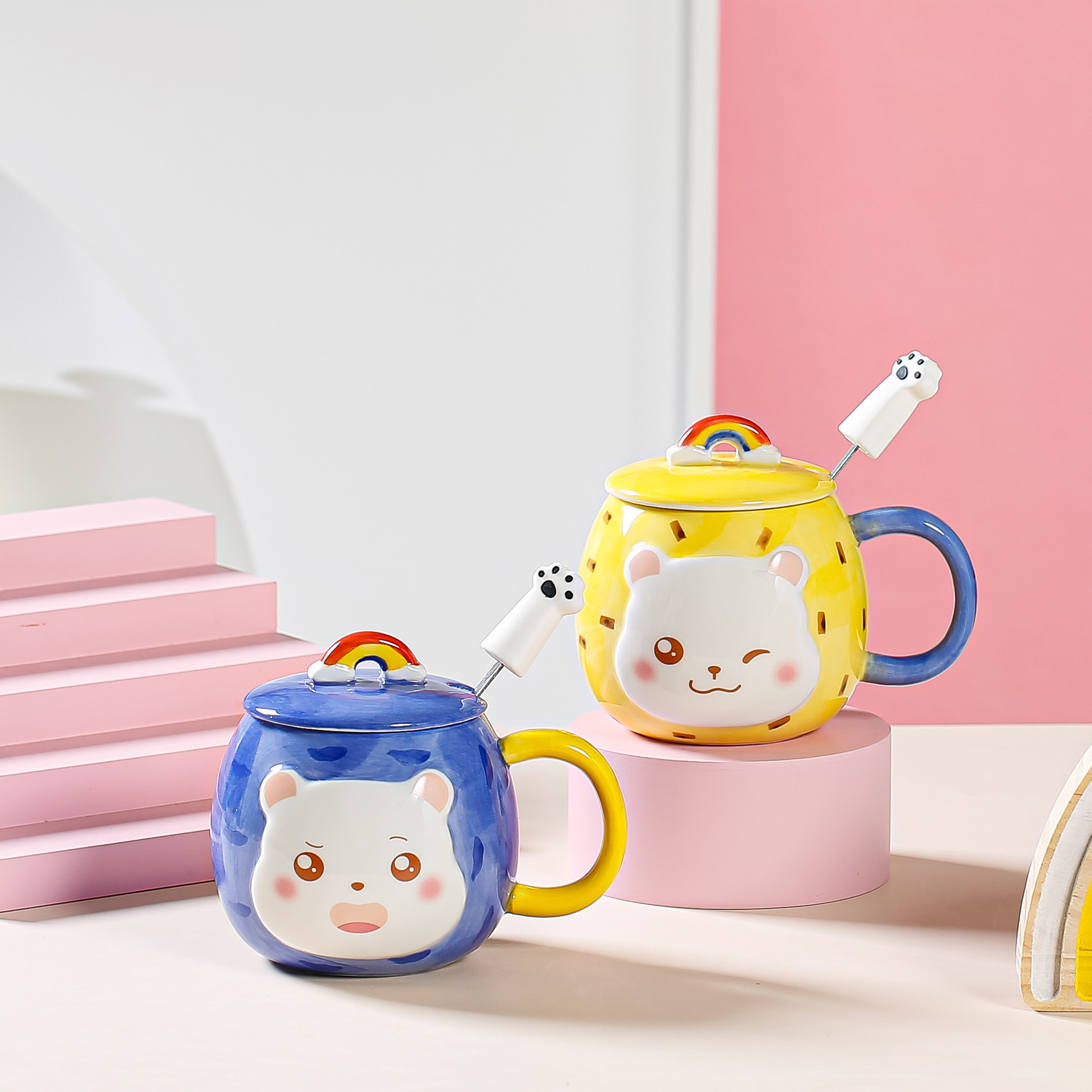 陶瓷马克杯可爱兔子杯家用喝水杯儿童水杯创意卡通陶瓷杯带盖批发