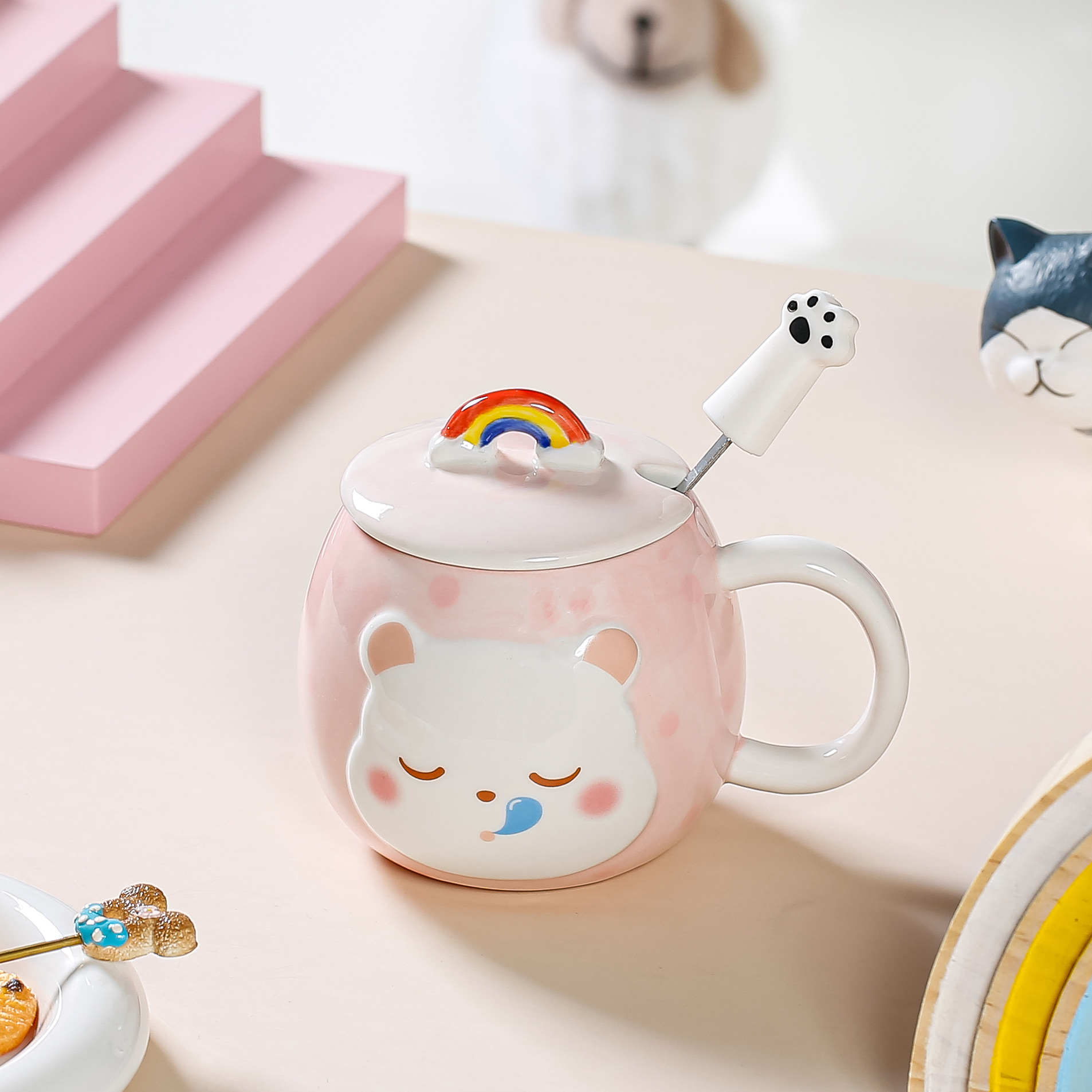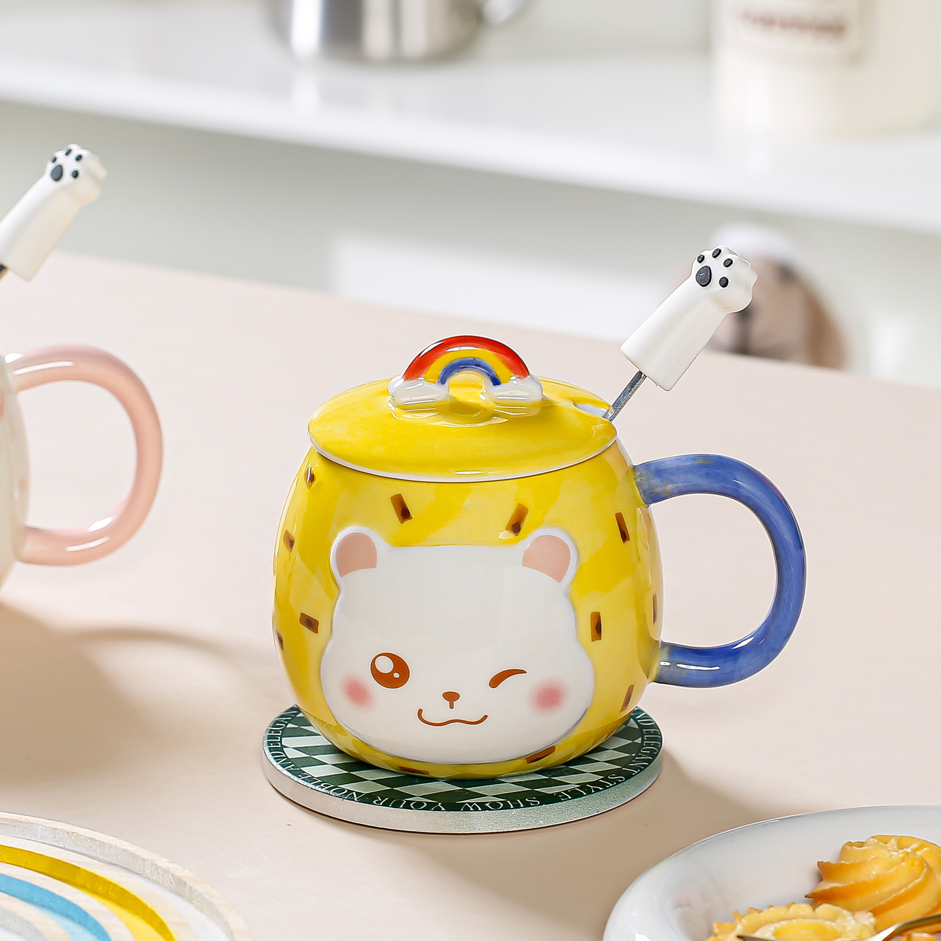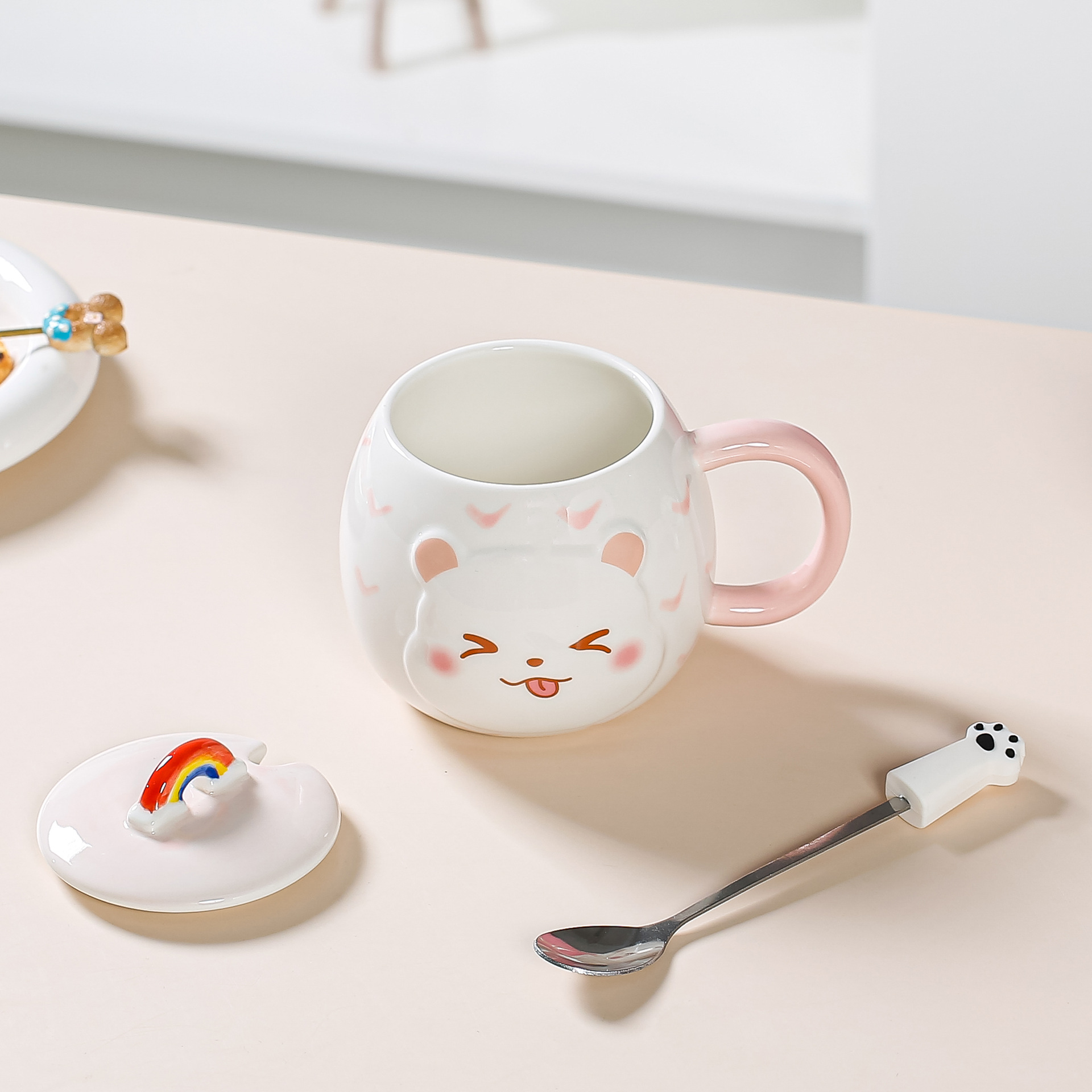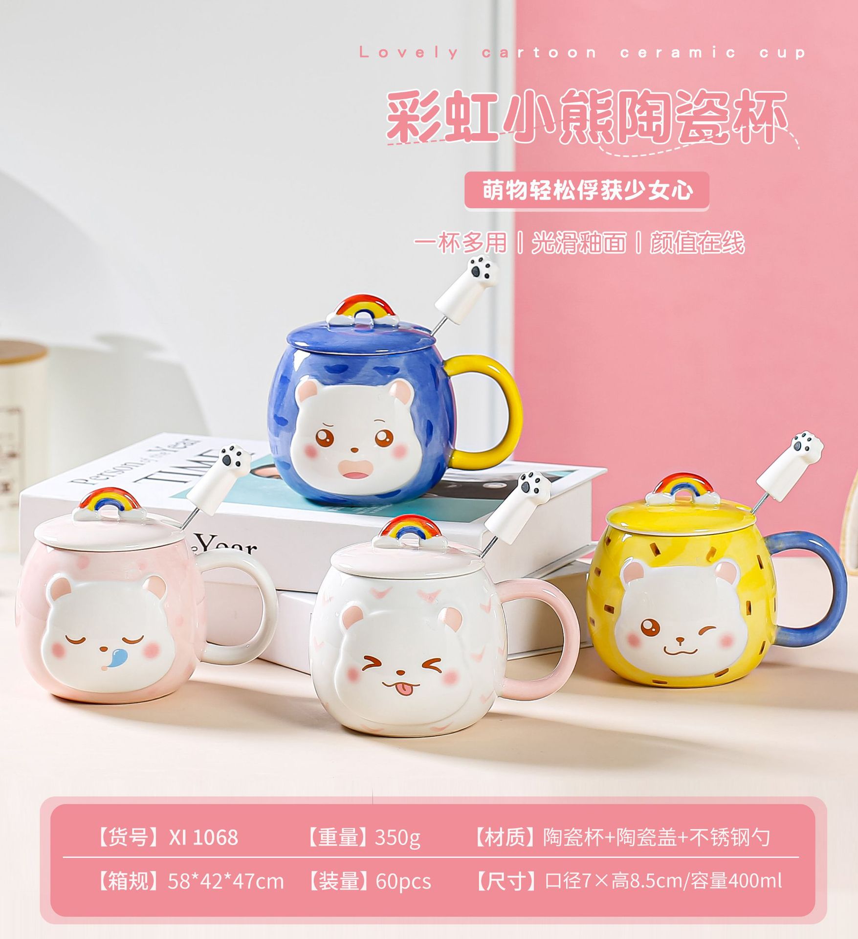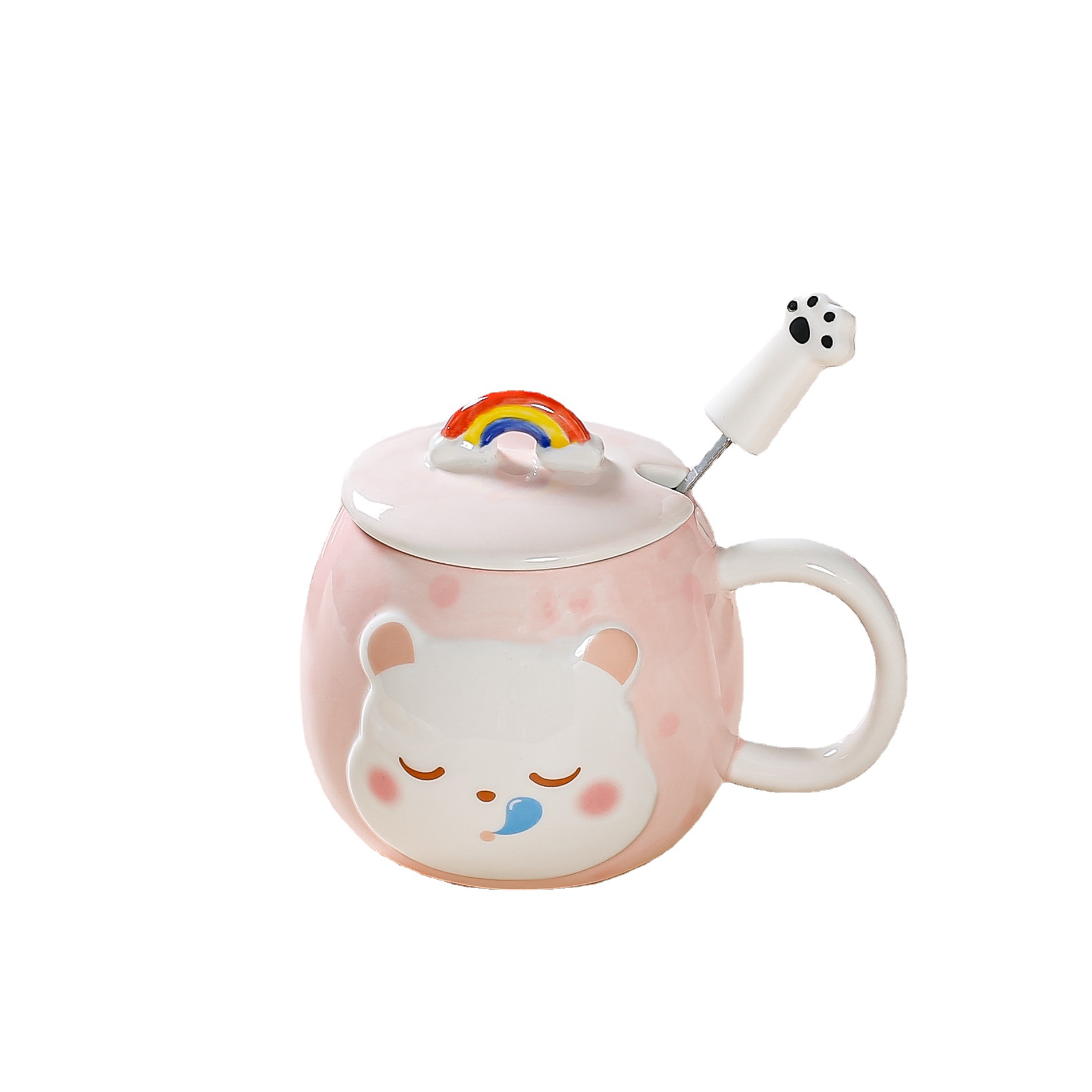 陶瓷马克杯可爱兔子杯家用喝水杯儿童水杯创意卡通陶瓷杯带盖批发