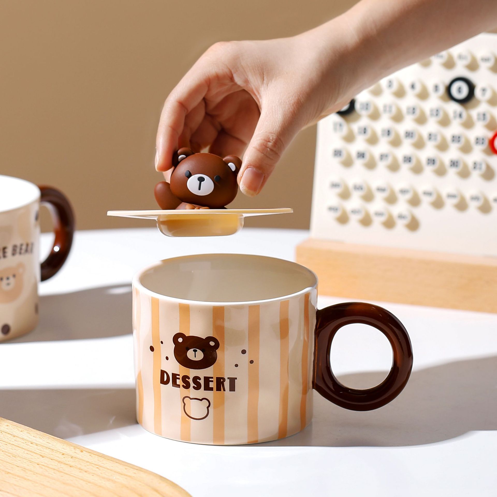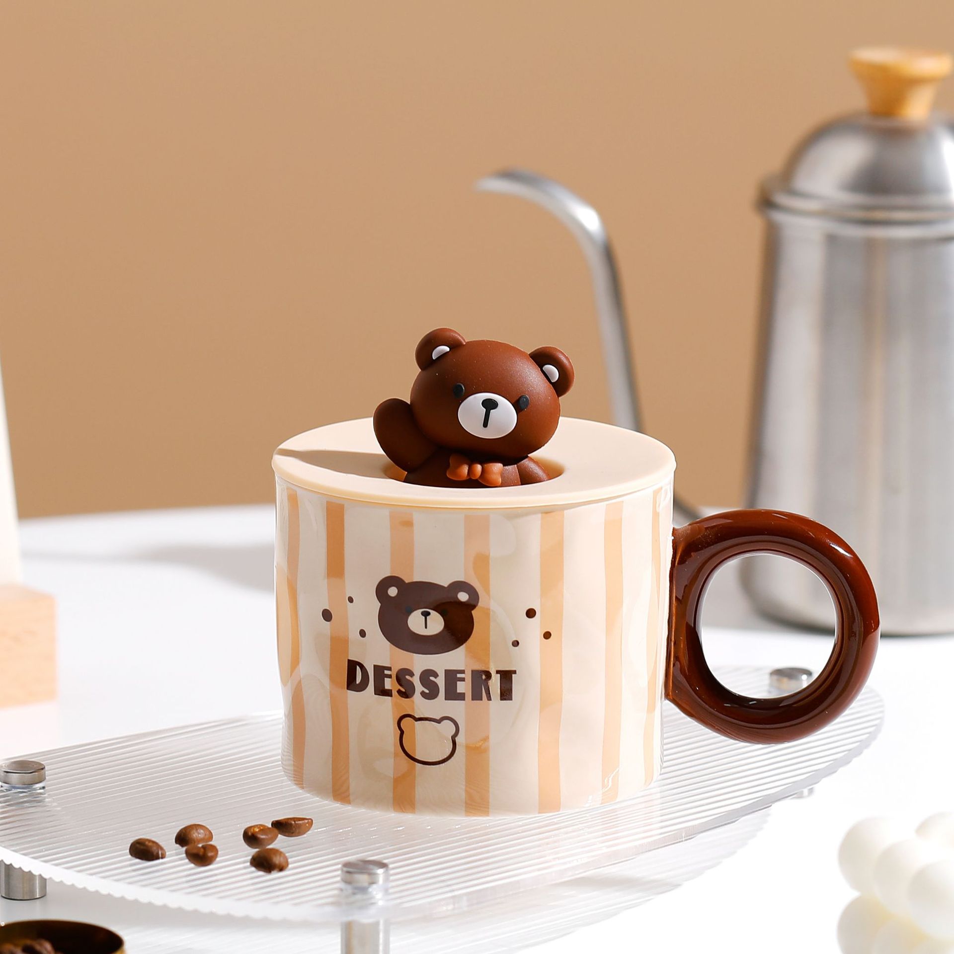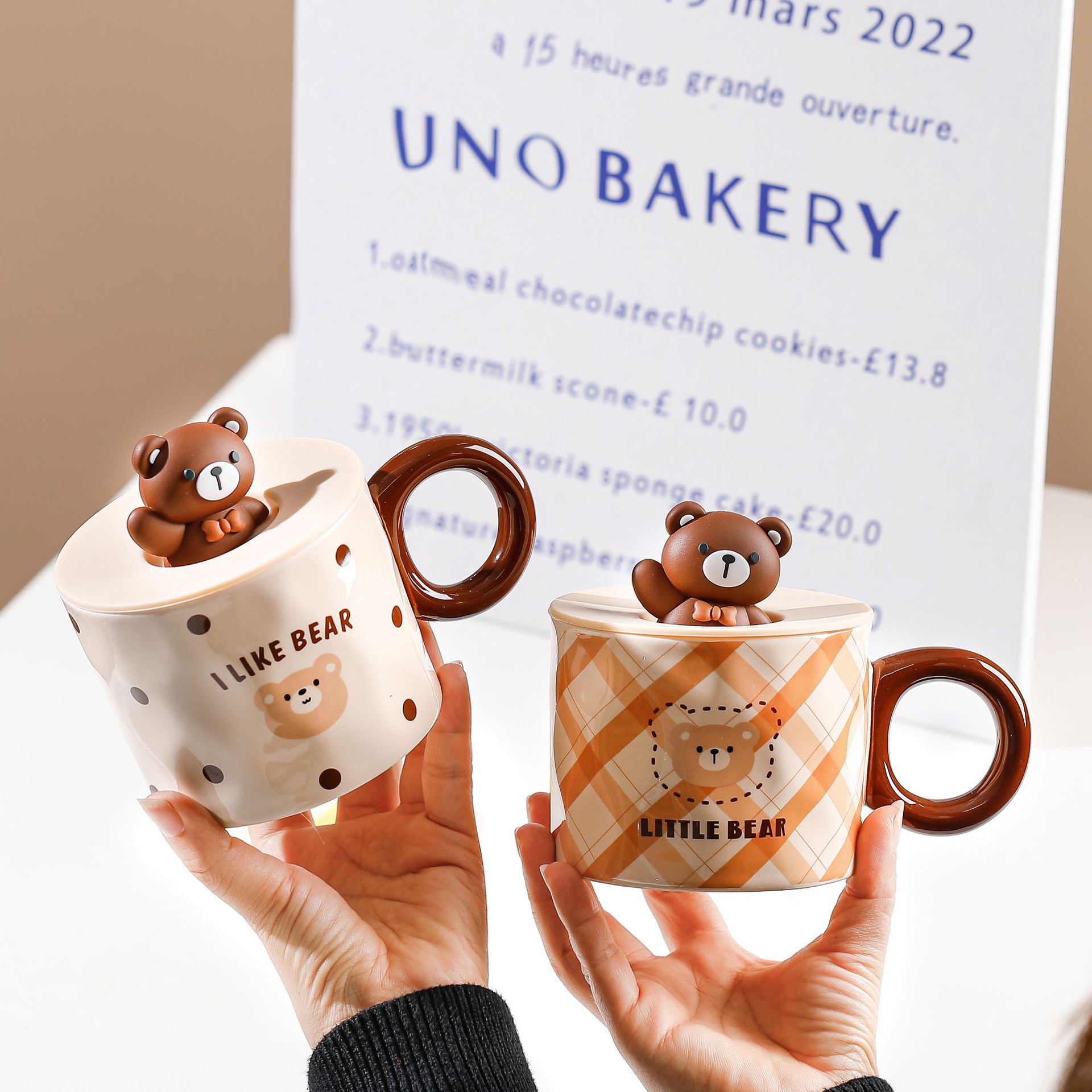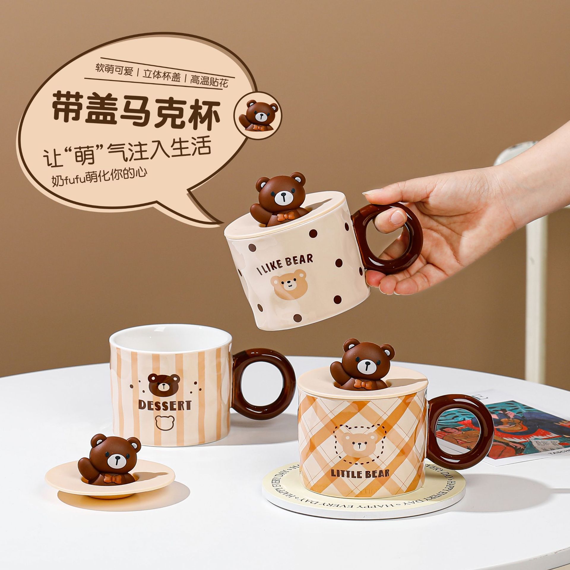 创意ins可爱卡通小熊马克杯立体卧熊盖子个性陶瓷杯早餐圣诞礼物