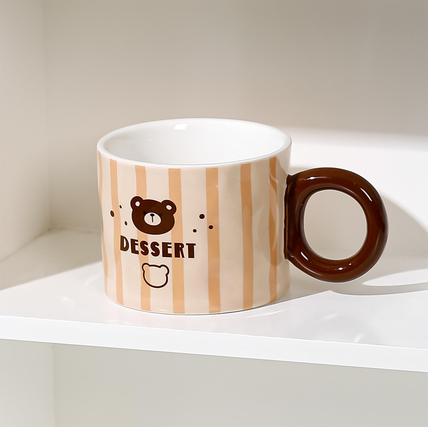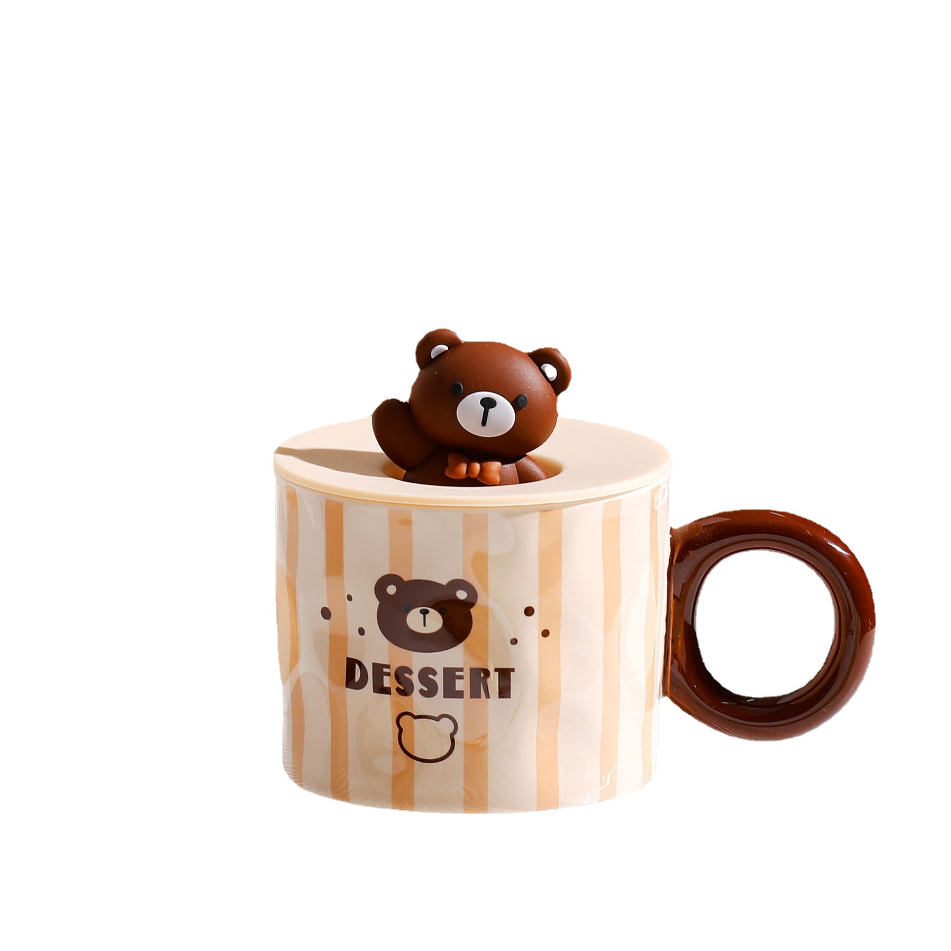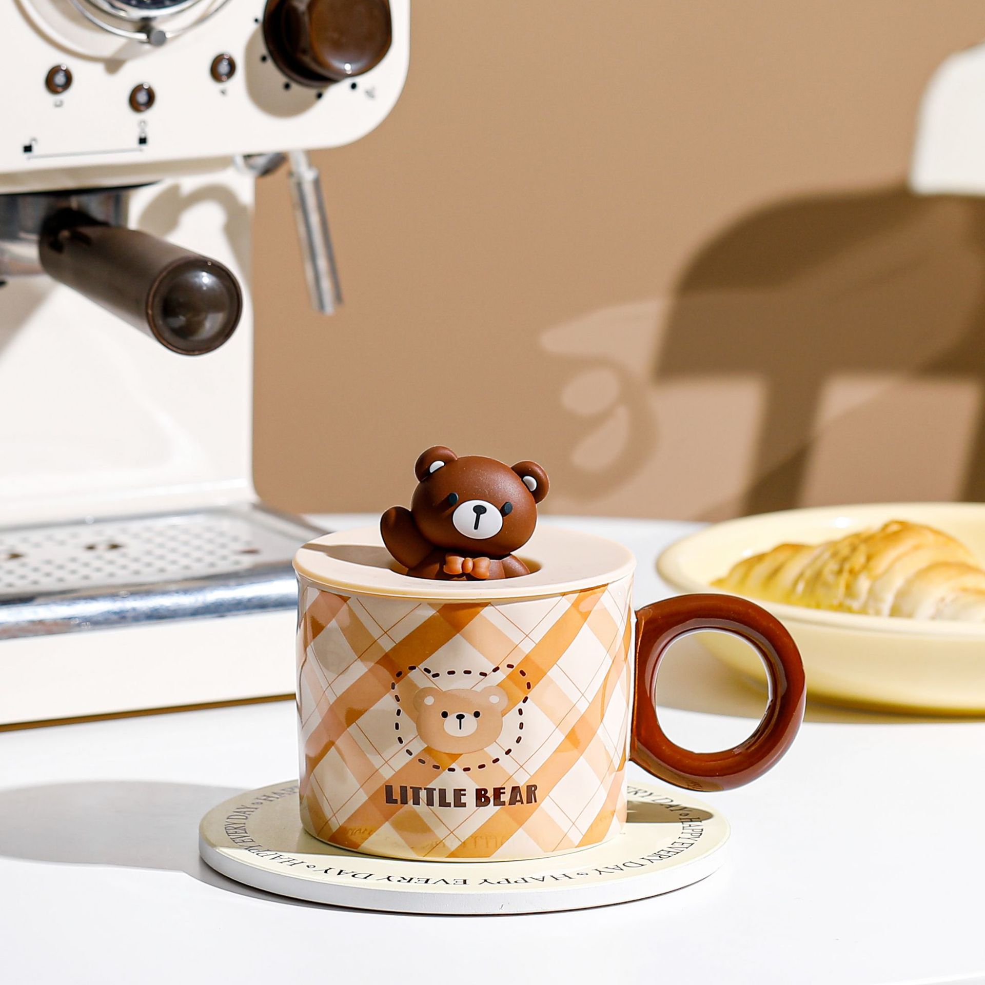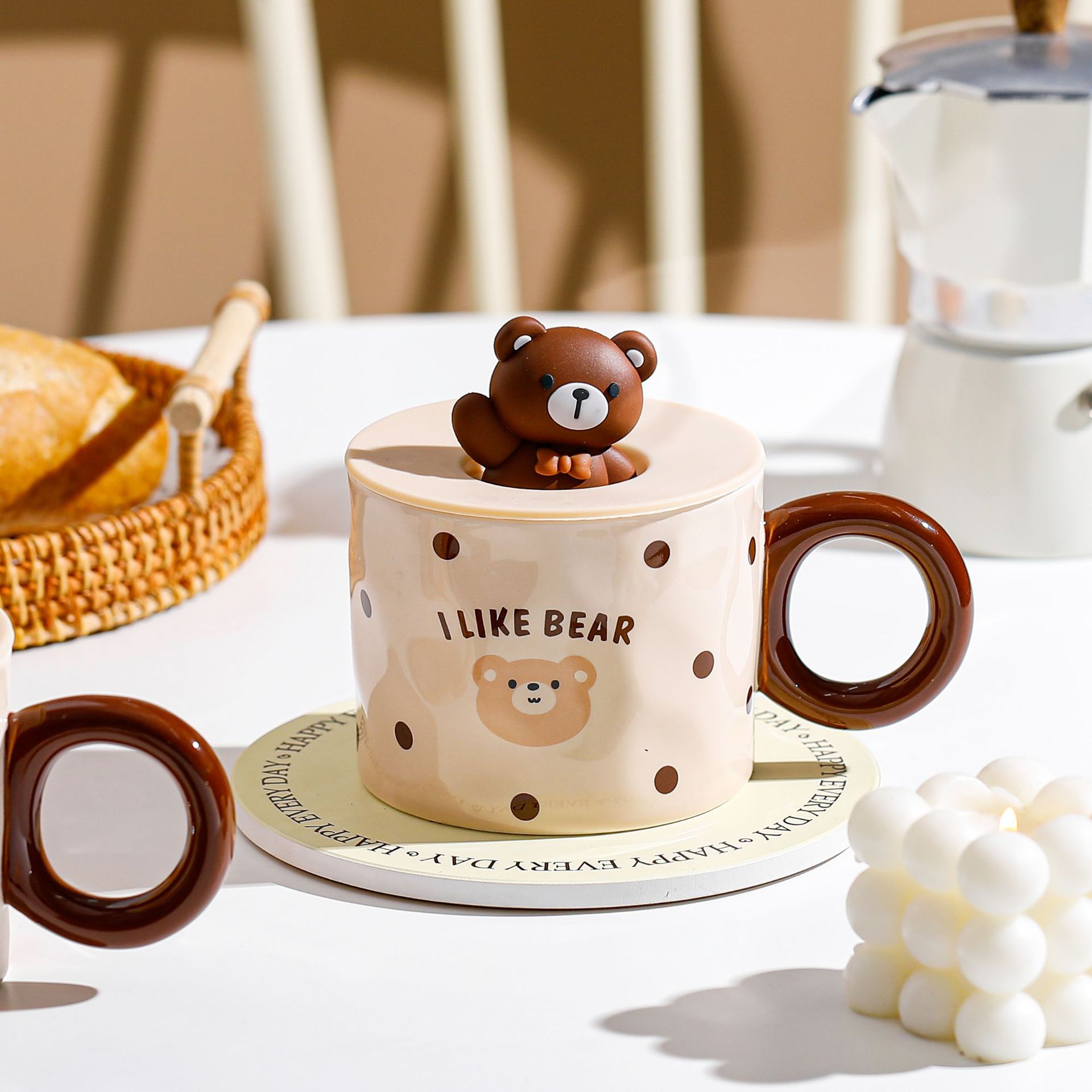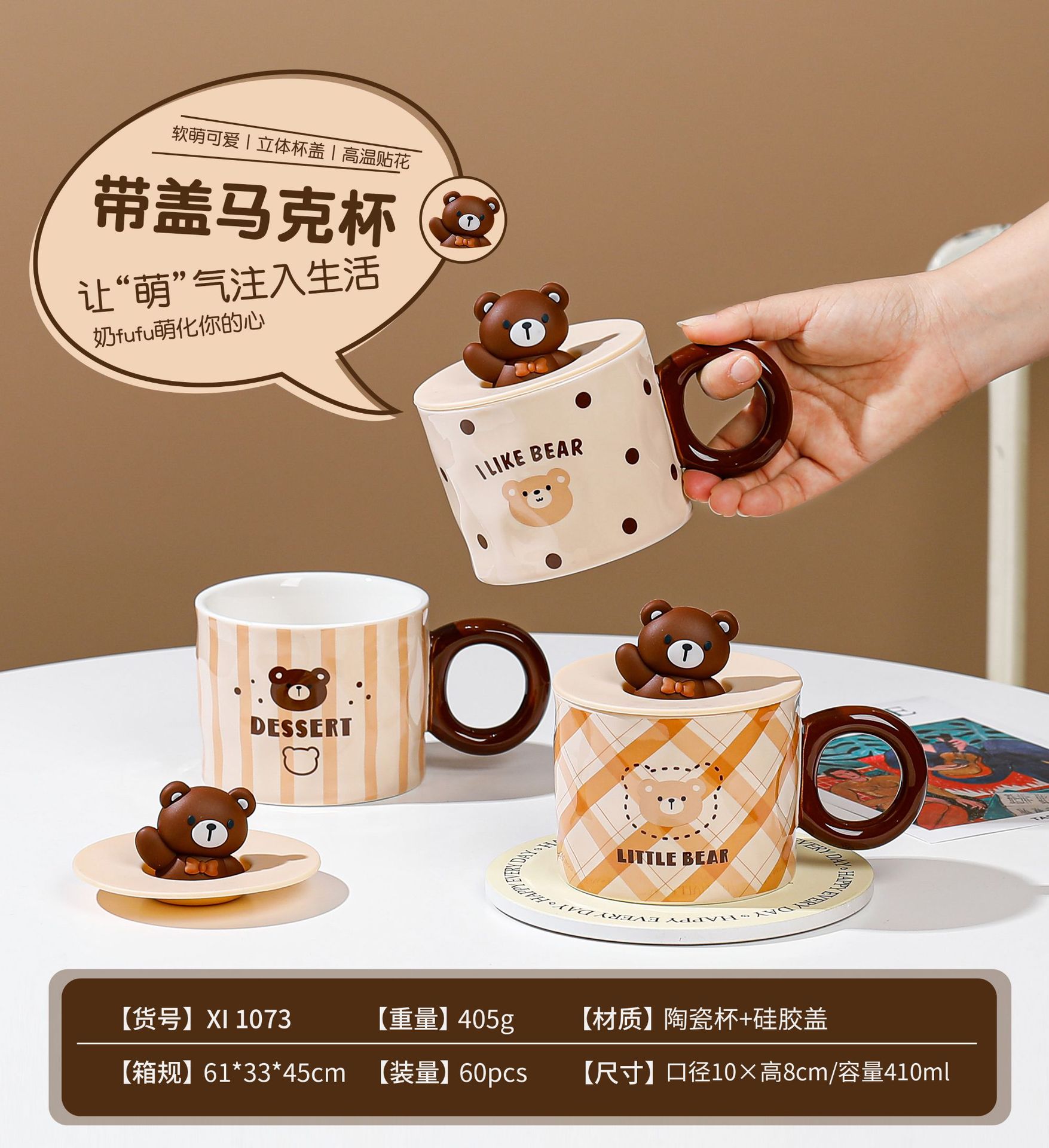 创意ins可爱卡通小熊马克杯立体卧熊盖子个性陶瓷杯早餐圣诞礼物