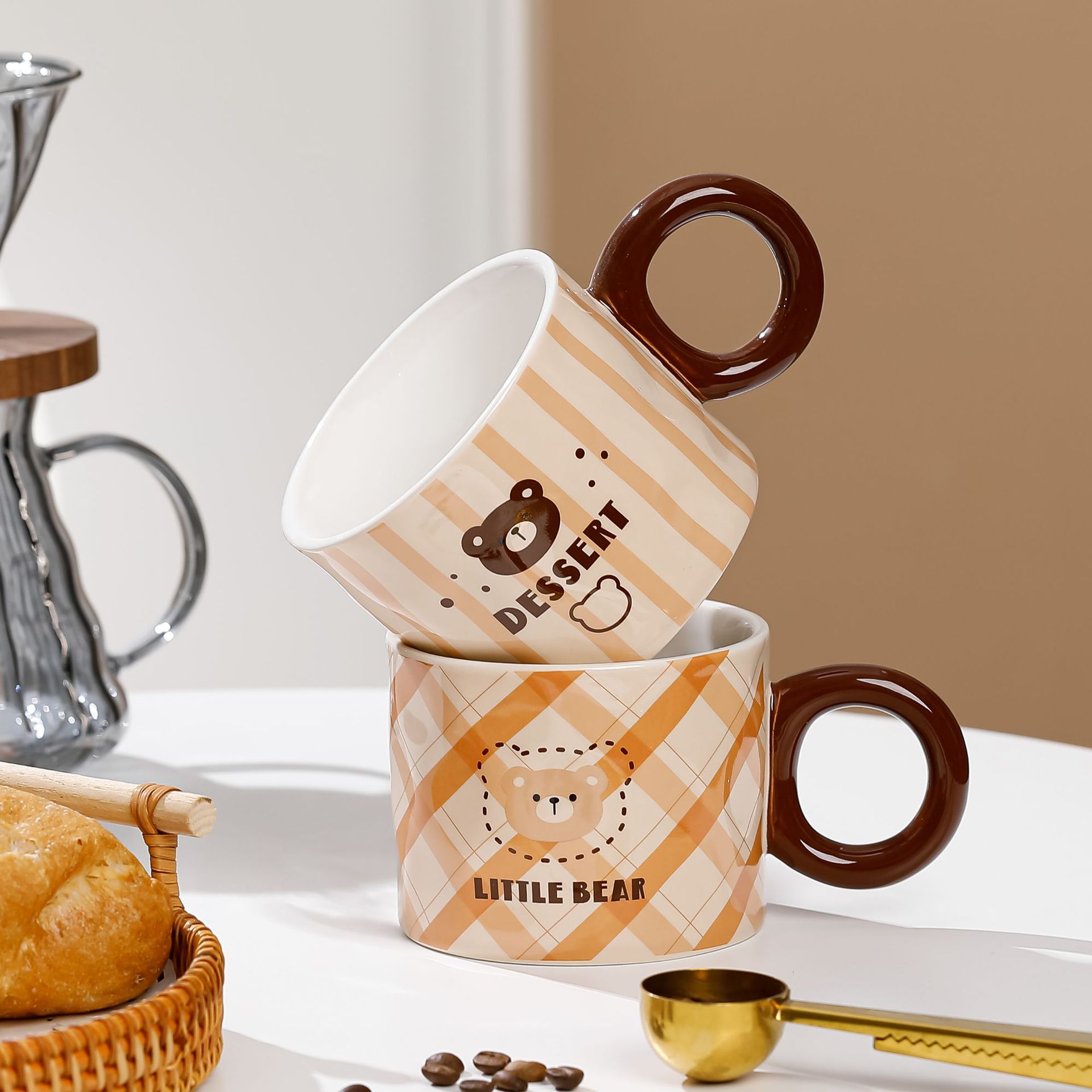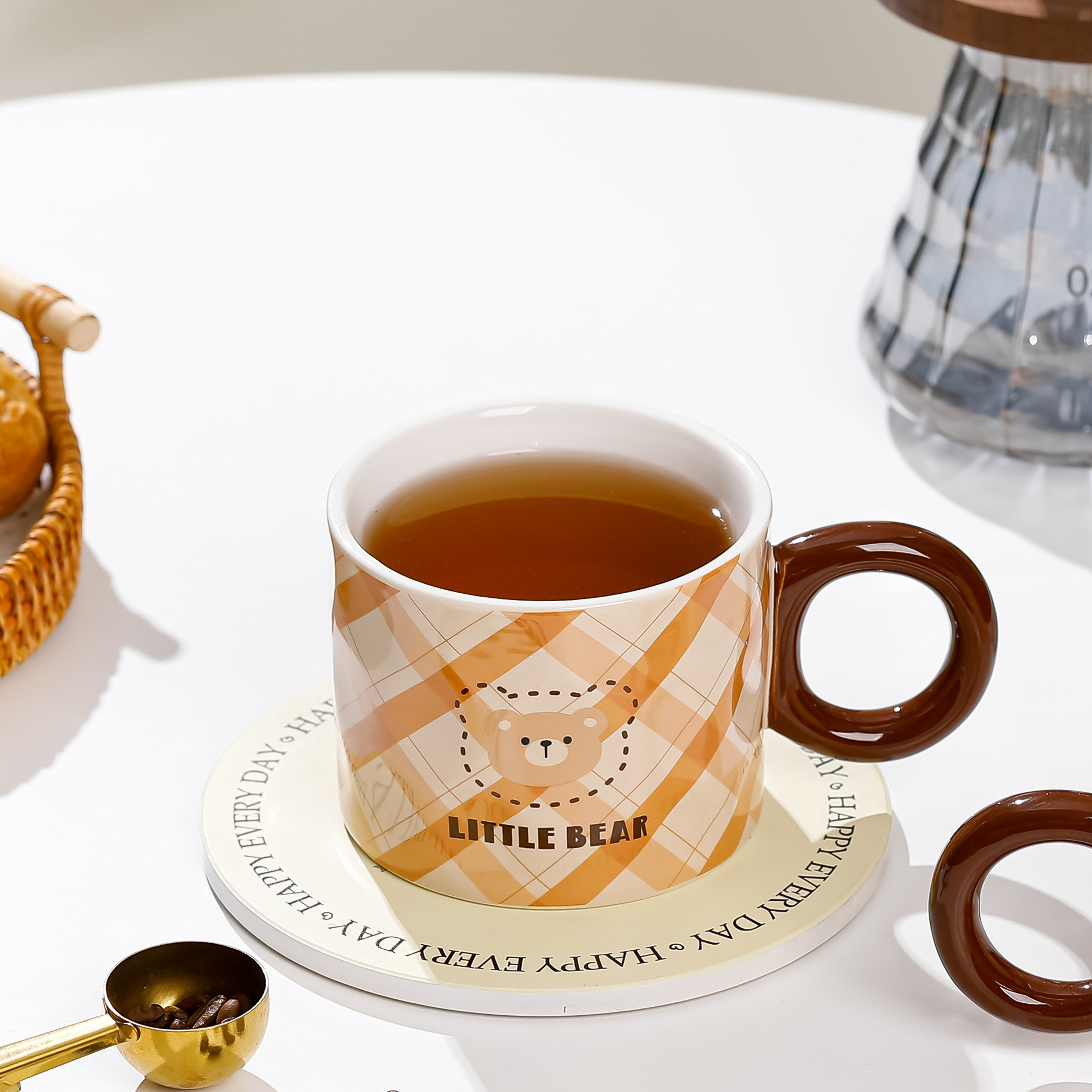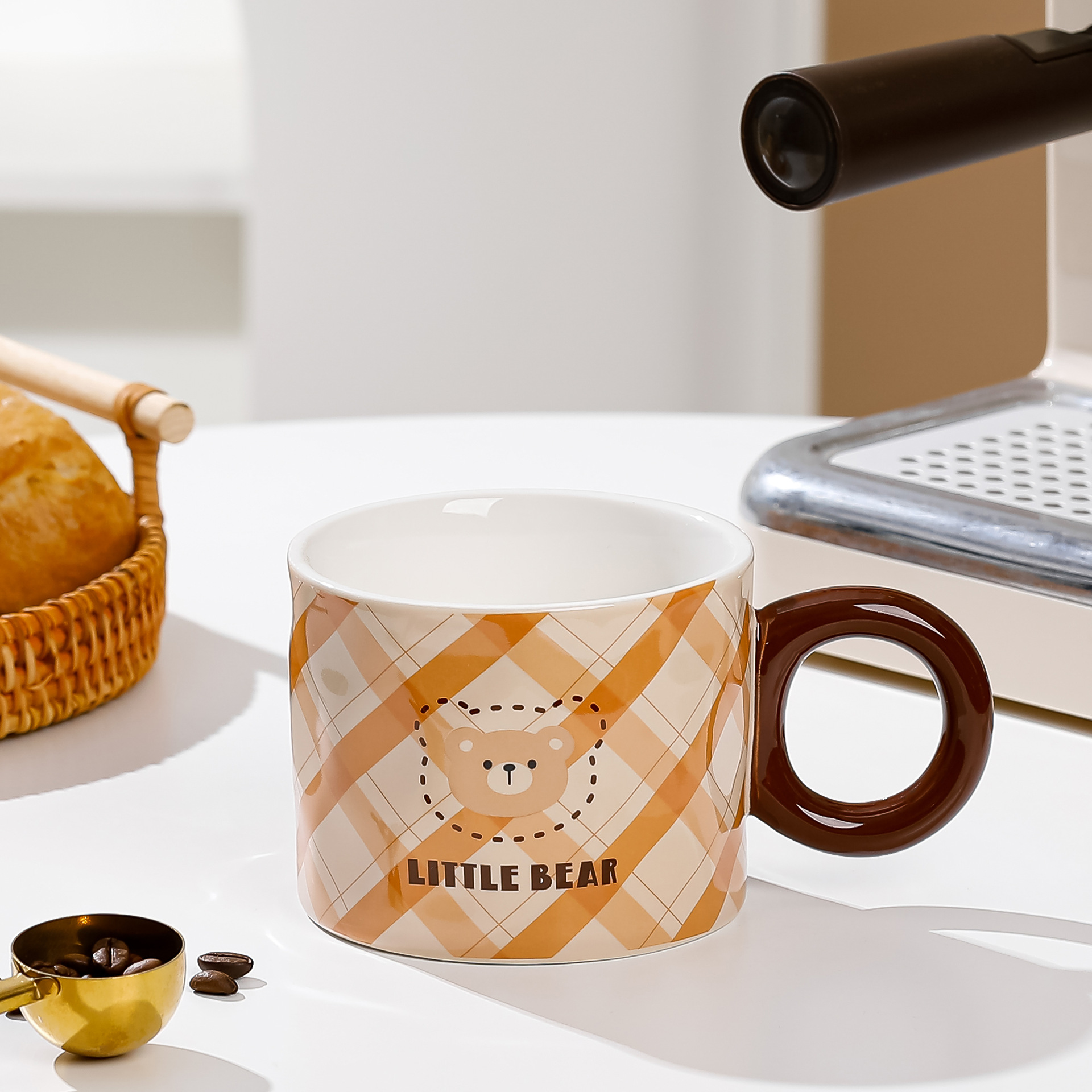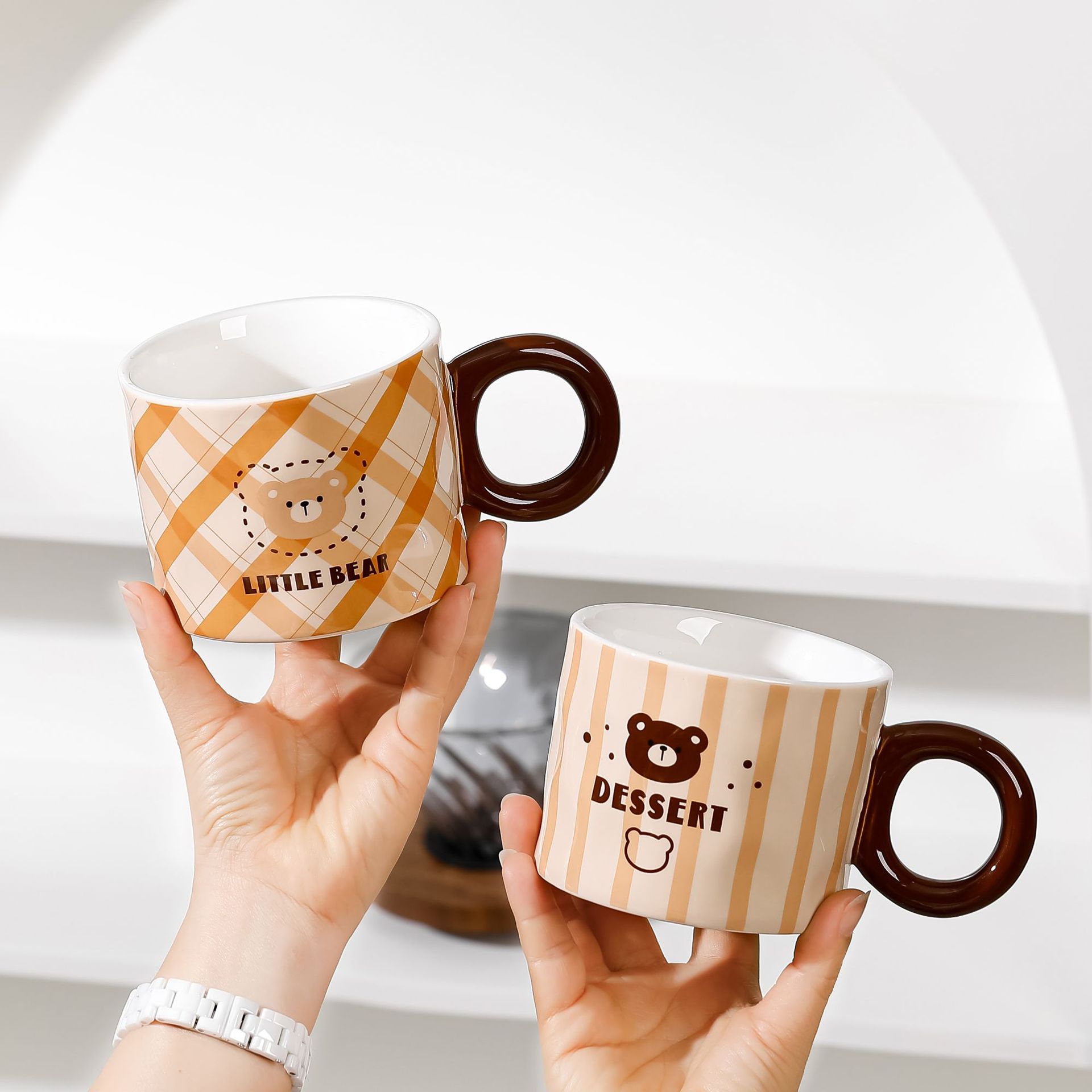 创意ins可爱卡通小熊马克杯立体卧熊盖子个性陶瓷杯早餐圣诞礼物