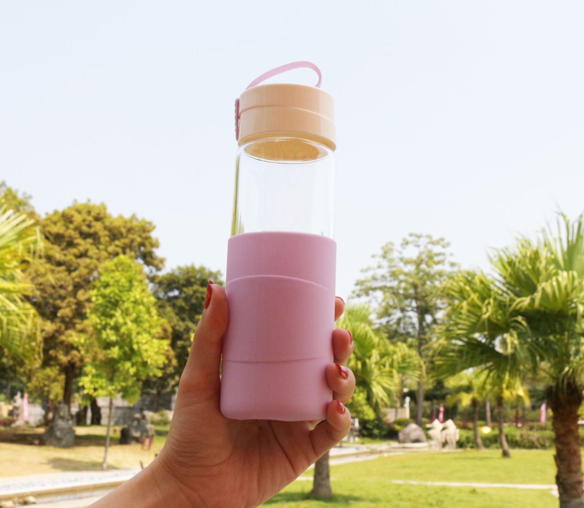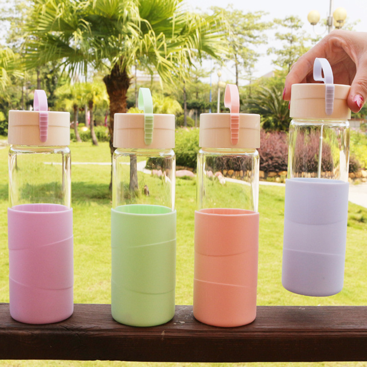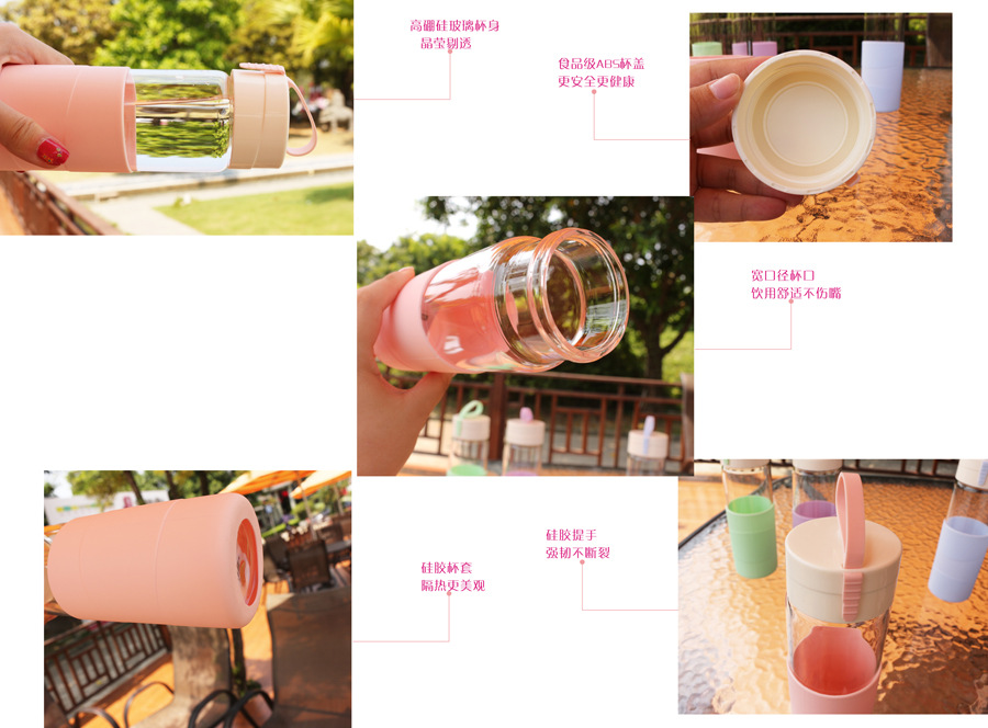 时尚创意木纹盖高硼硅玻璃杯简约男女办公室水杯户外礼品杯可批发