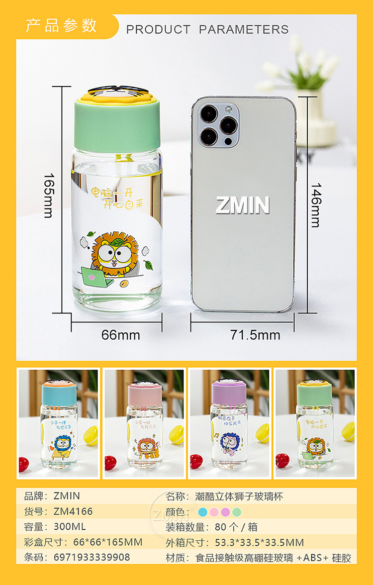 跨境硅胶隔热玻璃杯随行车载高硼硅玻璃杯子男女学生牛奶早餐水杯