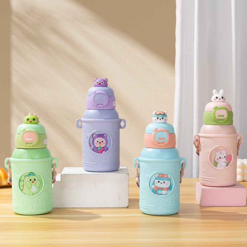 500ML卡通多多熊兔子保温杯304不锈钢一杯两盖水杯