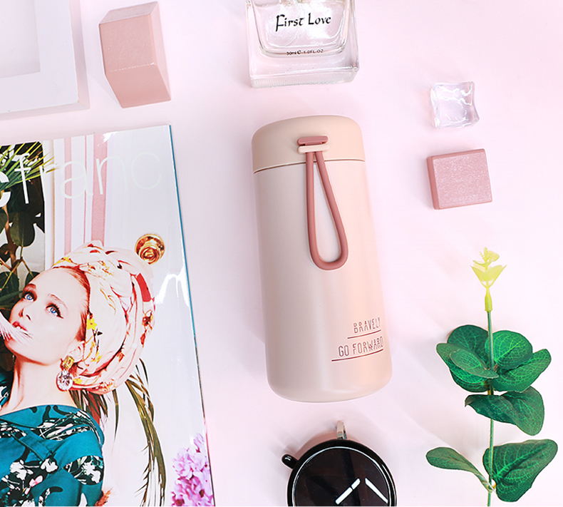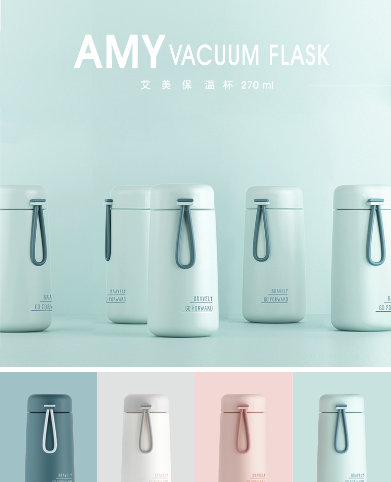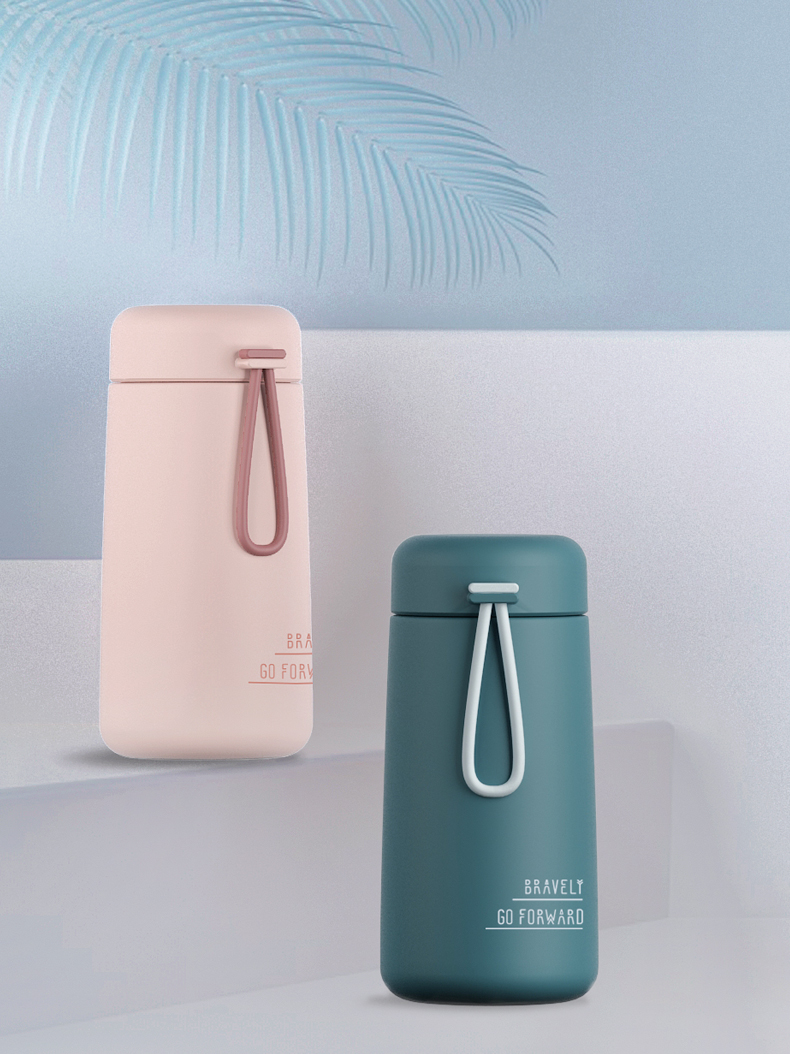 420ML真空保温杯简约纯色304不锈钢便携提手杯子