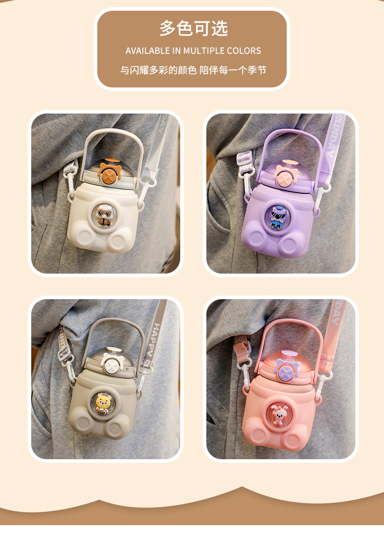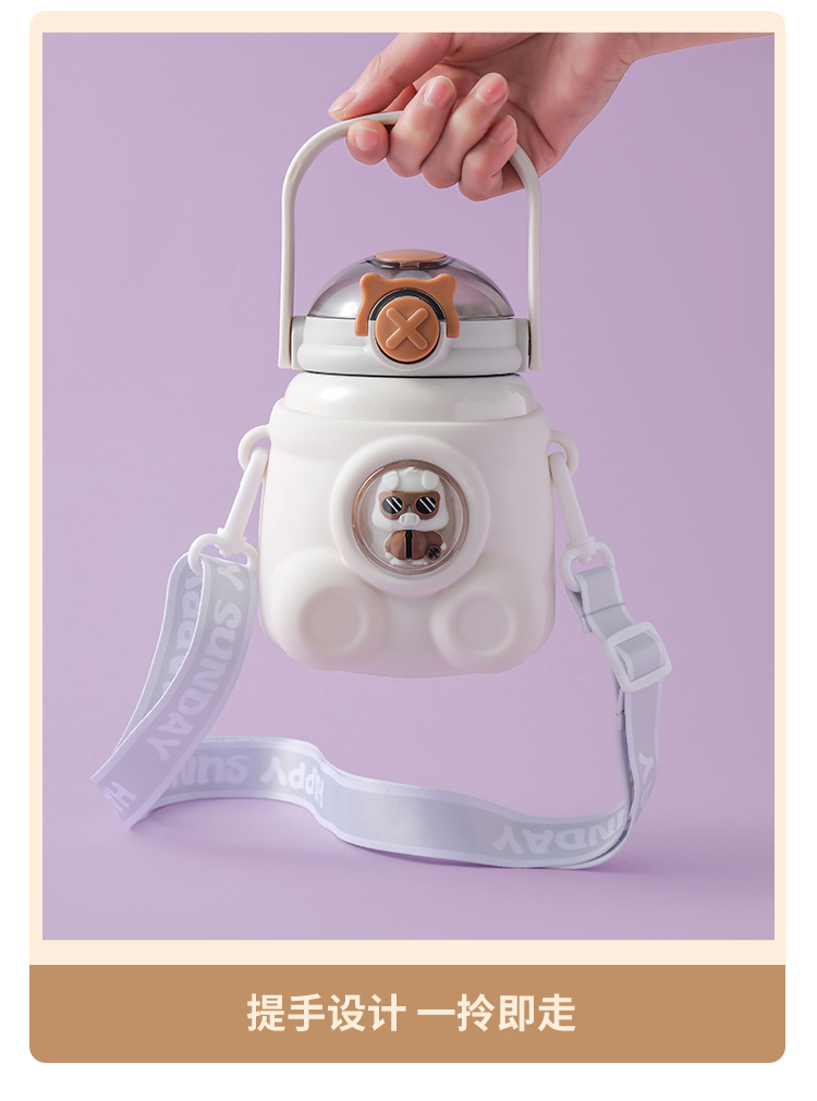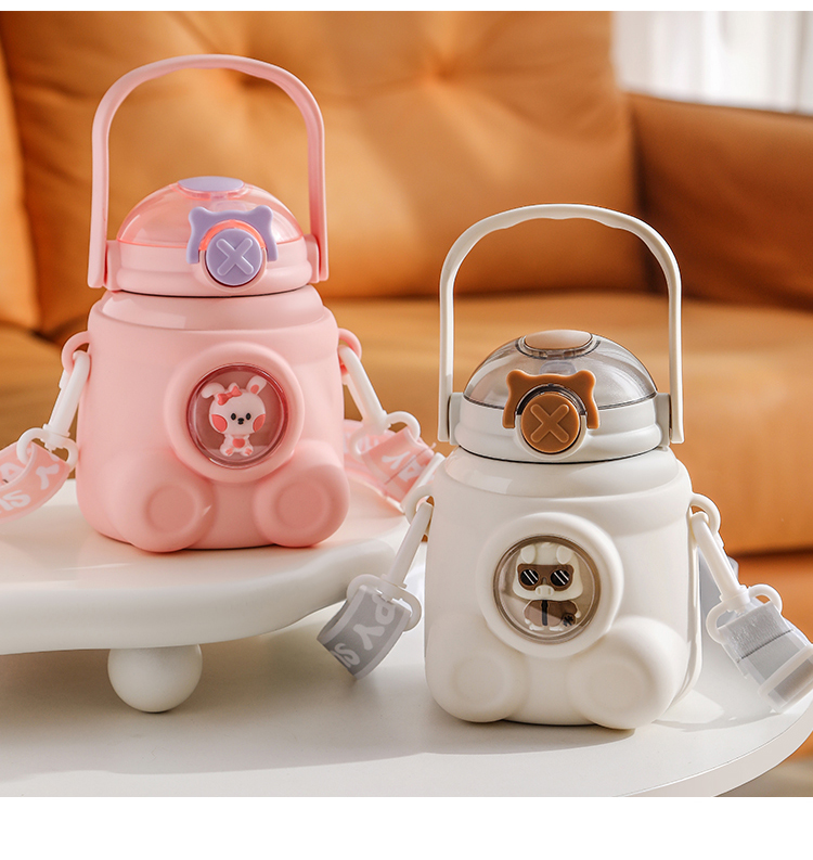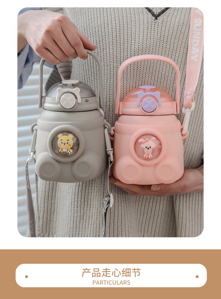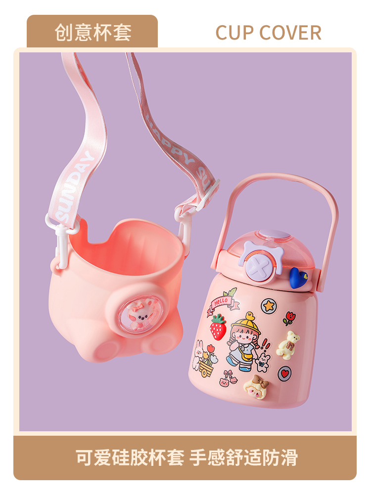 600ML大容量多功能背带水壶可爱斜跨少女心保温杯