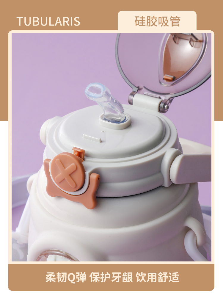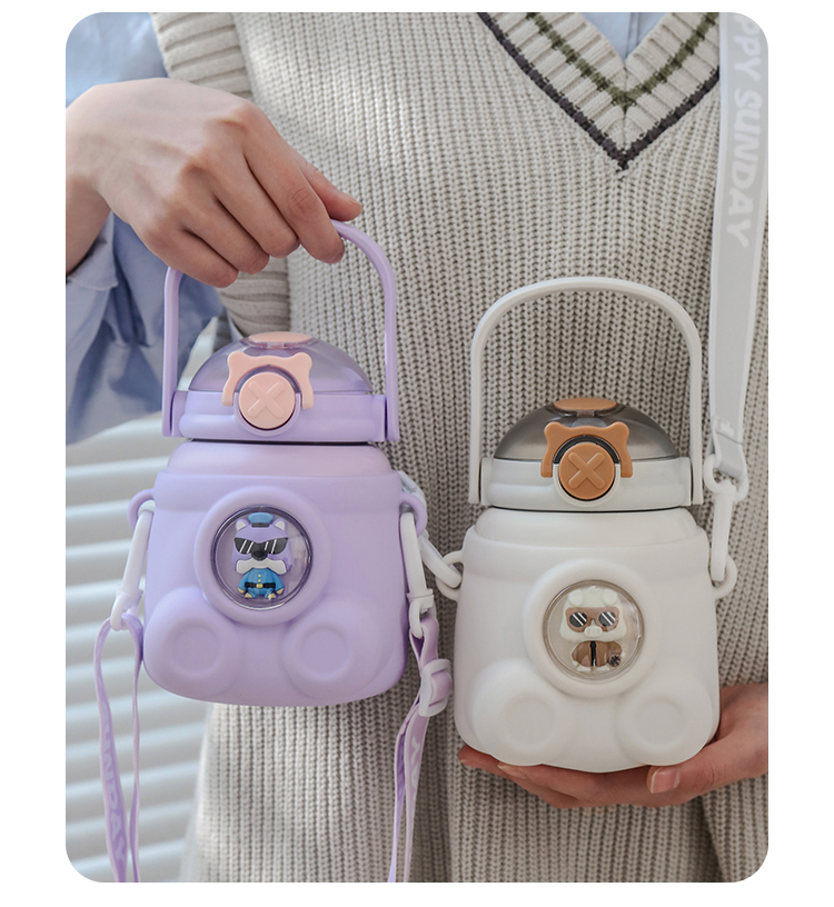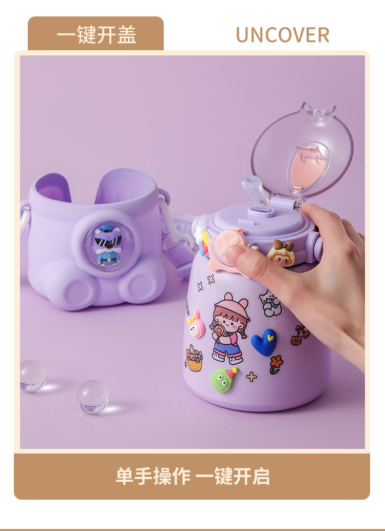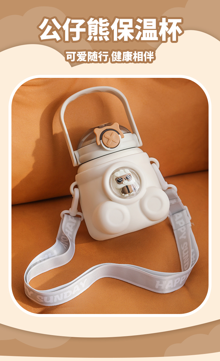 600ML大容量多功能背带水壶可爱斜跨少女心保温杯