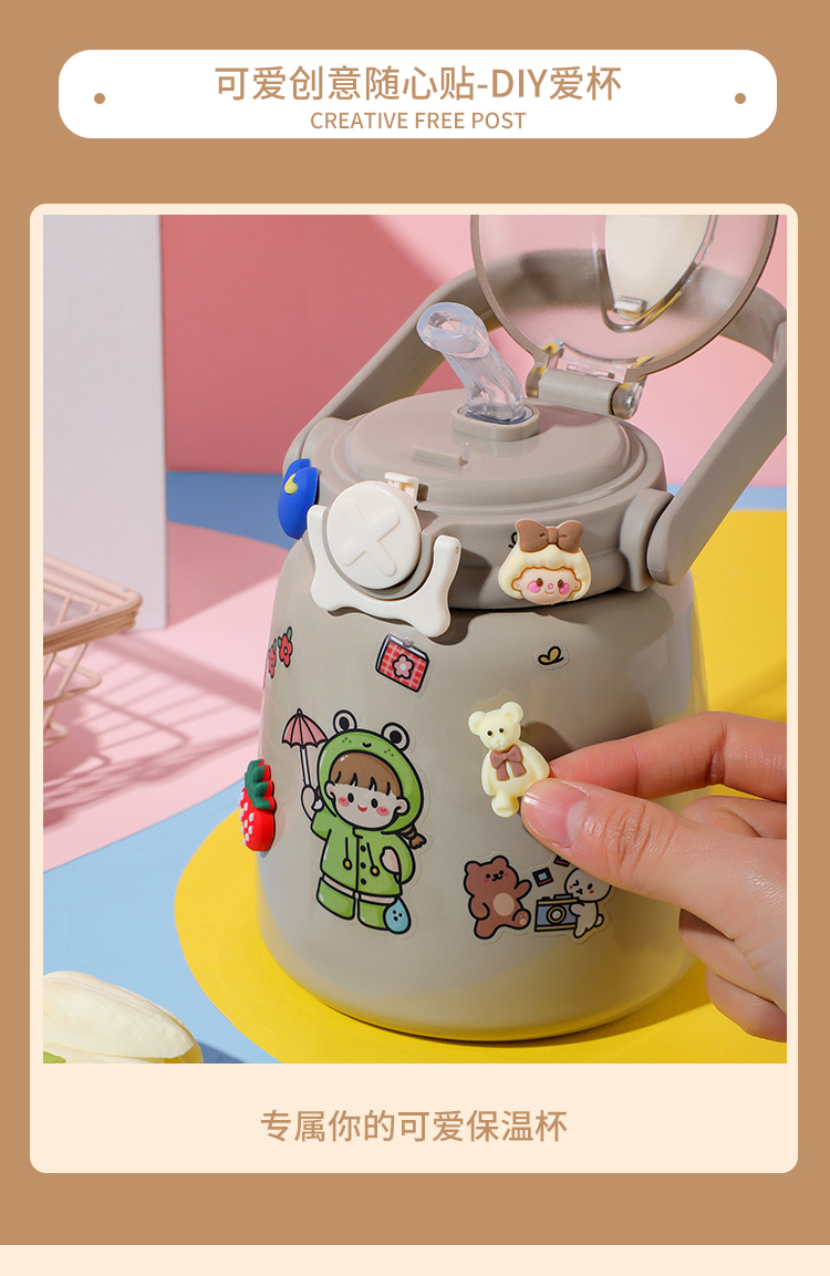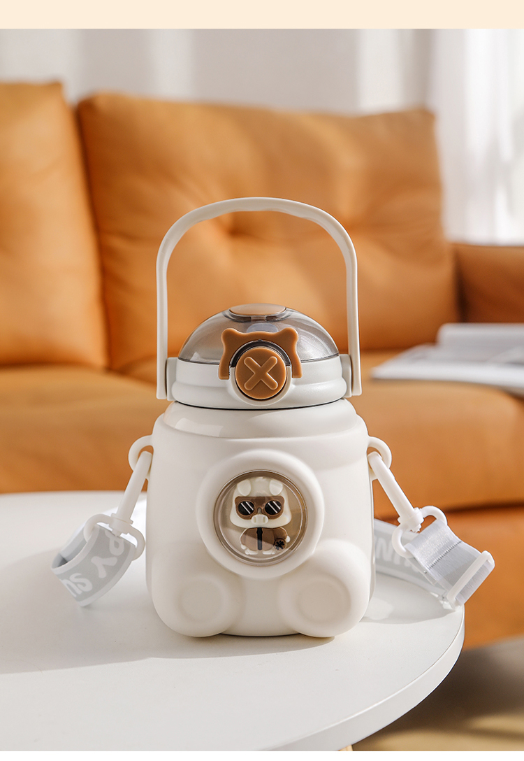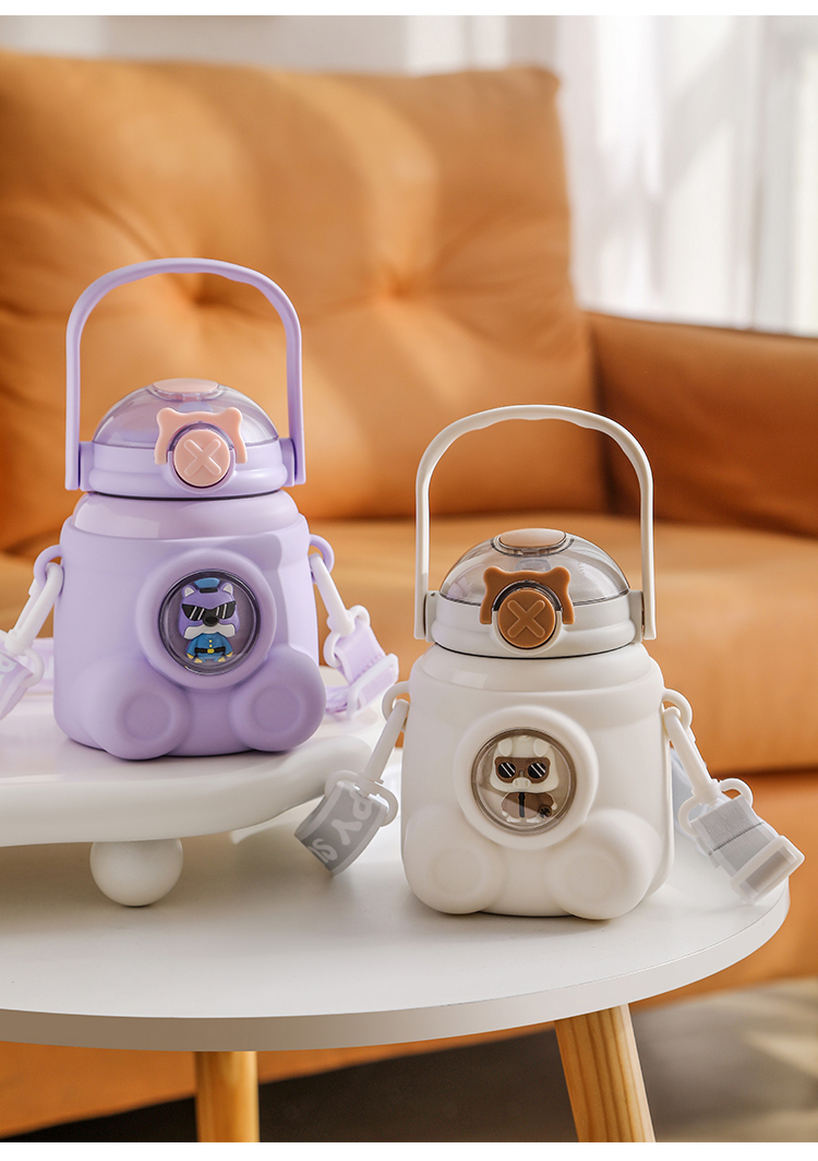 1000ML可爱卡通童真熊保温杯大容量高颜值吸管杯