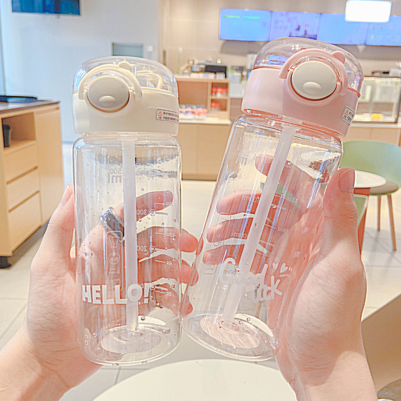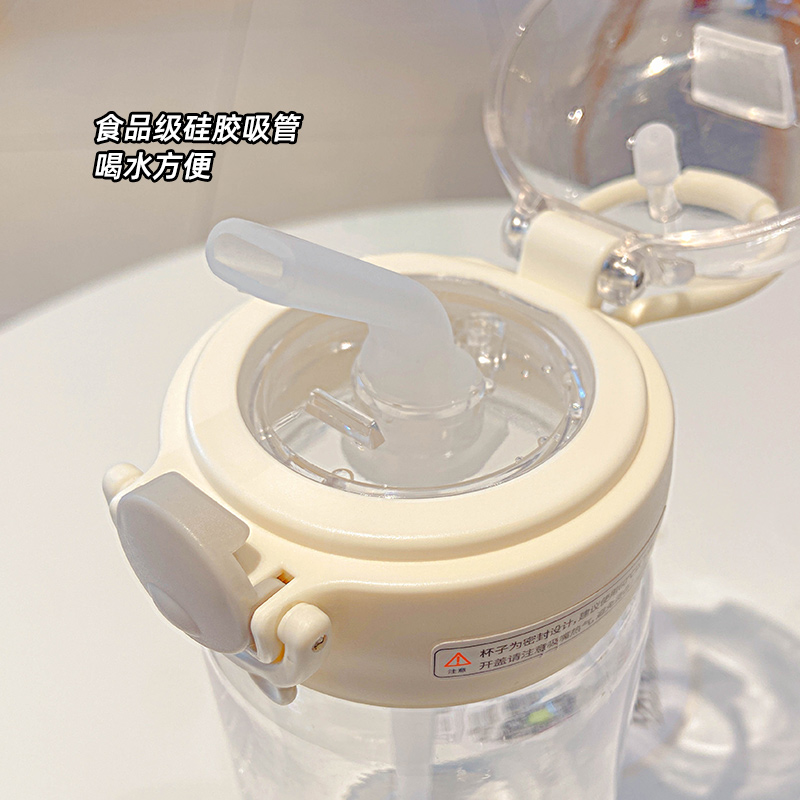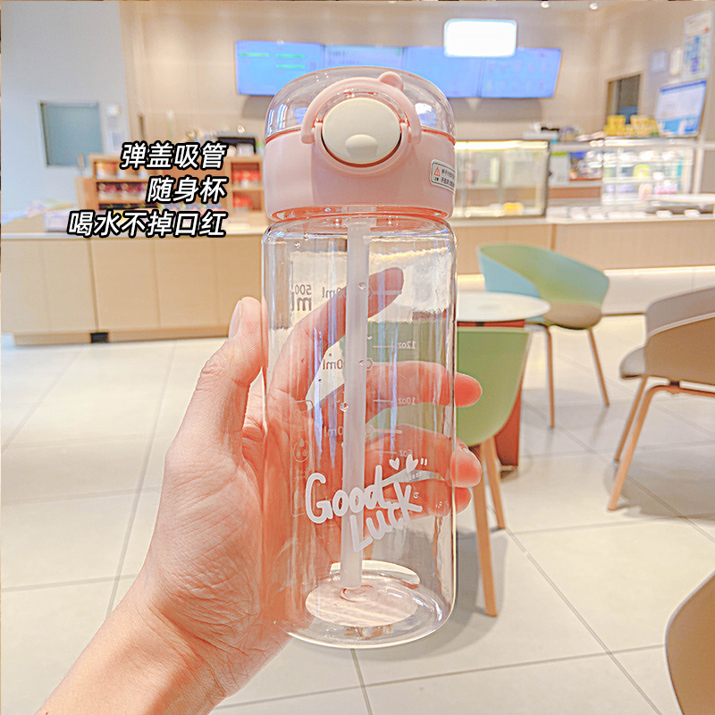 430ML元气熊熊弹盖吸管塑料杯简约清新学生便携杯子