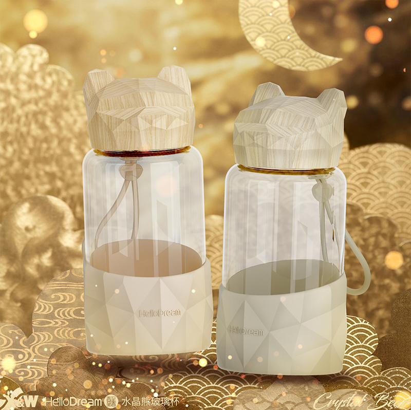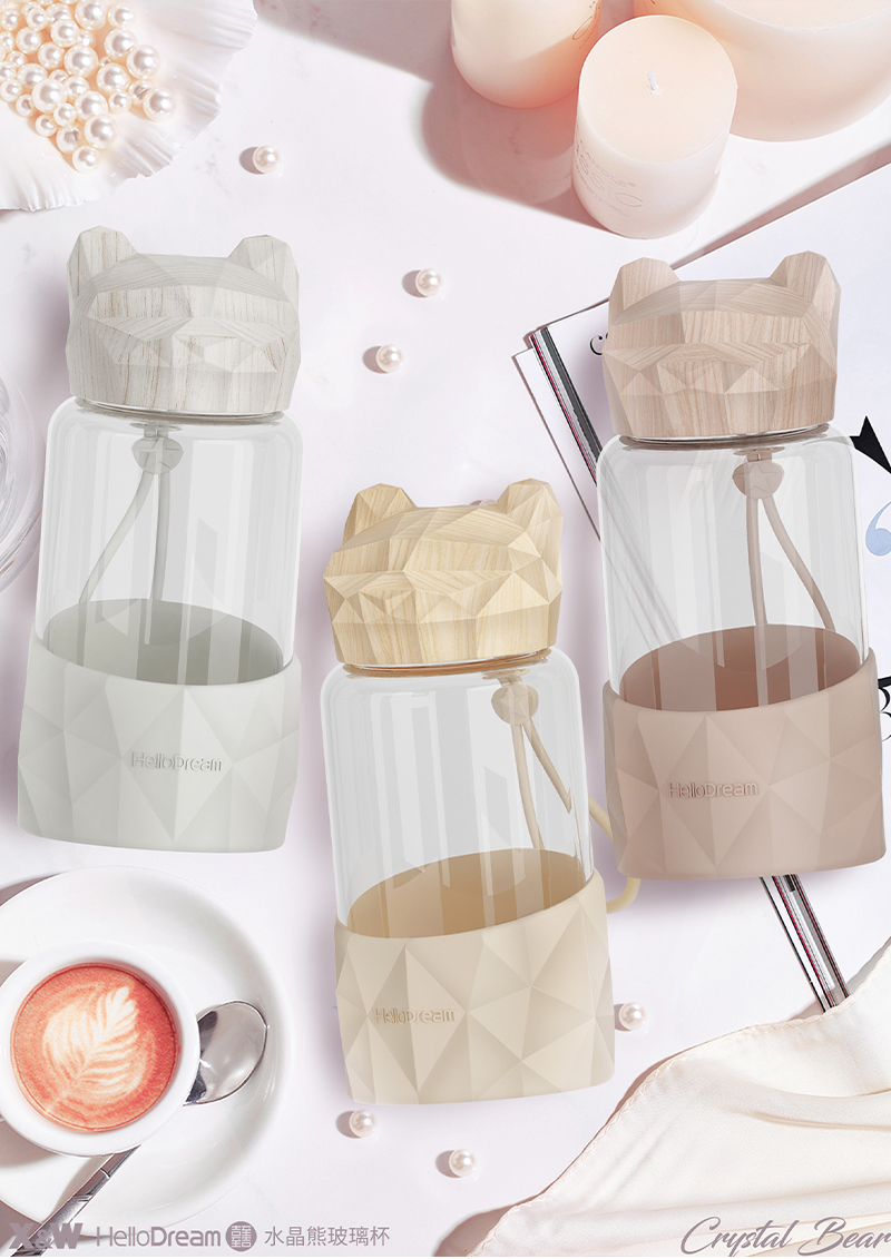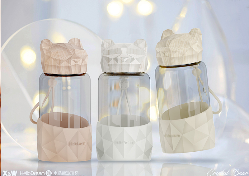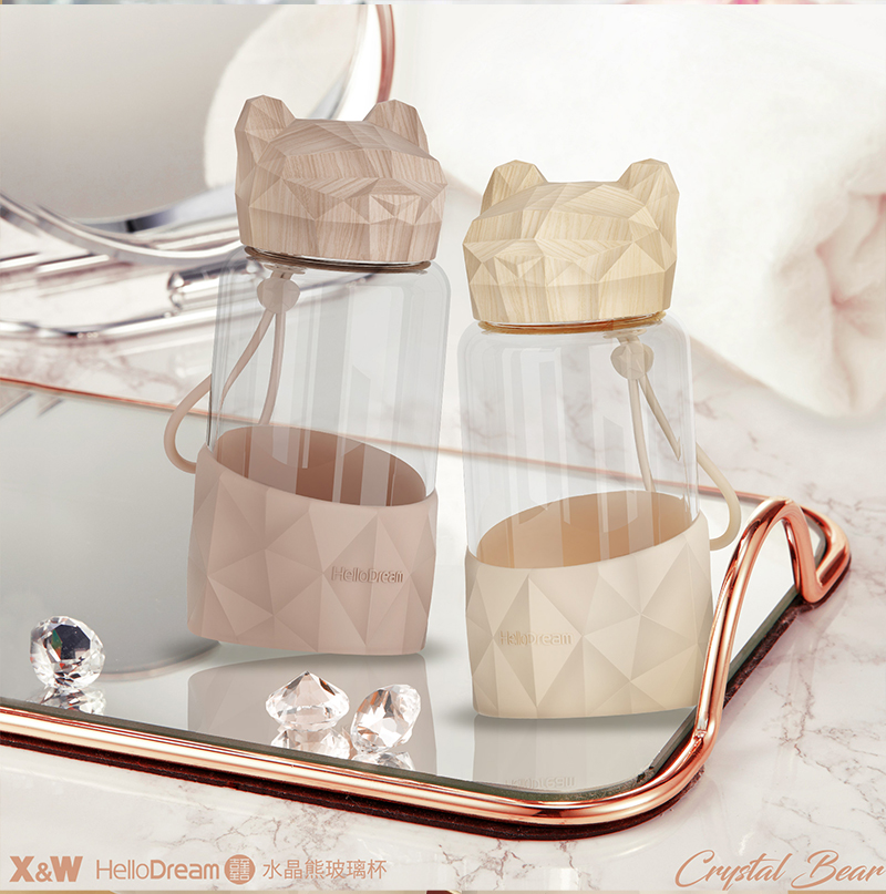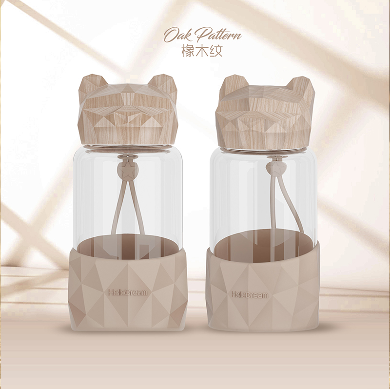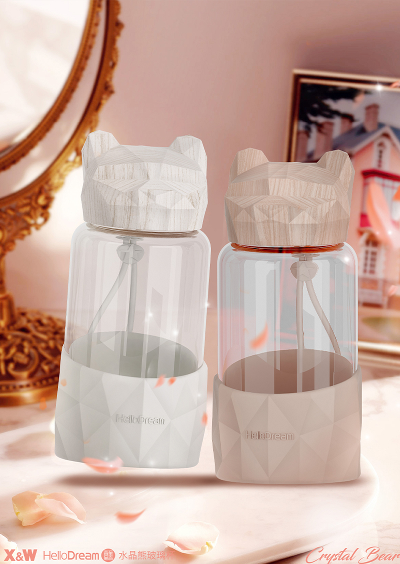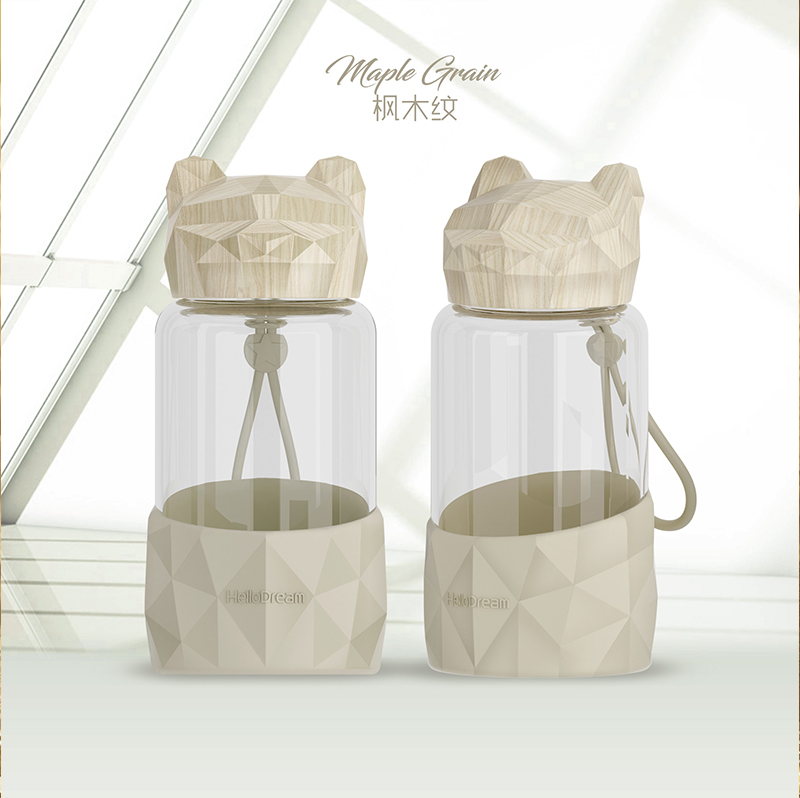 1000ML小熊盖提手玻璃杯
