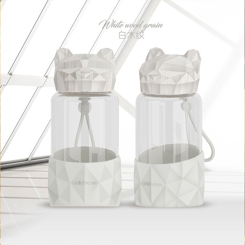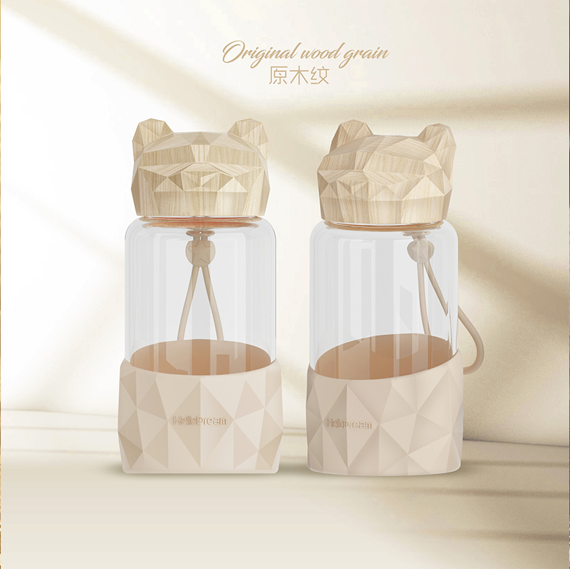 时尚创意木纹盖高硼硅玻璃杯简约男女办公室水杯户外礼品杯可批发