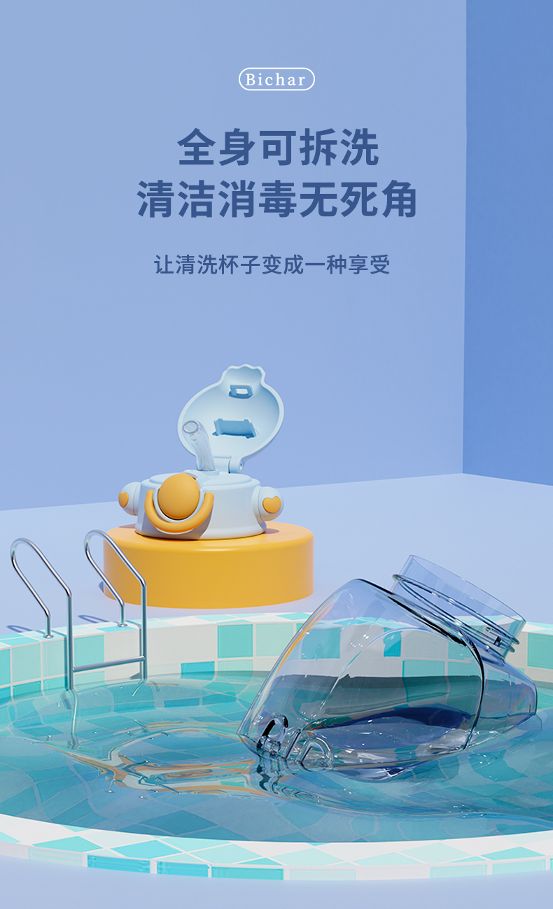 儿童吸管水杯夏天大容量可爱杯子女生高颜值搅拌杯耐高温塑料水壶