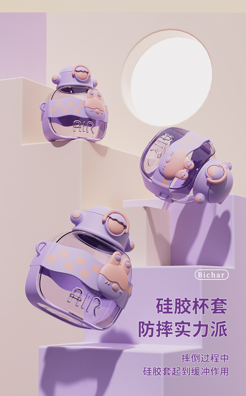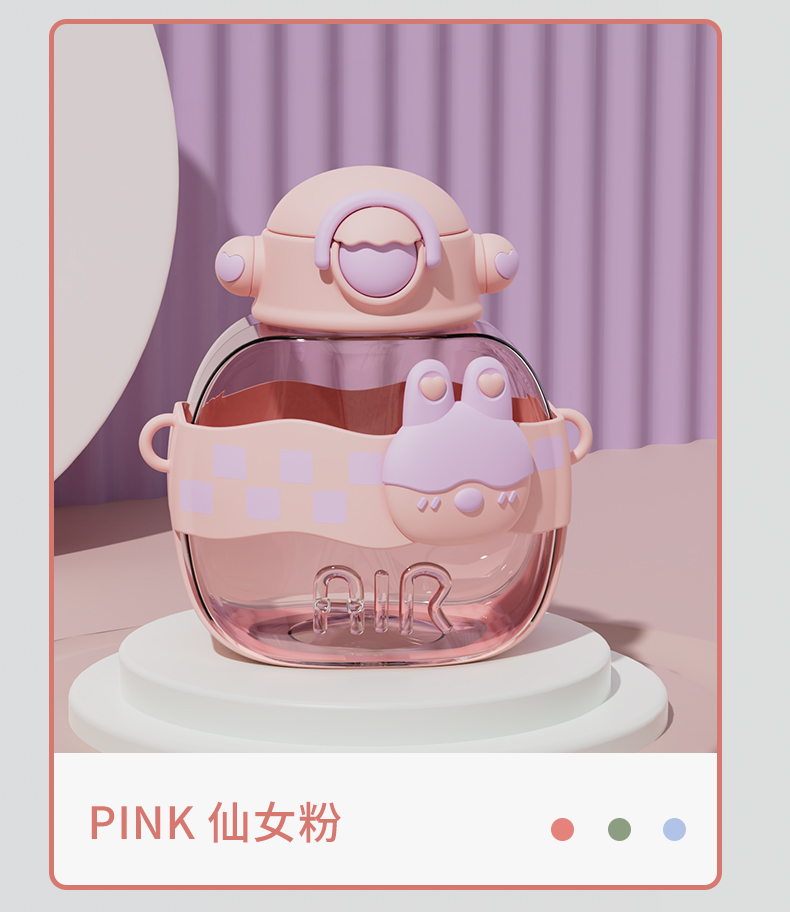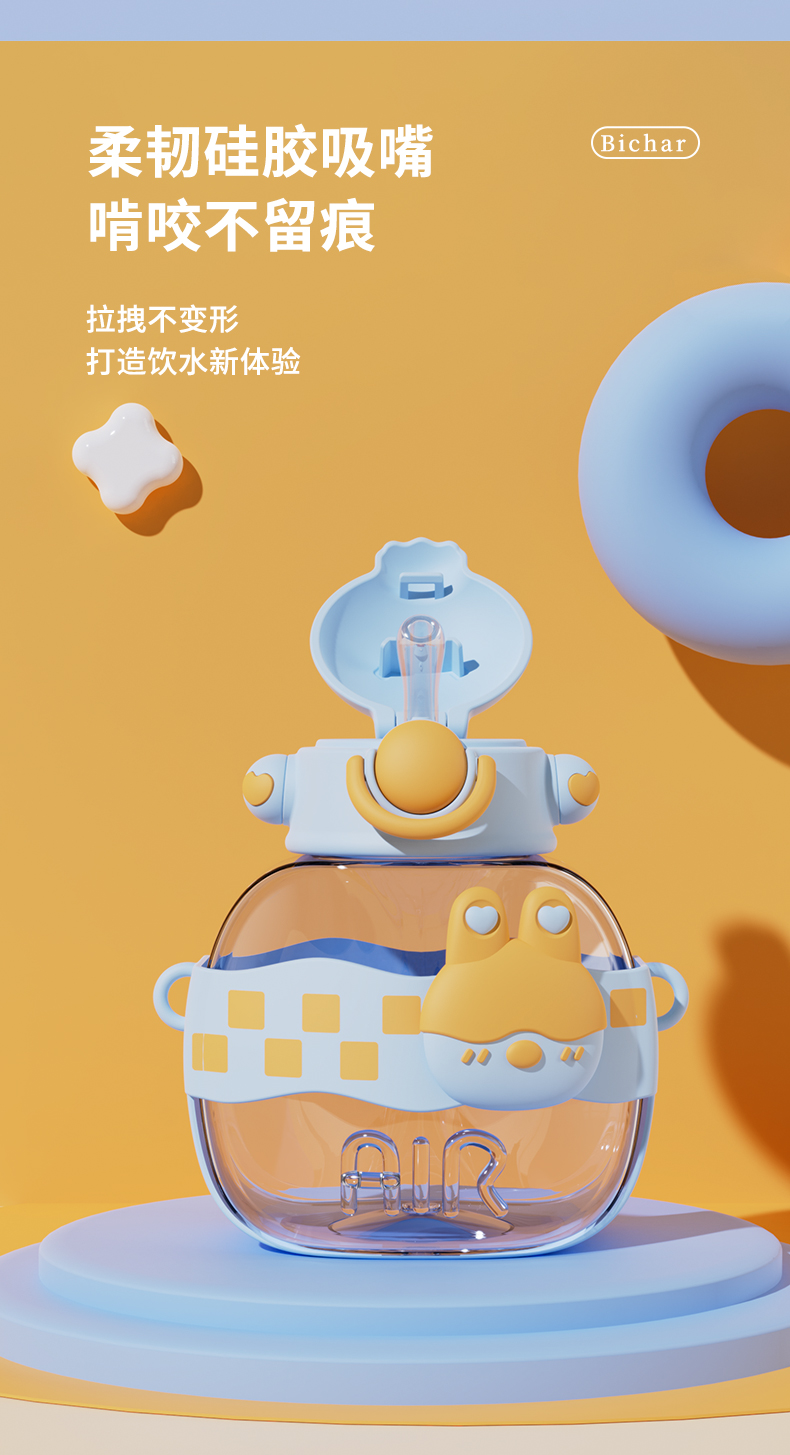 样品星兔创意卡通水杯儿童弹跳吸管杯可爱运动户外背带学生塑料杯