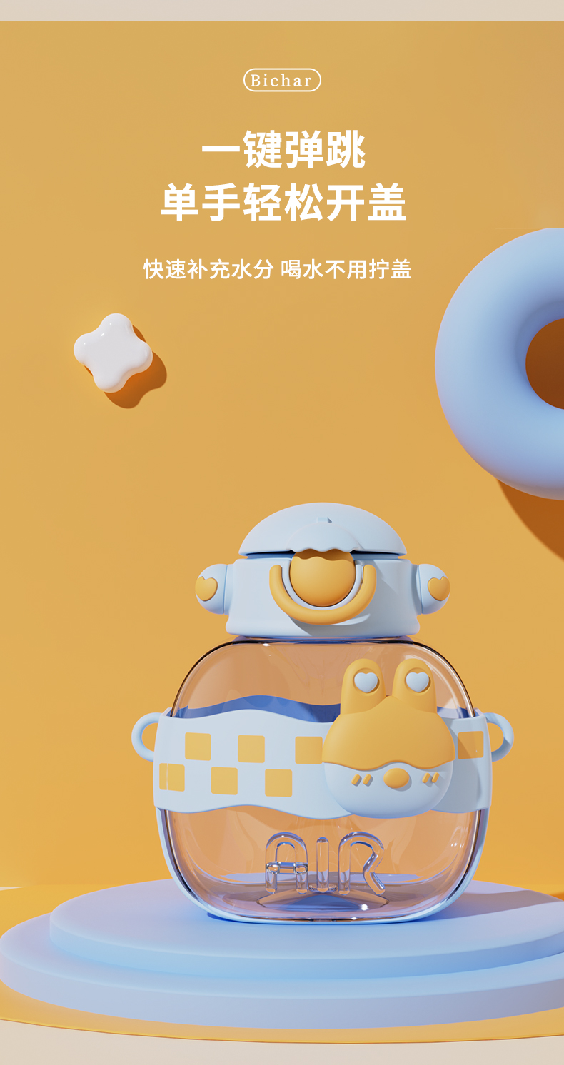 1000ML亿本叙语太空塑料杯弹跳盖直饮水杯(OPP袋)