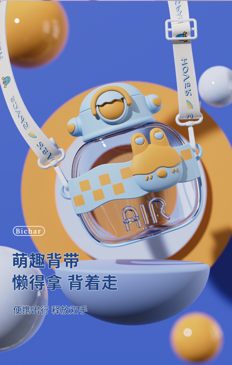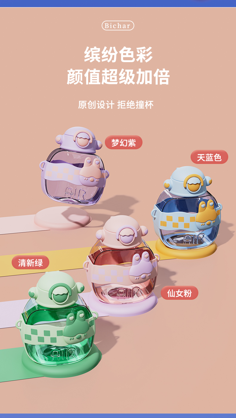 500ML亿本悦色太空杯创意手提绳便携带塑料杯