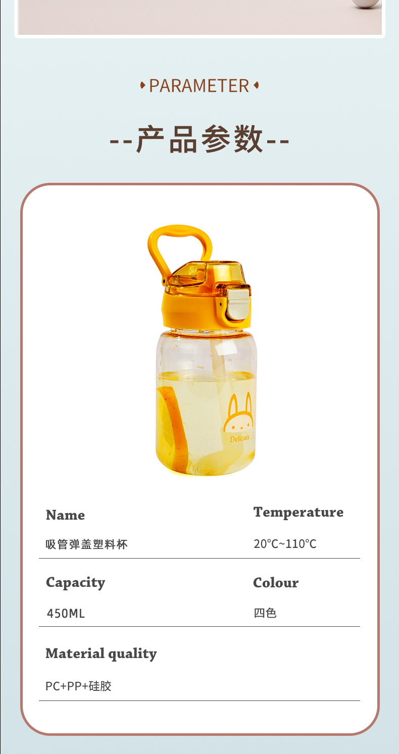样品星兔创意卡通水杯儿童弹跳吸管杯可爱运动户外背带学生塑料杯