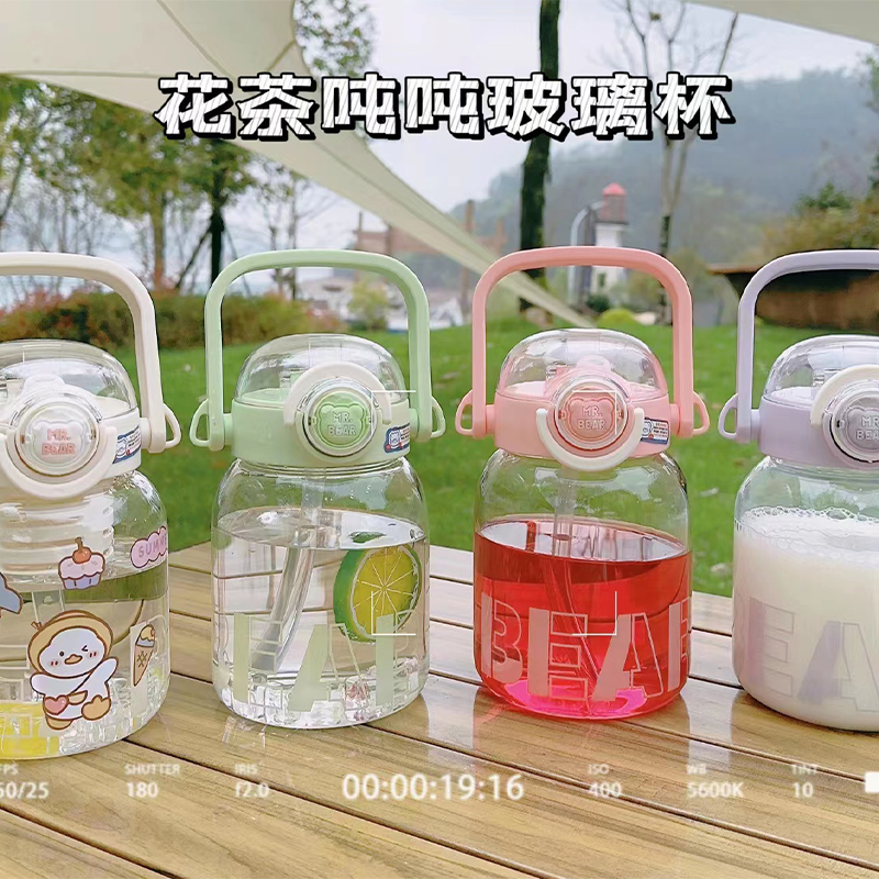 儿童吸管水杯夏天大容量可爱杯子女生高颜值搅拌杯耐高温塑料水壶