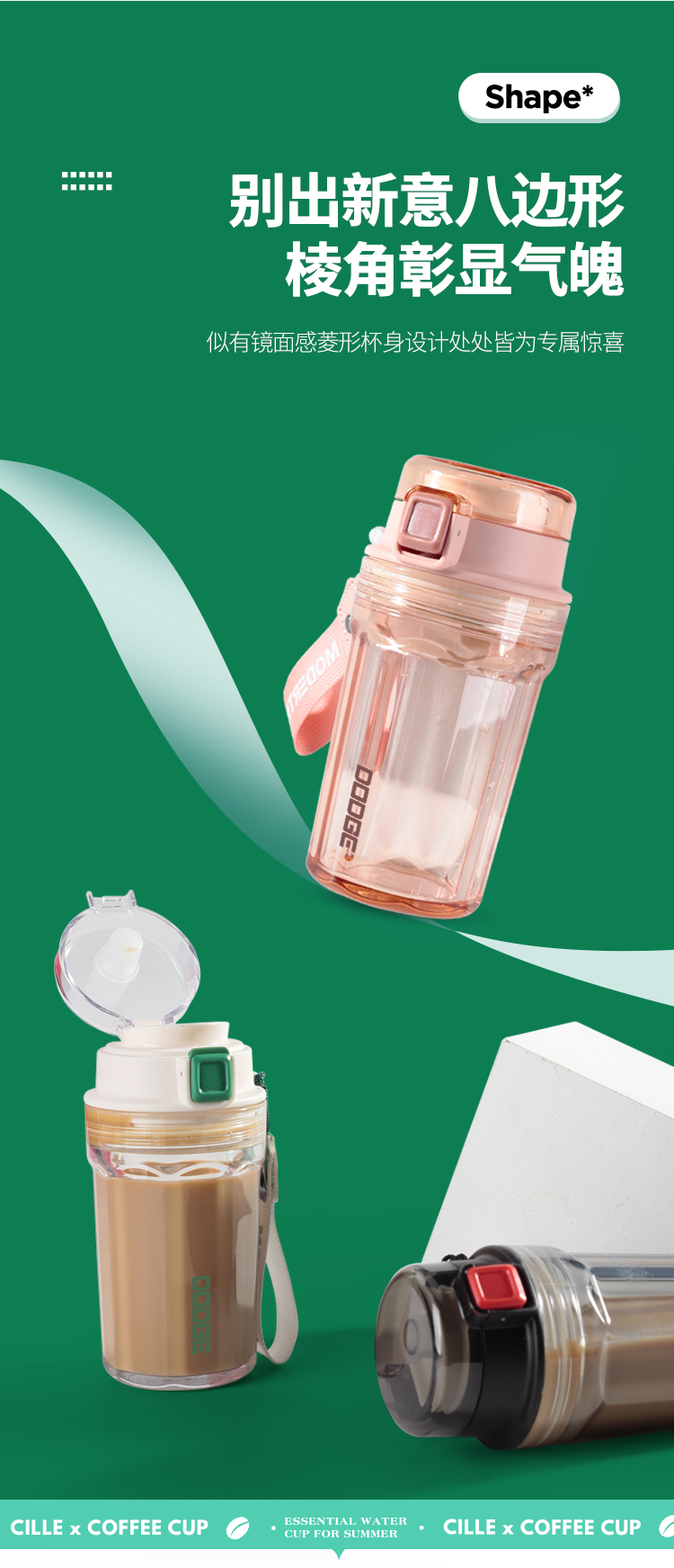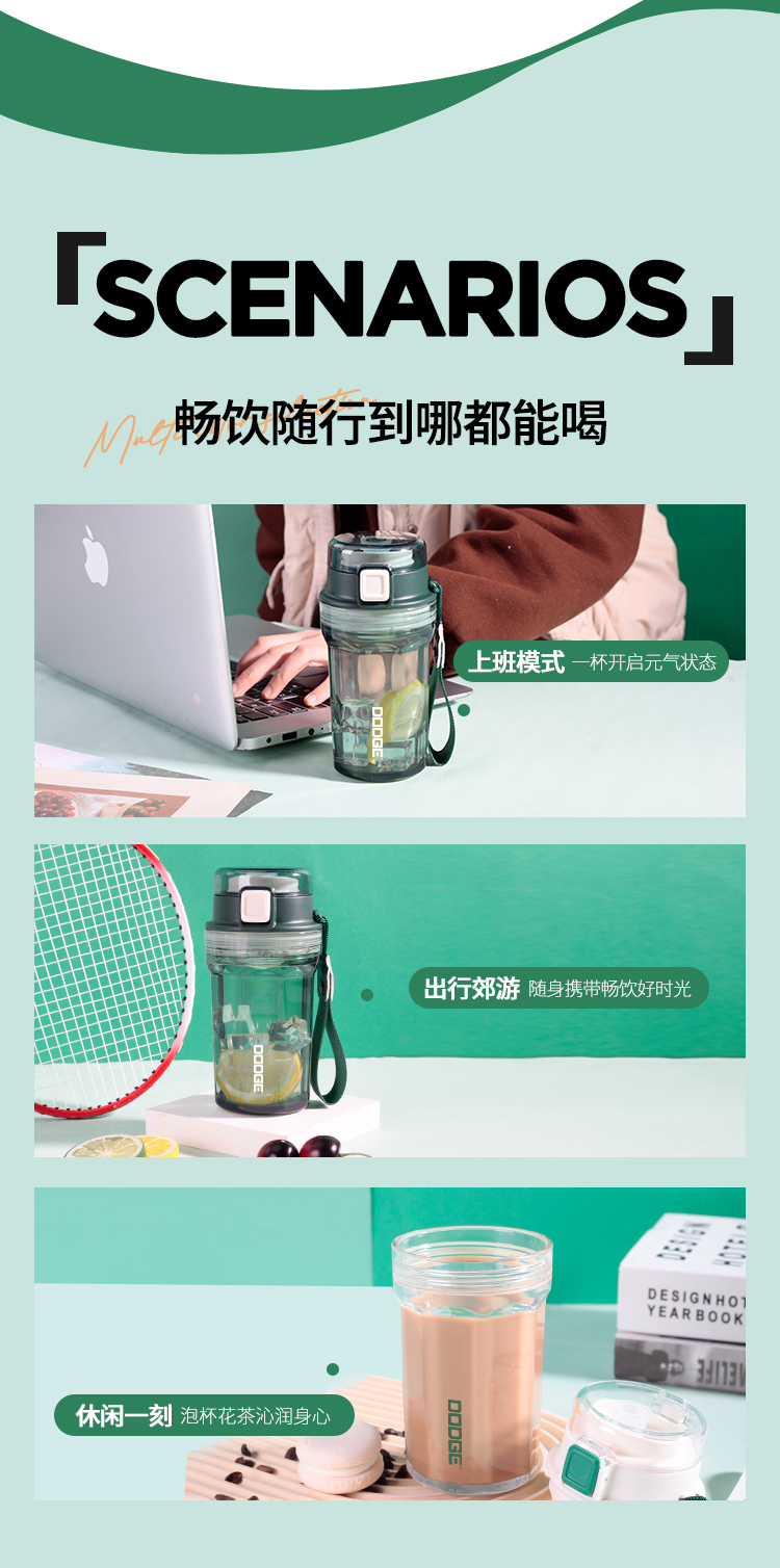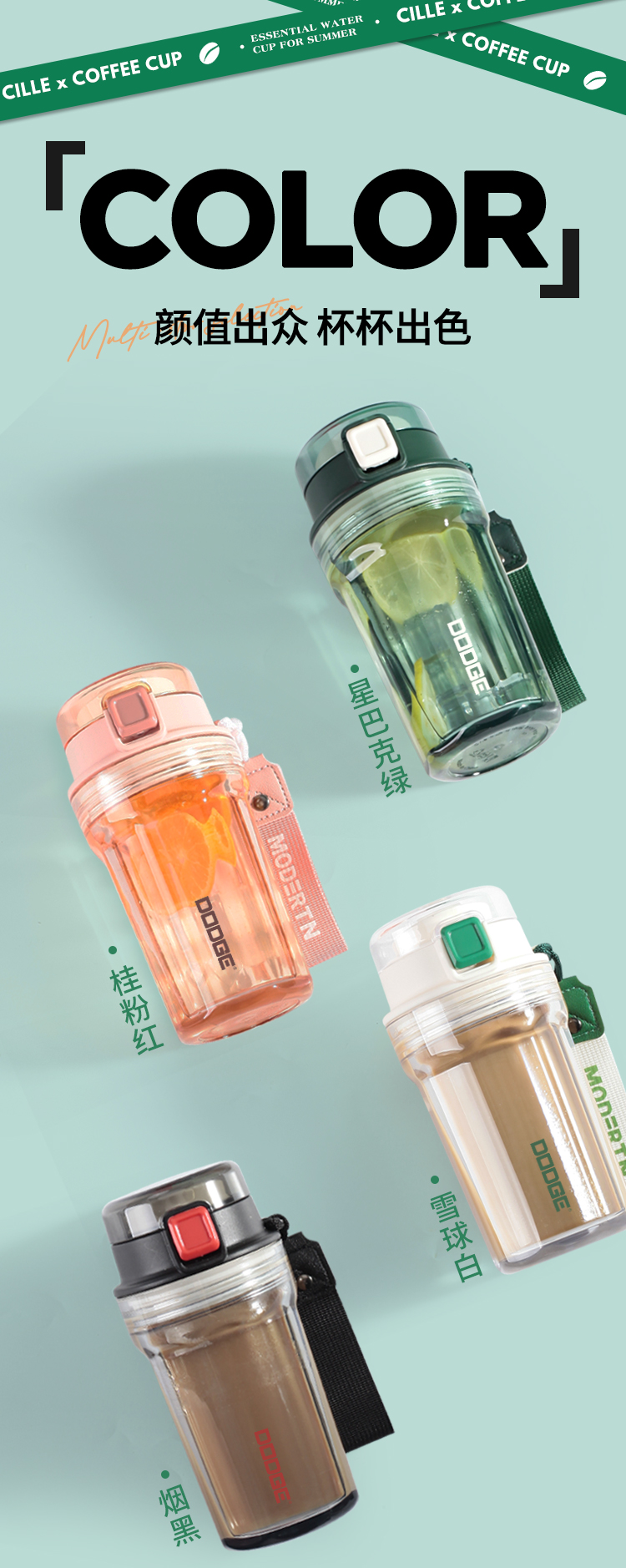 900ML小LOGO道奇律动运动塑料杯个性潮流带茶隔水杯