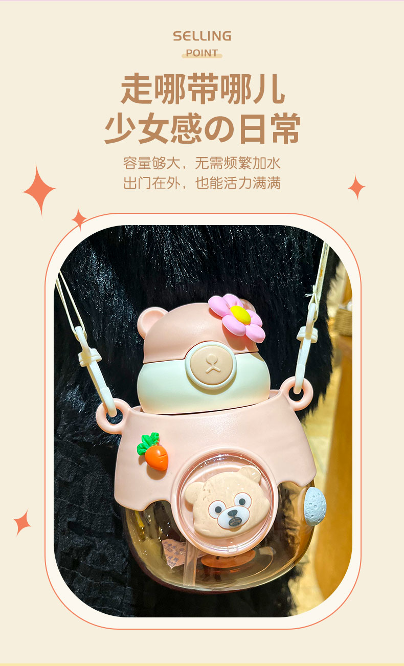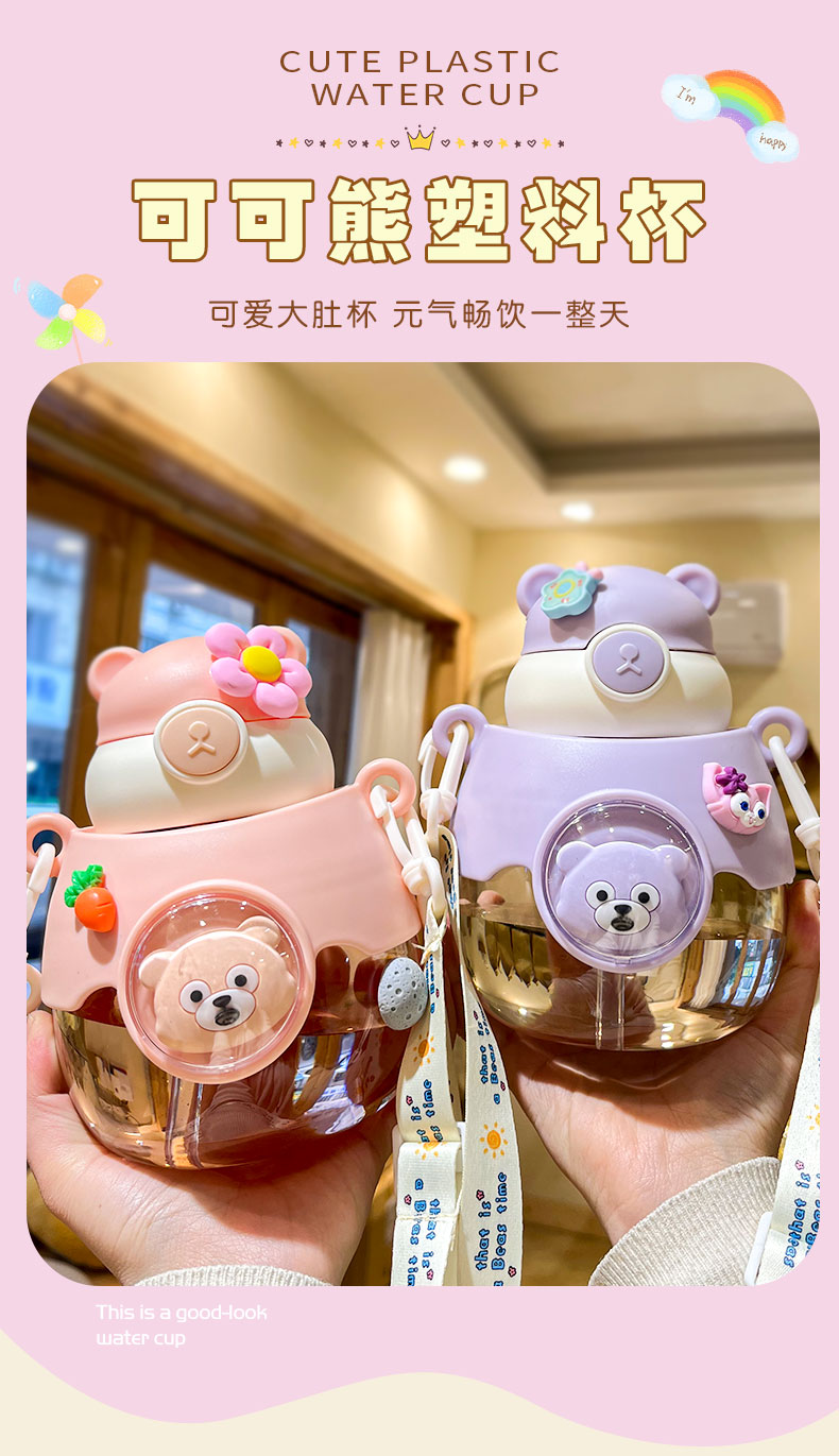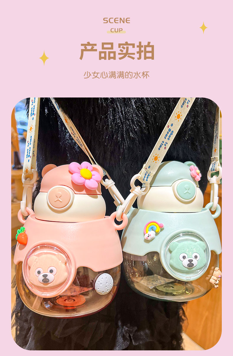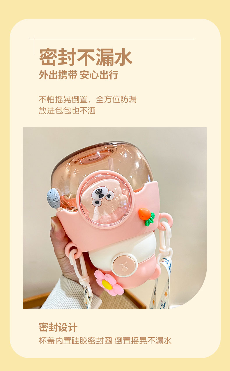 样品星兔创意卡通水杯儿童弹跳吸管杯可爱运动户外背带学生塑料杯