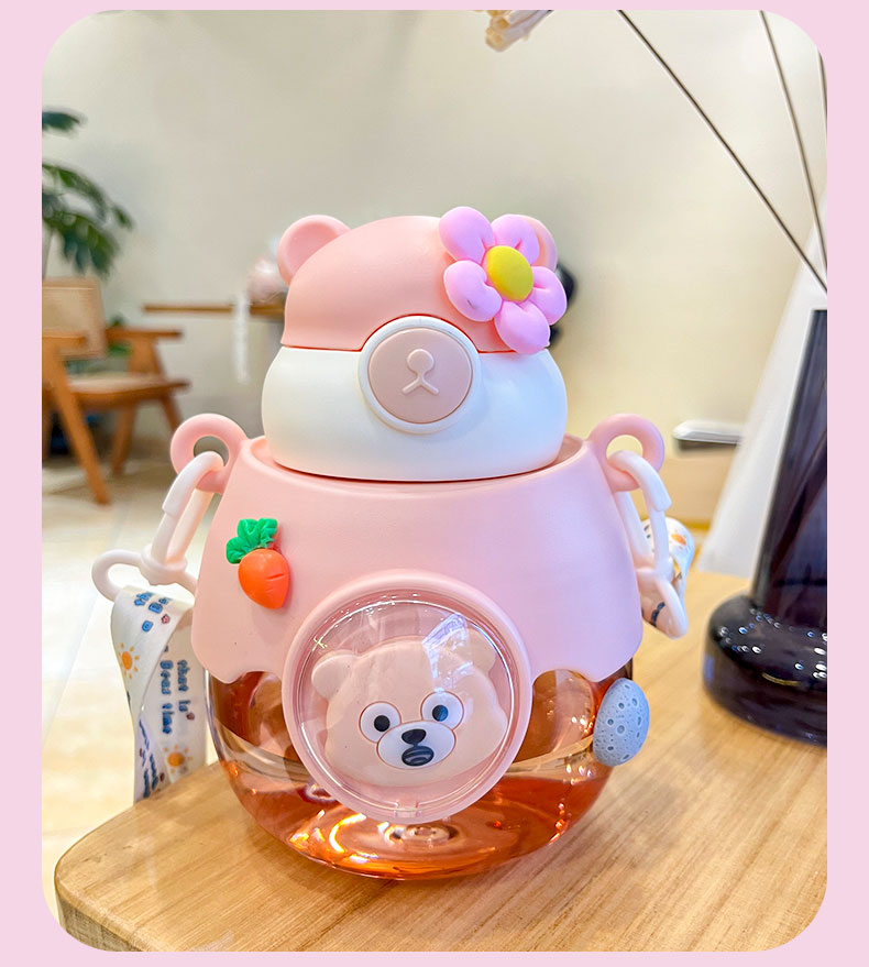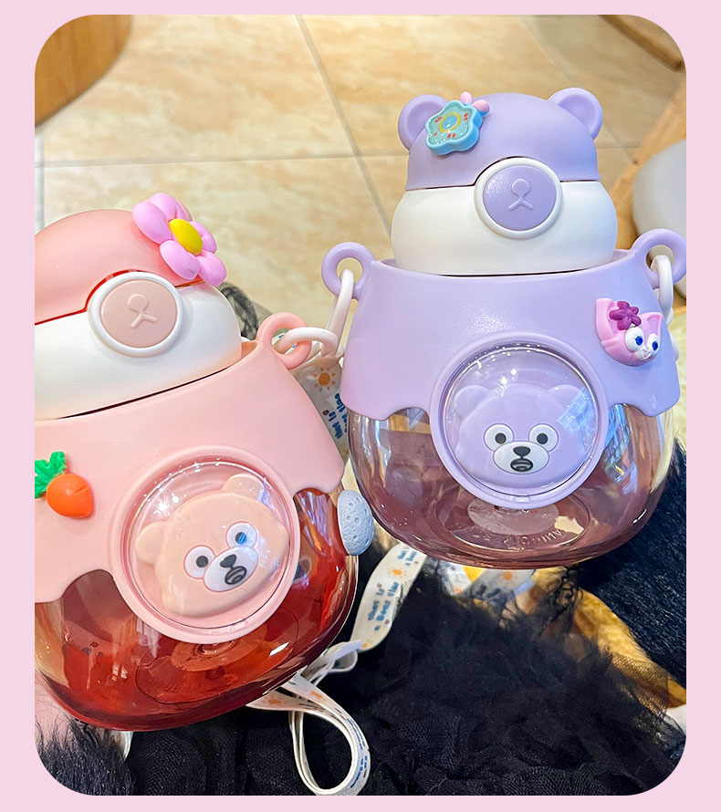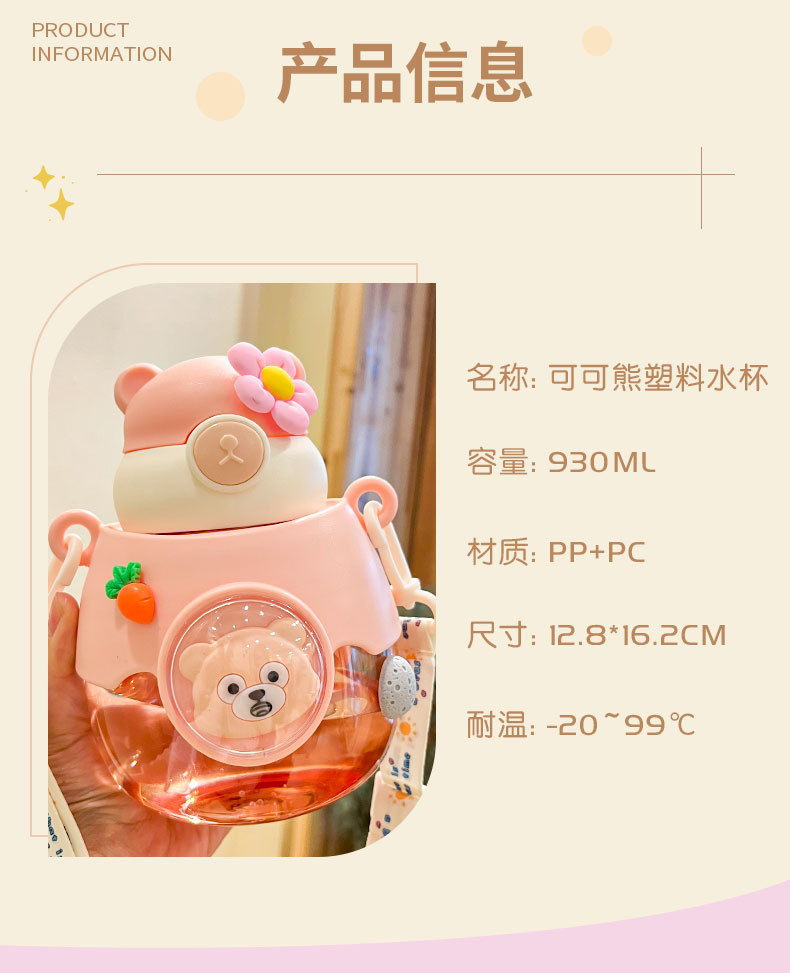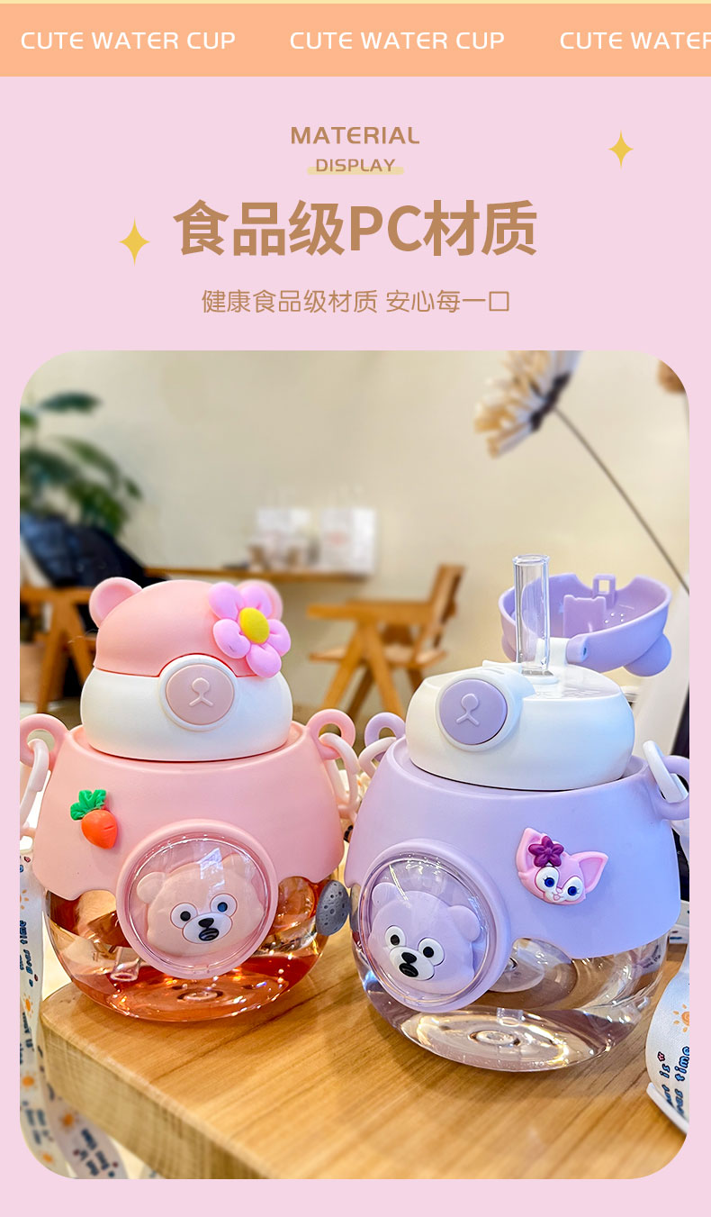 样品星兔创意卡通水杯儿童弹跳吸管杯可爱运动户外背带学生塑料杯