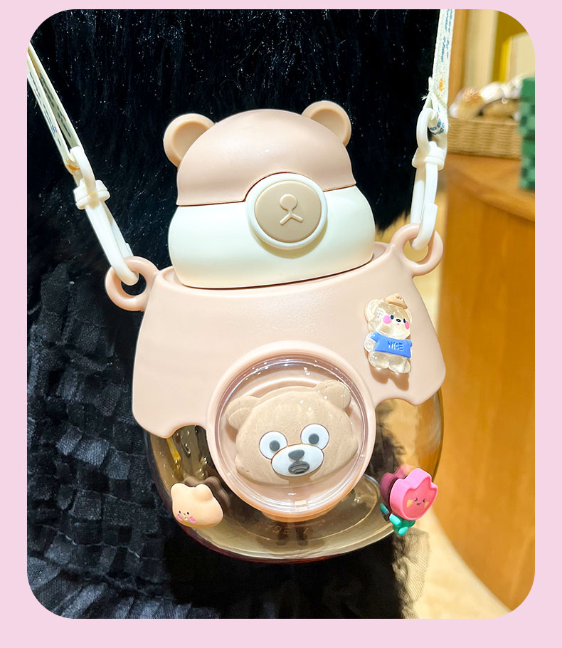 新款朋克机器人吸管杯儿童弹跳水杯可爱运动户外背带学生塑料水壶
