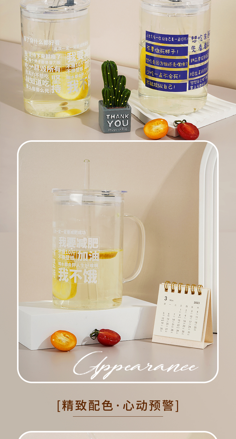 420ML萌宠乐园飞碟玻璃杯可爱便携学生情侣随手杯子