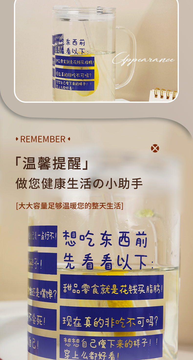 1000ML小熊盖提手玻璃杯