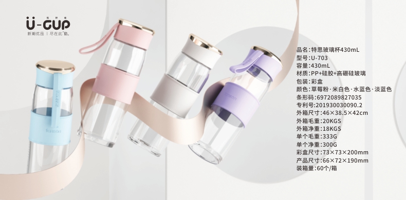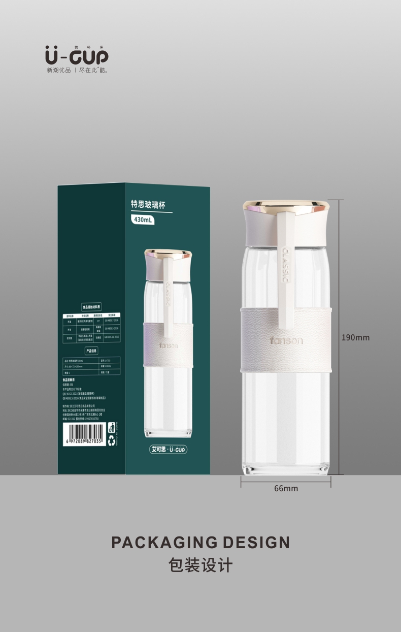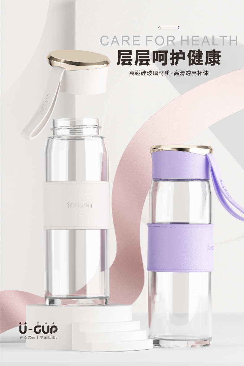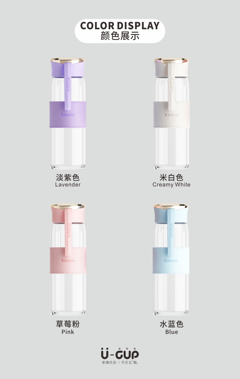 350ML万柿胜意系列吸管玻璃杯清新可爱学生便携水杯