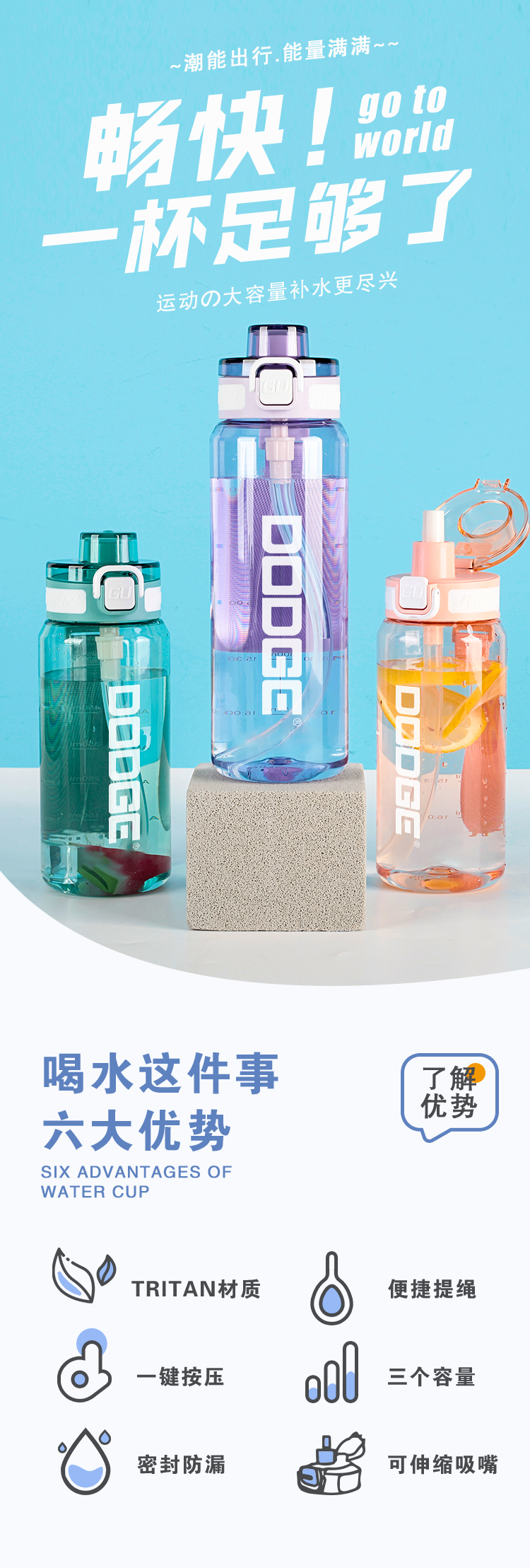 900ML道奇灵动运动吸管塑料杯Tritan户外旅行便携水杯
