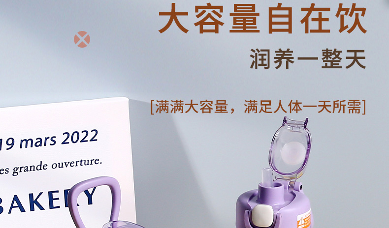 儿童吸管水杯夏天大容量可爱杯子女生高颜值搅拌杯耐高温塑料水壶
