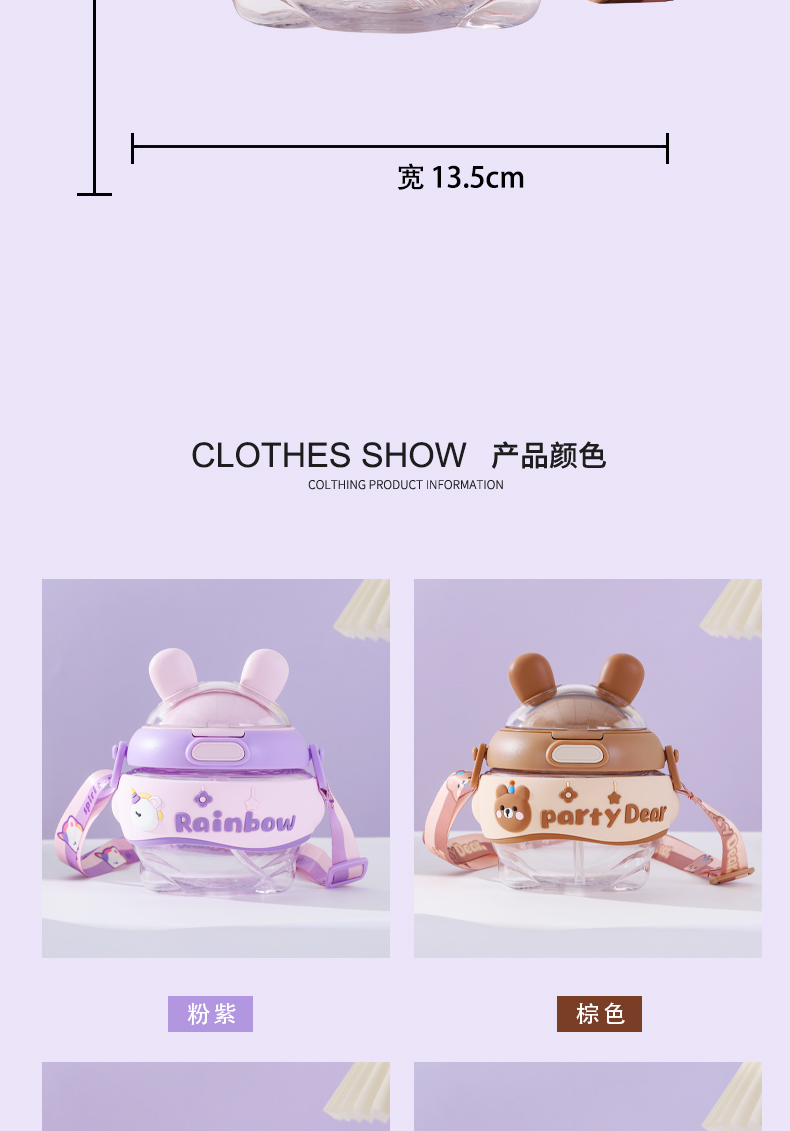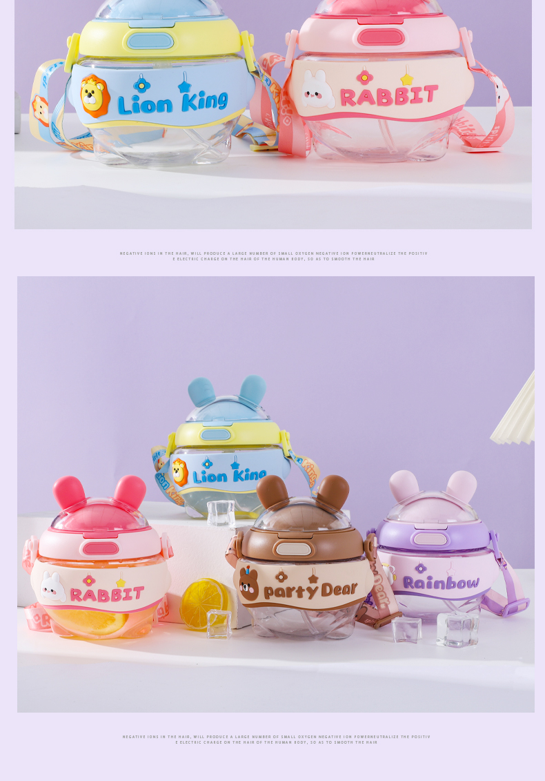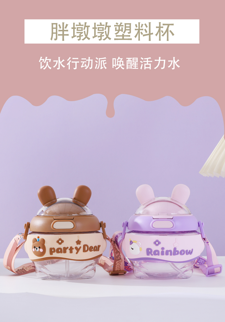 样品星兔创意卡通水杯儿童弹跳吸管杯可爱运动户外背带学生塑料杯