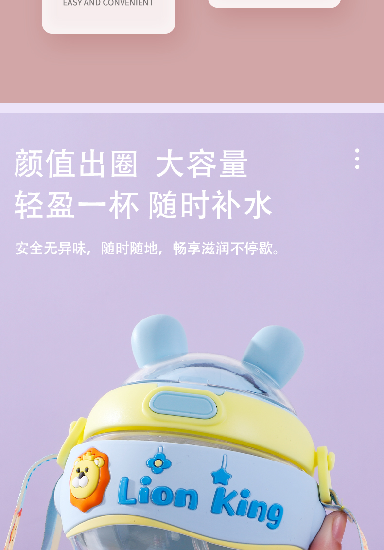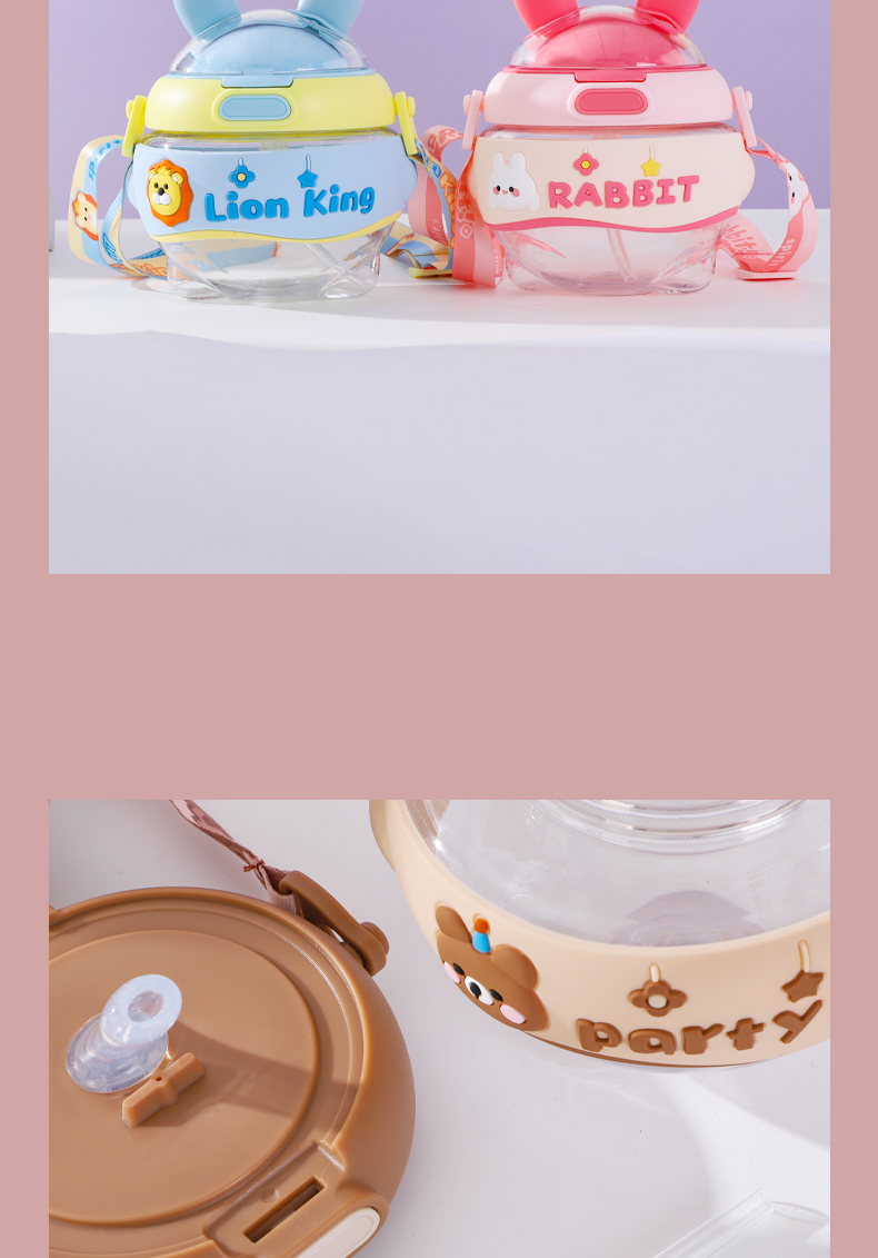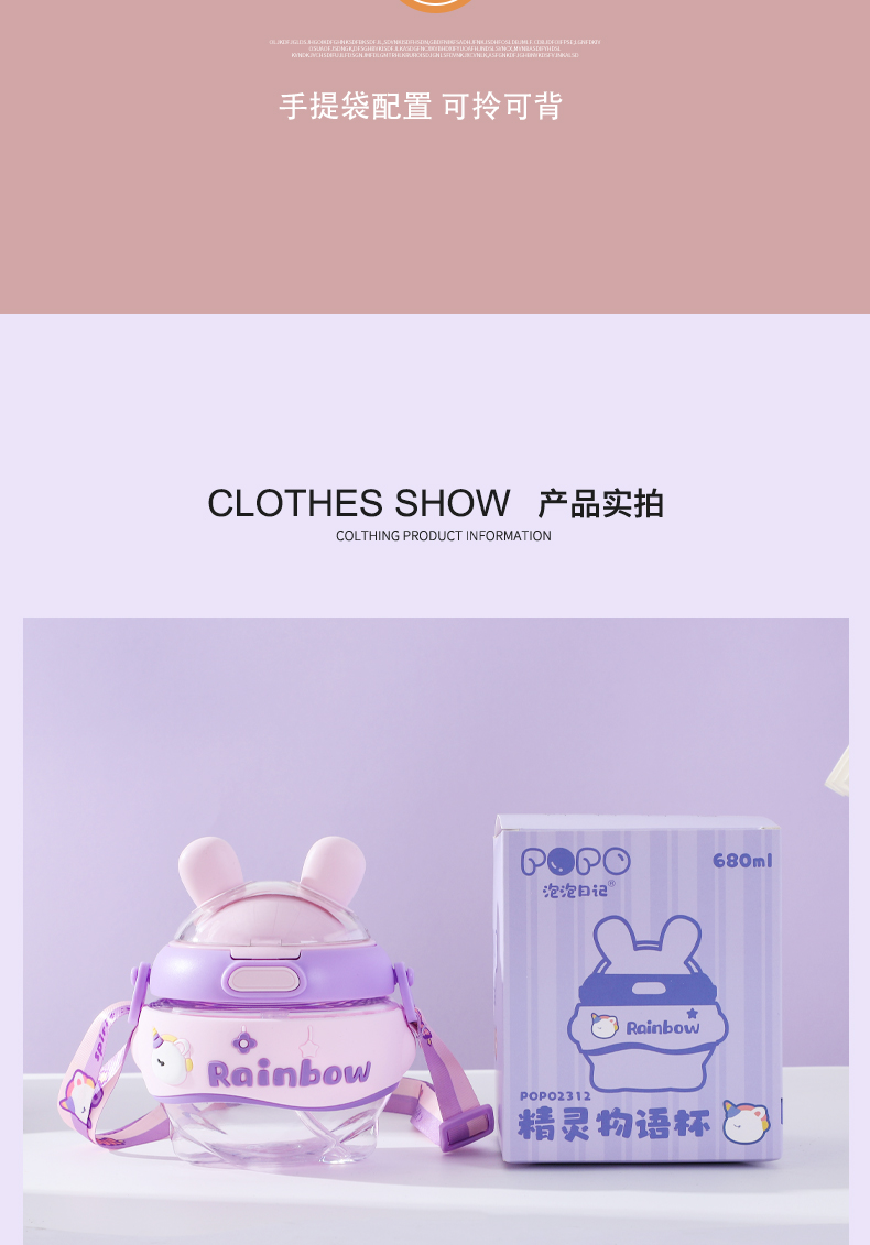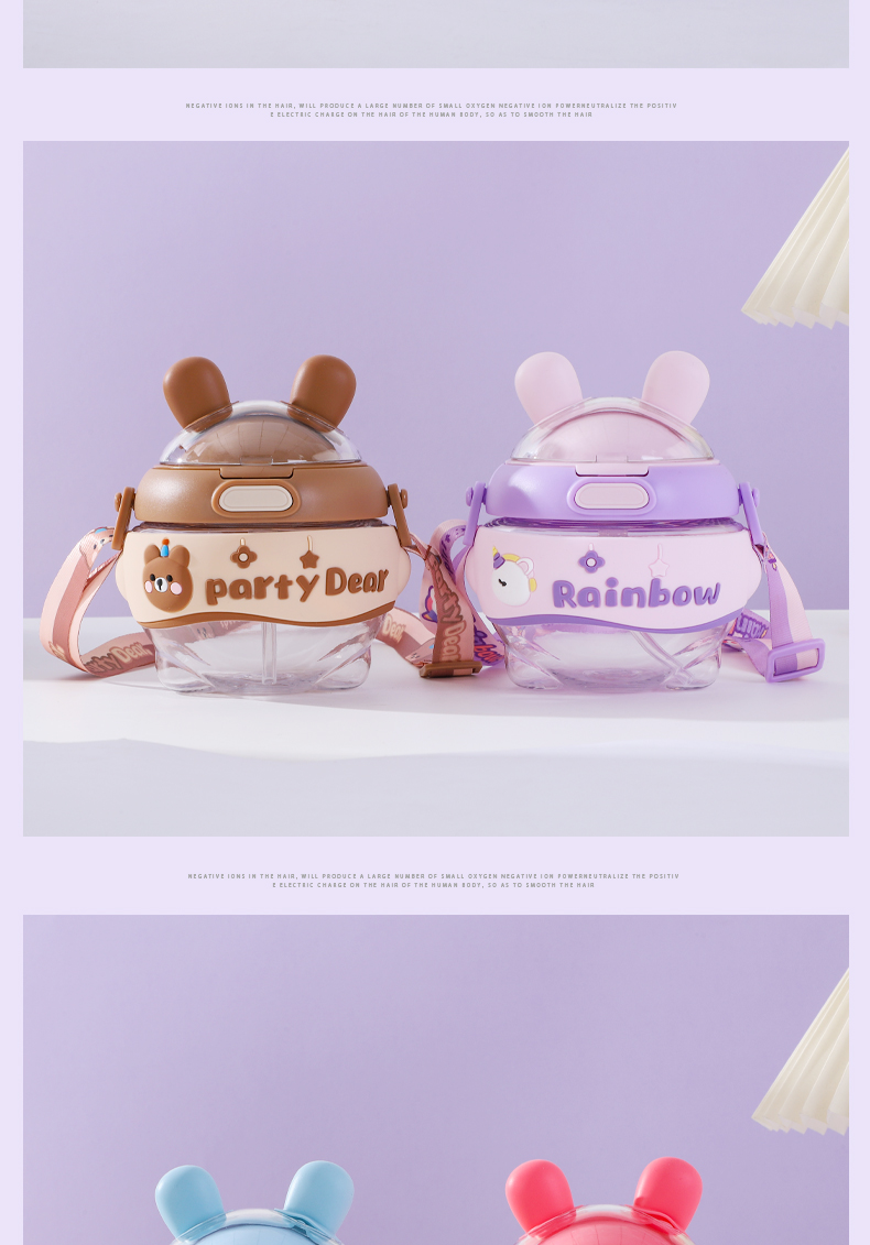样品星兔创意卡通水杯儿童弹跳吸管杯可爱运动户外背带学生塑料杯