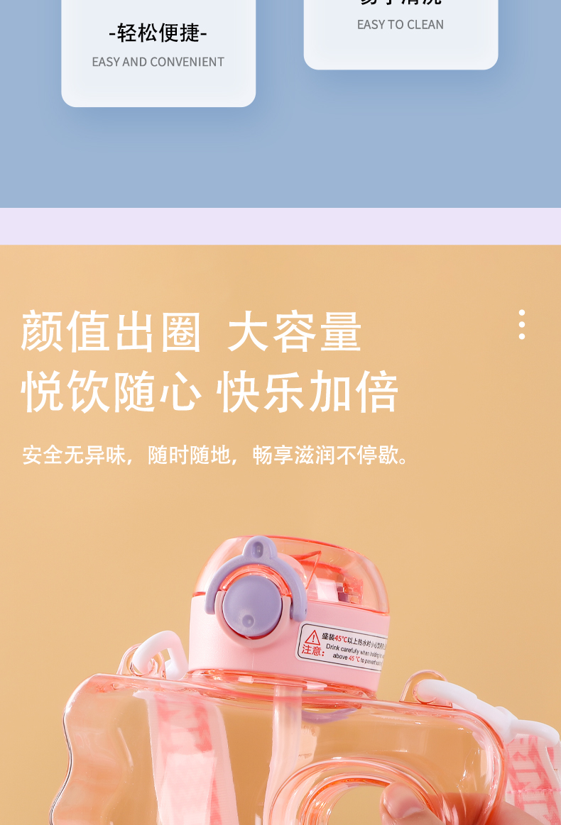 儿童吸管水杯夏天大容量可爱杯子女生高颜值搅拌杯耐高温塑料水壶