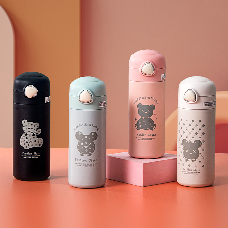 350ML欧雅线描小熊保温杯304不锈钢弹跳盖吸管杯