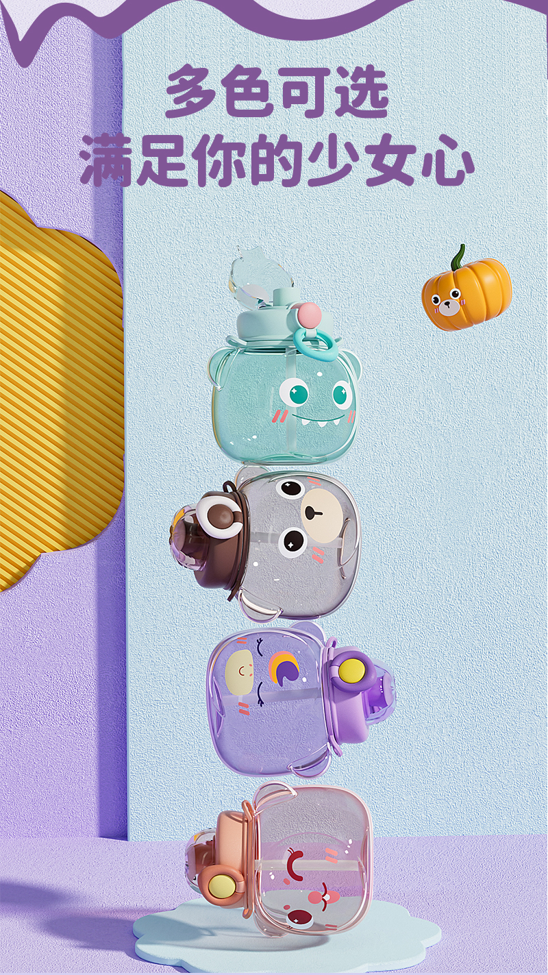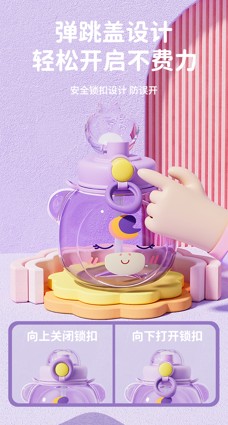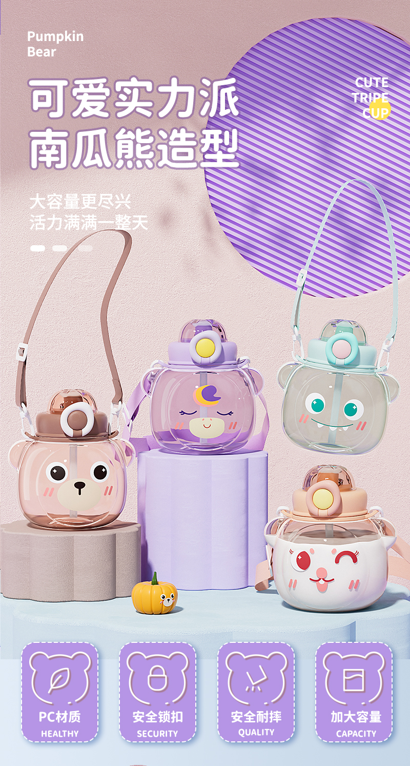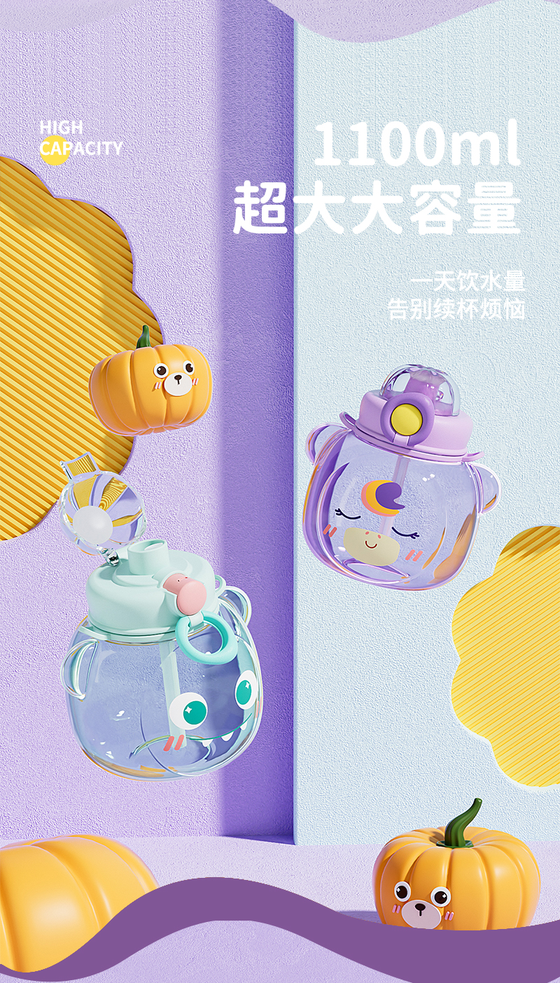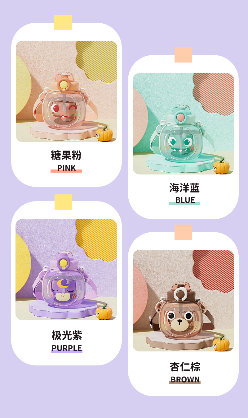 1000ML单饮吸管水杯卡通可爱塑料杯(彩盒)