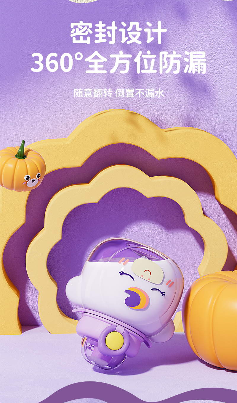 样品星兔创意卡通水杯儿童弹跳吸管杯可爱运动户外背带学生塑料杯