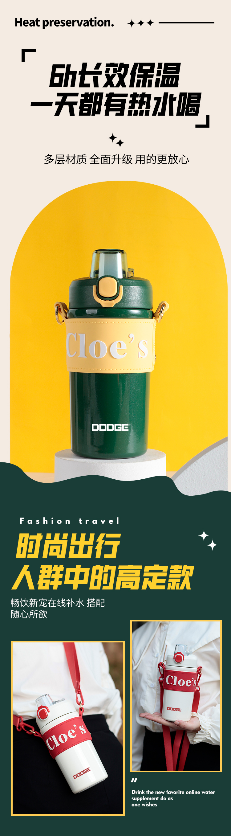 650ML道奇悠闲运动保温杯316不锈钢弹跳盖便携吸管杯
