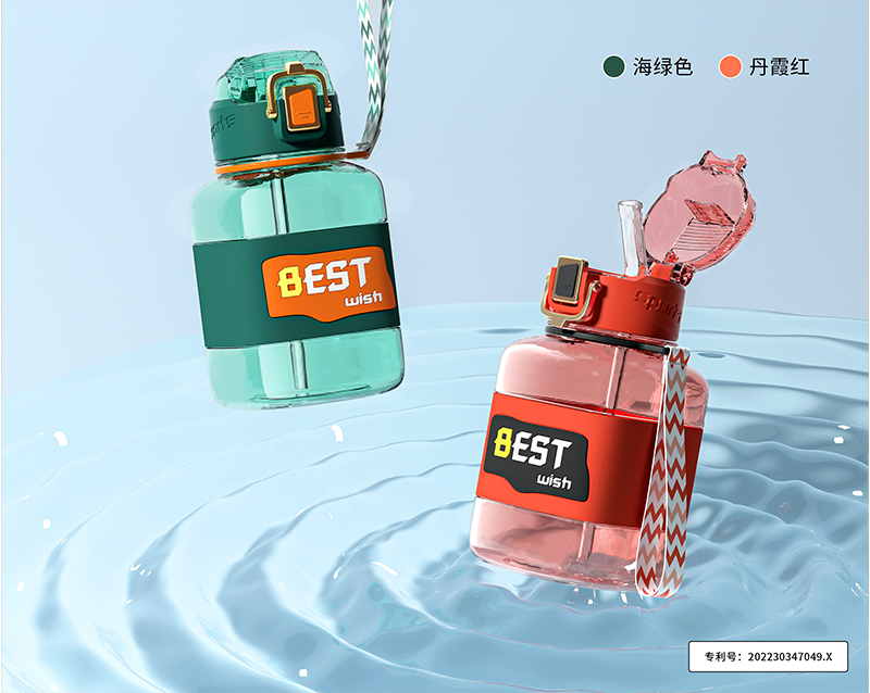 样品星兔创意卡通水杯儿童弹跳吸管杯可爱运动户外背带学生塑料杯